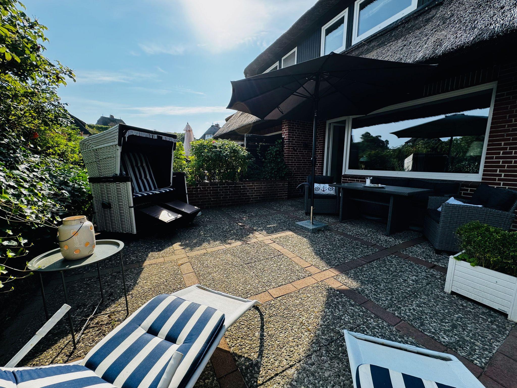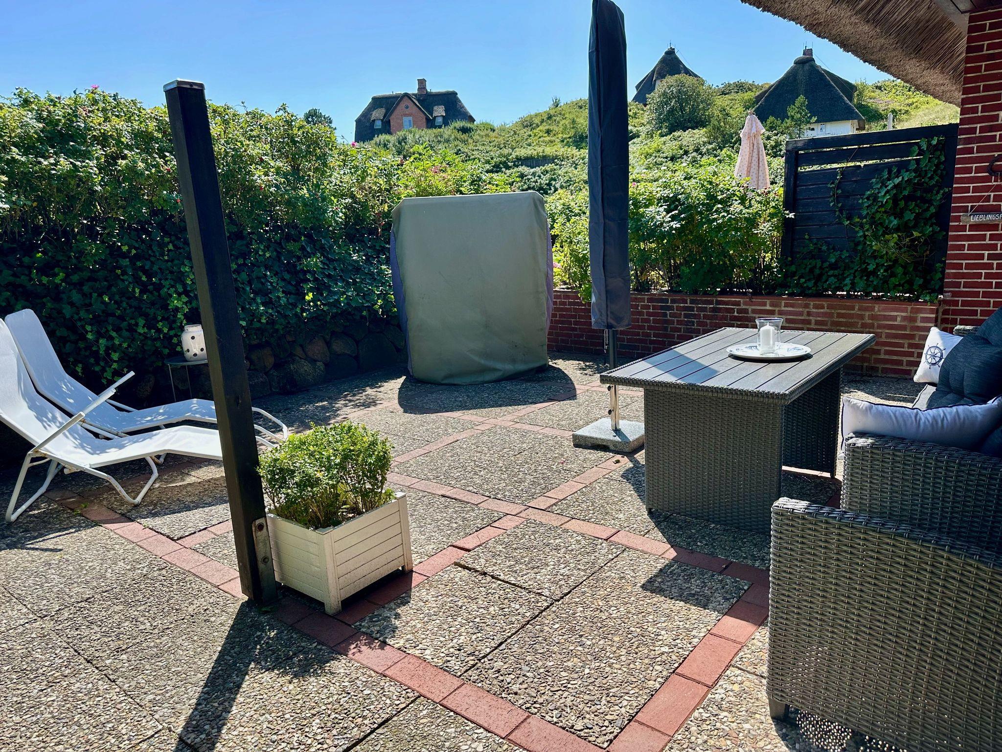 Wer auf der Suche nach einer kleinen Auszeit an der Waterkant ist, ist in unserer kleinen „Pippa“ auf jeden Fall richtig. „Pippa“ bietet einen idealen Rückzugsort für Singles oder Paare in einem typisch reetgedeckten Friesenhaus. Die Wohnfläche von ca. 35 m2 verteilt sich auf einen stilvoll und gleichzeitig modern ausgestatteten Wohn-/Essbereich, Küche (inkl. Spülmaschine, Nespresso-Maschine mit Milchschäumer, Cerankochfeld) und ein gemütliches Schlafzimmer mit Doppelbett. Ein helles Duschbad mit WC vervollständigt die Ferienwohnung. Die Terrasse mit Sitzgarnitur, Strandkorb lädt zum sonnen und verweilen inmitten typischer Sylter „Hagebutte und Reeddach-Silhouette“ ein. Das Apartment liegt am ruhigen Ortsrand von List (Mellhörn) direkt am Naturschutzgebiet und nur einen „Steinwurf“ (ca. 200m) vom Strand entfernt. Das Zentrum von List lässt sich in wenigen Gehminuten oder mit dem Bus (Bushaltestelle ist direkt vorne an der Straße) erreichen.