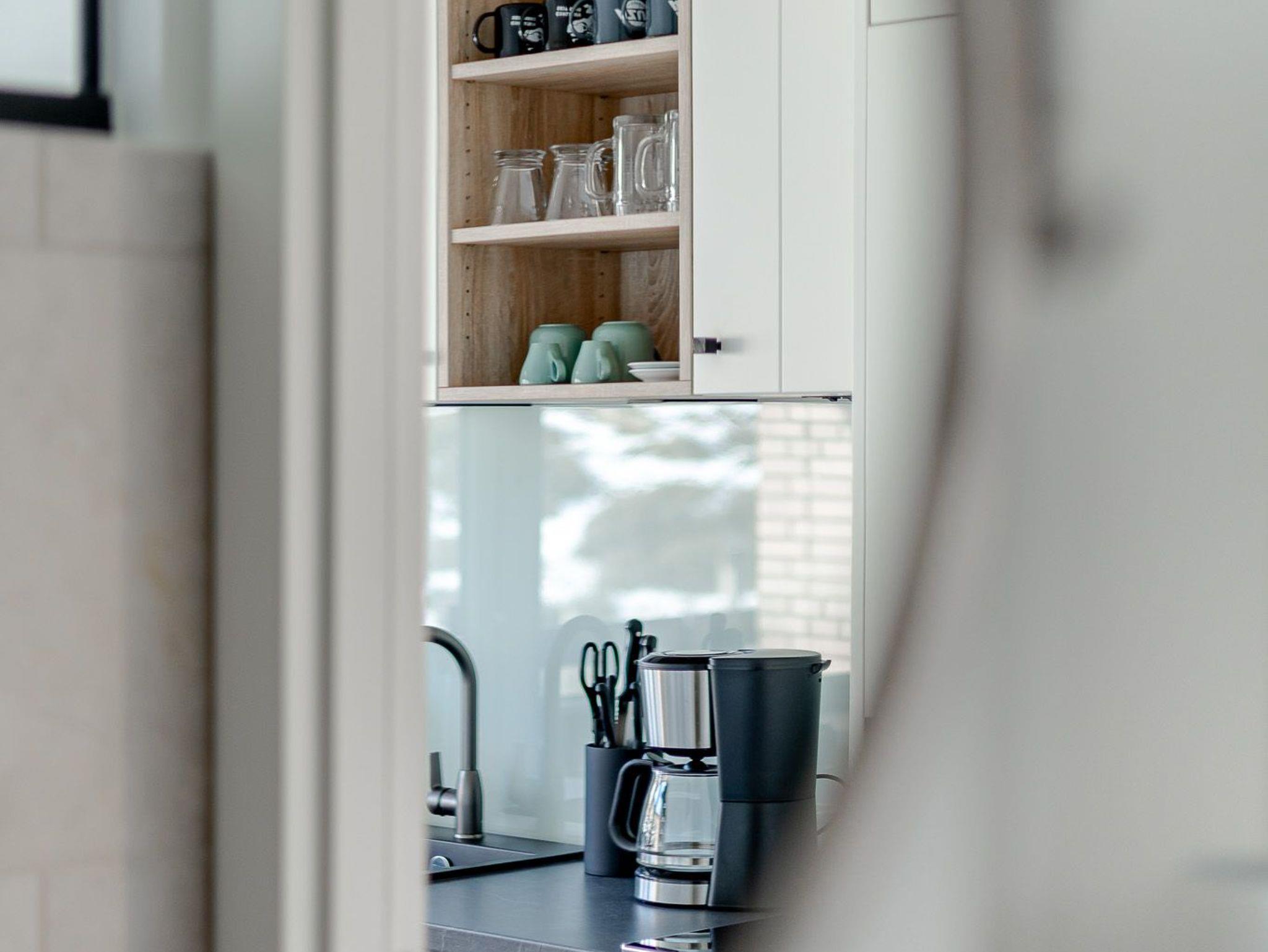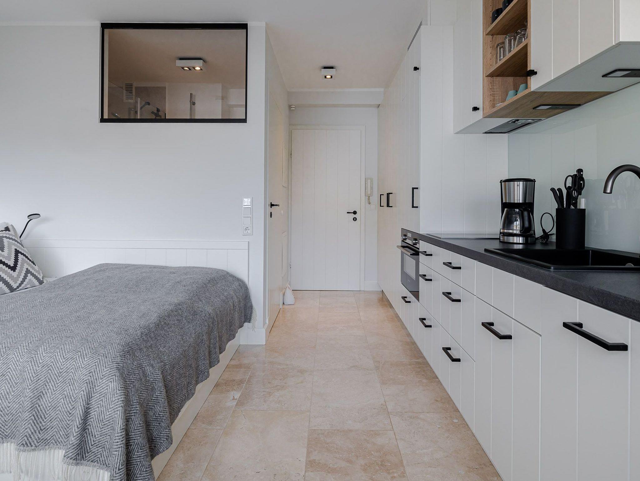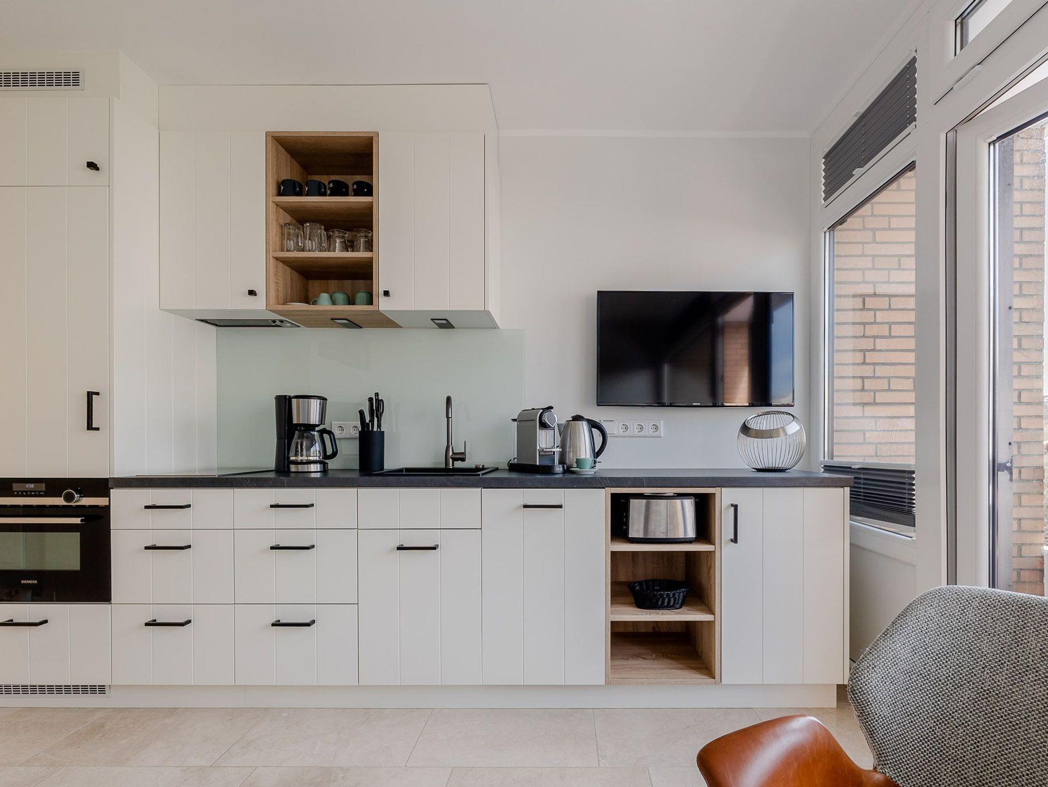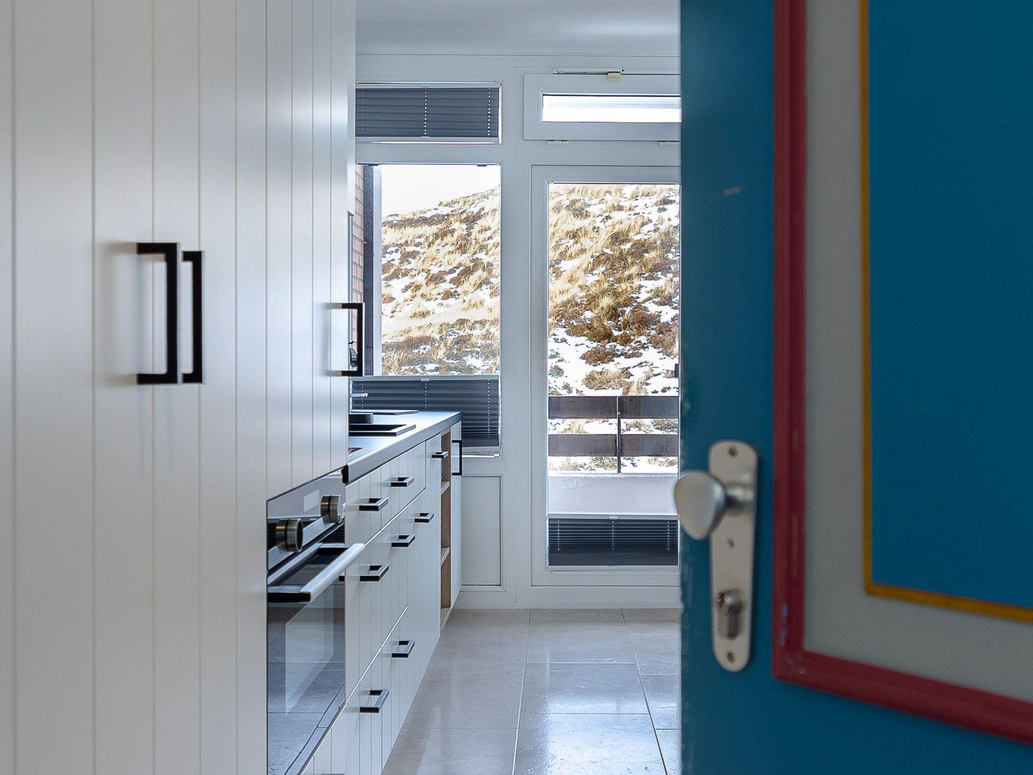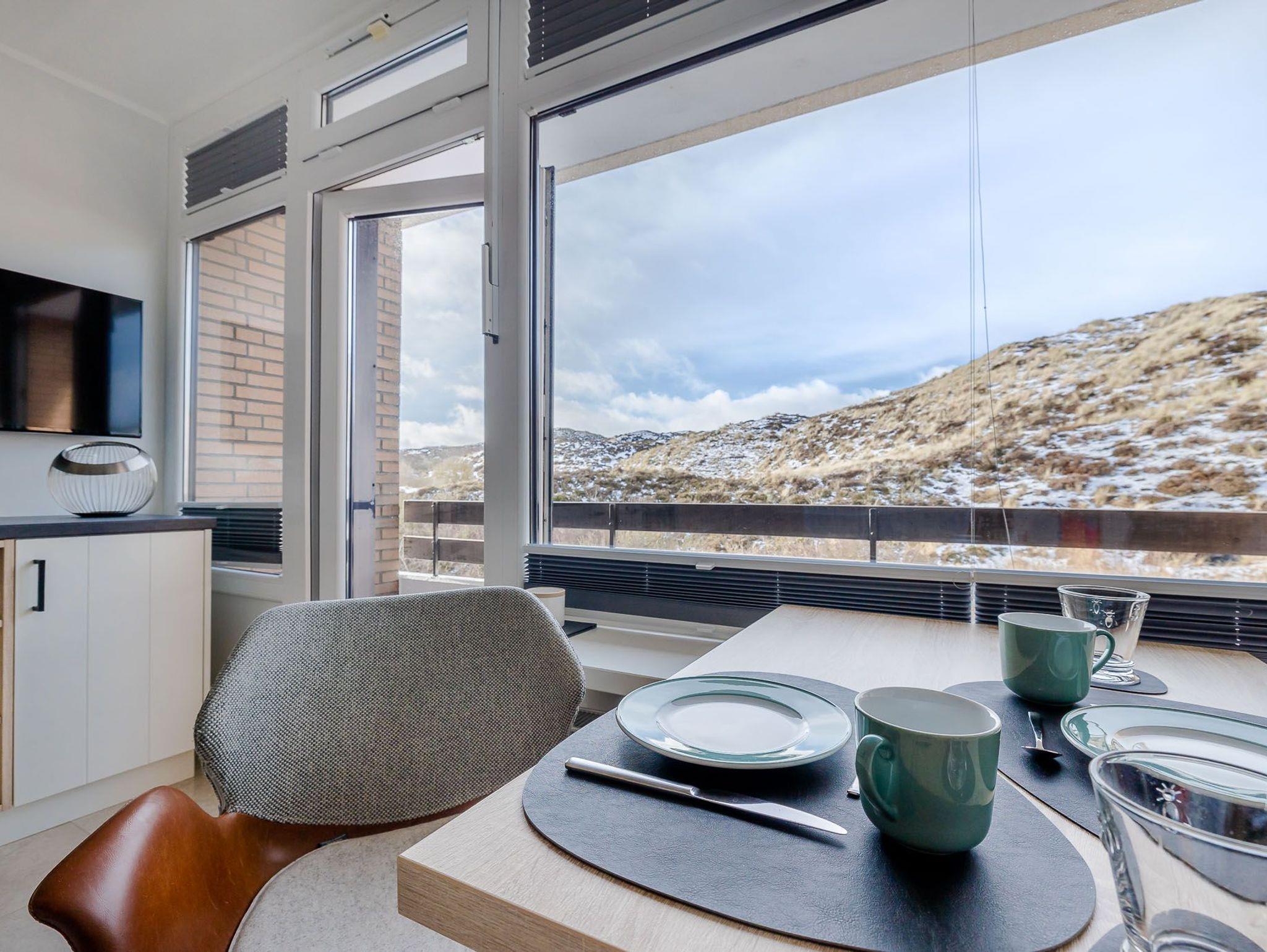 Der großzügig geschnittene Wohnraum mit modernem Interieur integriert neben einem Arbeitstisch mit Sitzgelegenheit und einem Doppelbett auch eine komplett ausgestattete Küche für ausgedehnte kulinarische Abende. Dank des großen Panoramafensters mit Tür zur Terrasse ist das gesamte Zimmer lichtdurchflutet und sorgt allzeit für eine behagliche Stimmung. Und das Schönste: Direkt dahinter beginnen die Dünen, die sich von hier bis zur offenen Nordsee erstrecken. Mehr Natur geht kaum.