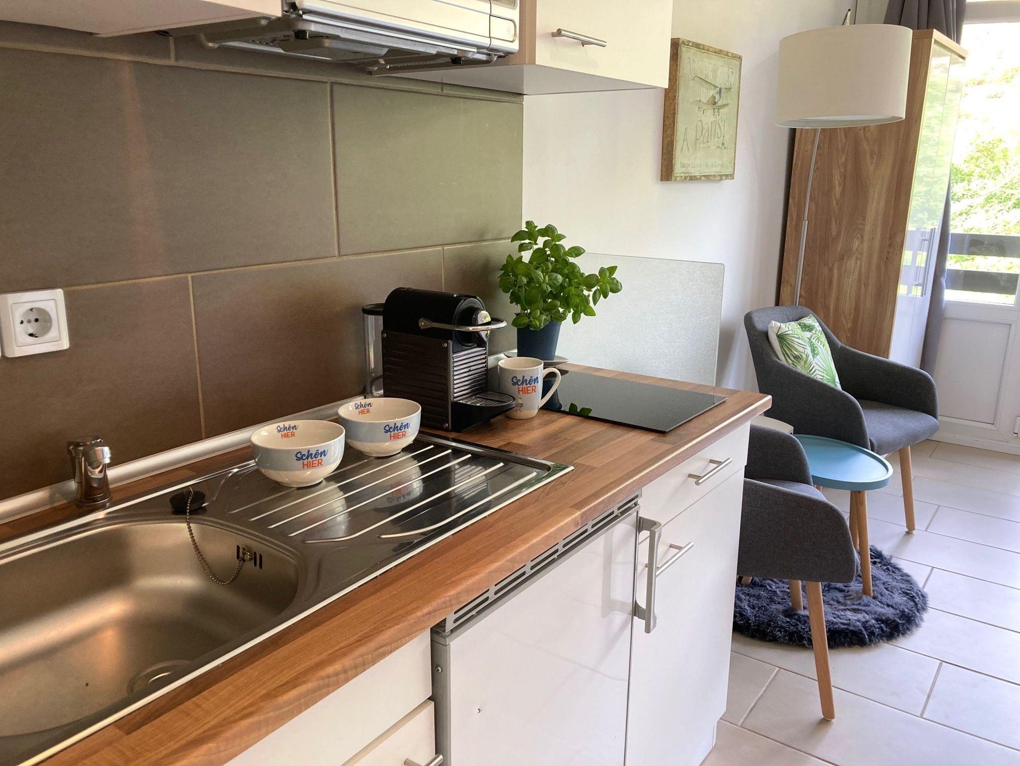Im modern und zweckmäßig eingerichteten Appartment finden Sie ein großes Wohn-/Schlafzimmer mit Doppel-Klappbett, Kleiderschrank, Sesseln und Sitzecke mit Tisch, eine voll ausgestattete Küchenzeile mit 2 Kochstellen, Mikrowelle und Kühlschrank sowie Kaffeemaschine, Kapselautomat und Toaster. Das Badezimmer mit Dusche ist freundlich gestaltet. Zur Westseite, von der Straße abgewandt und ruhig gelegen, befindet sich ein schöner Balkon, auf dem Sie ab Mittag bis in den Abend hinein mit Blick auf Dünen und Heide die Sonne genießen können.