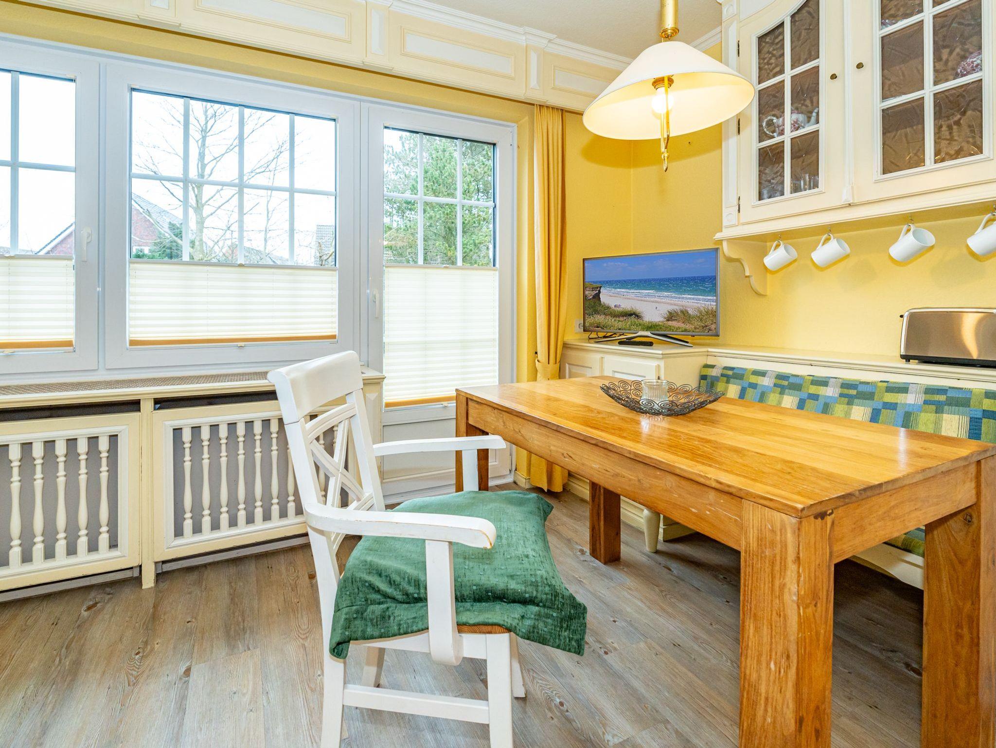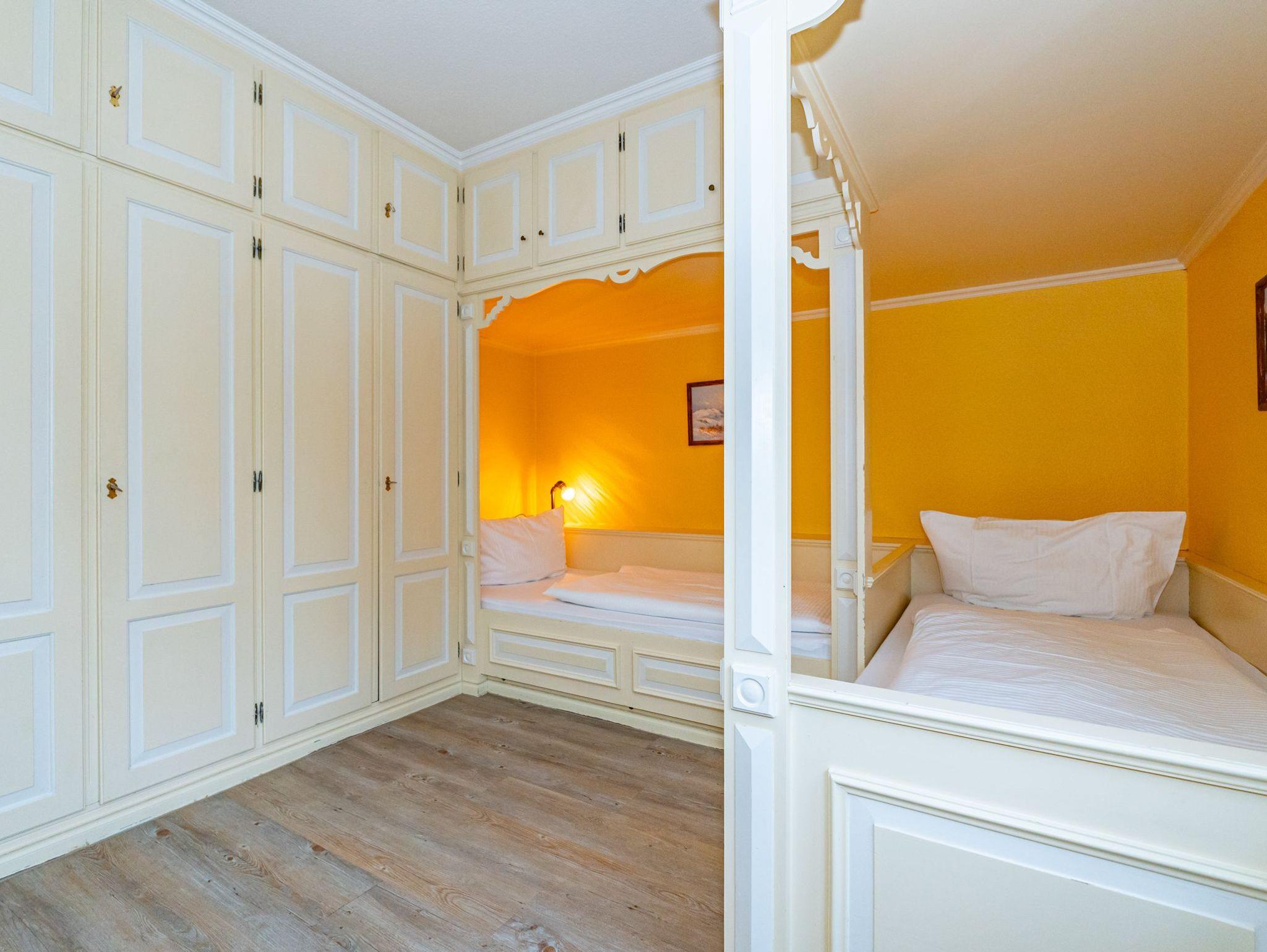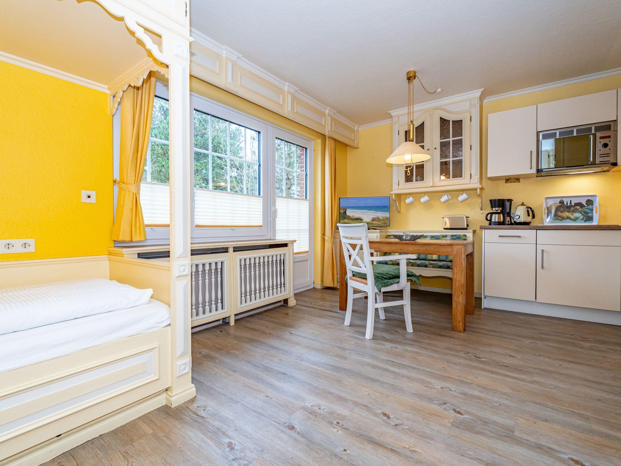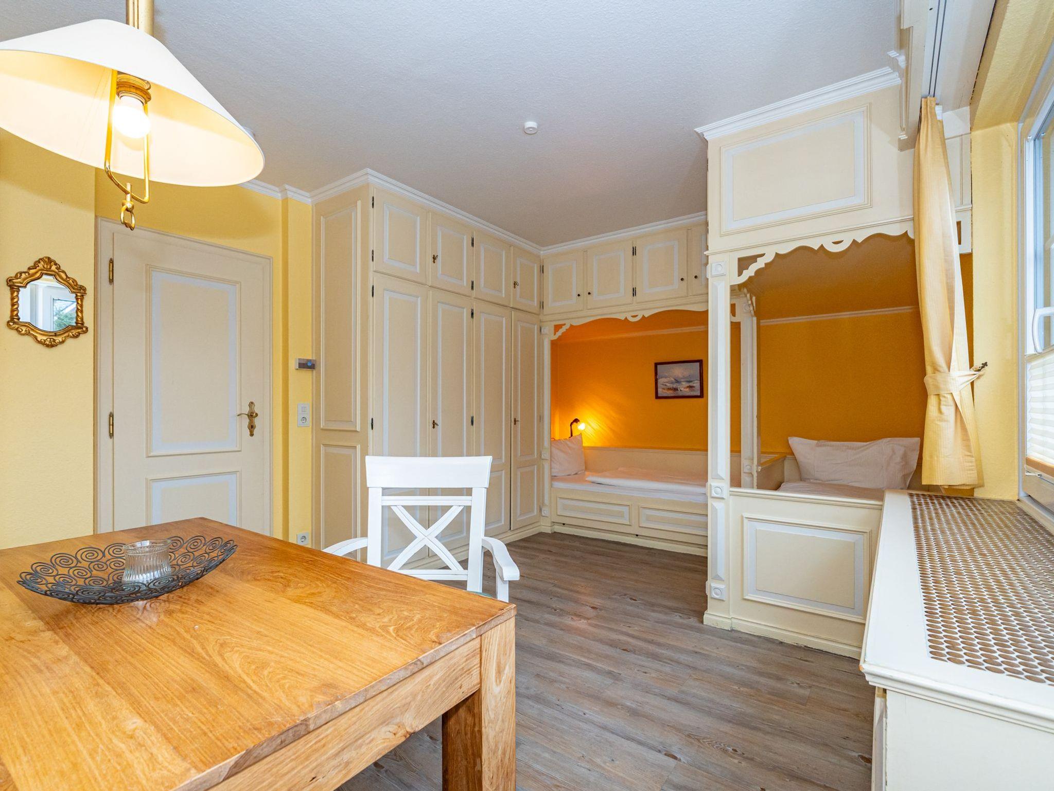 Das erste Apartment befindet sich im Erdgeschoss des Hauses. Mit einer Wohnfläche von 30 Quadratmetern bietet es ausreichend Platz für 2 Personen. Über den offen gestalteten Wohn- und Essbereich haben Sie einen direkten Zugang auf Ihre Terrasse. Zwei gemütliche Alkovenbetten sorgen für entspannte Urlaubstage. Das Bad ist ausgestattet mit Dusche, WC und Waschbecken.