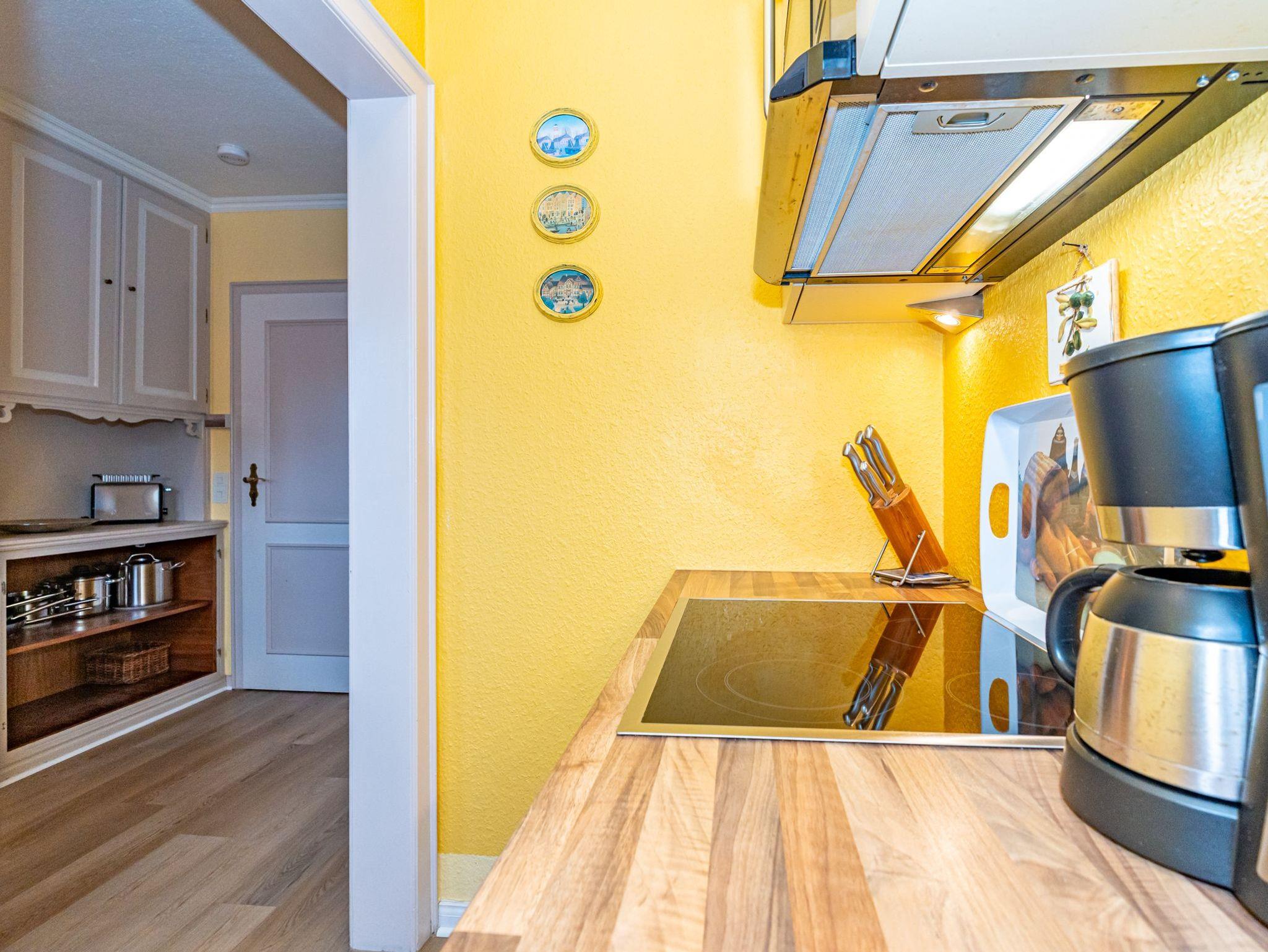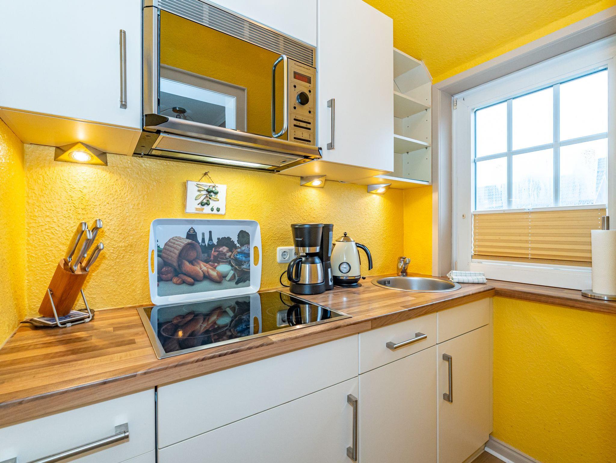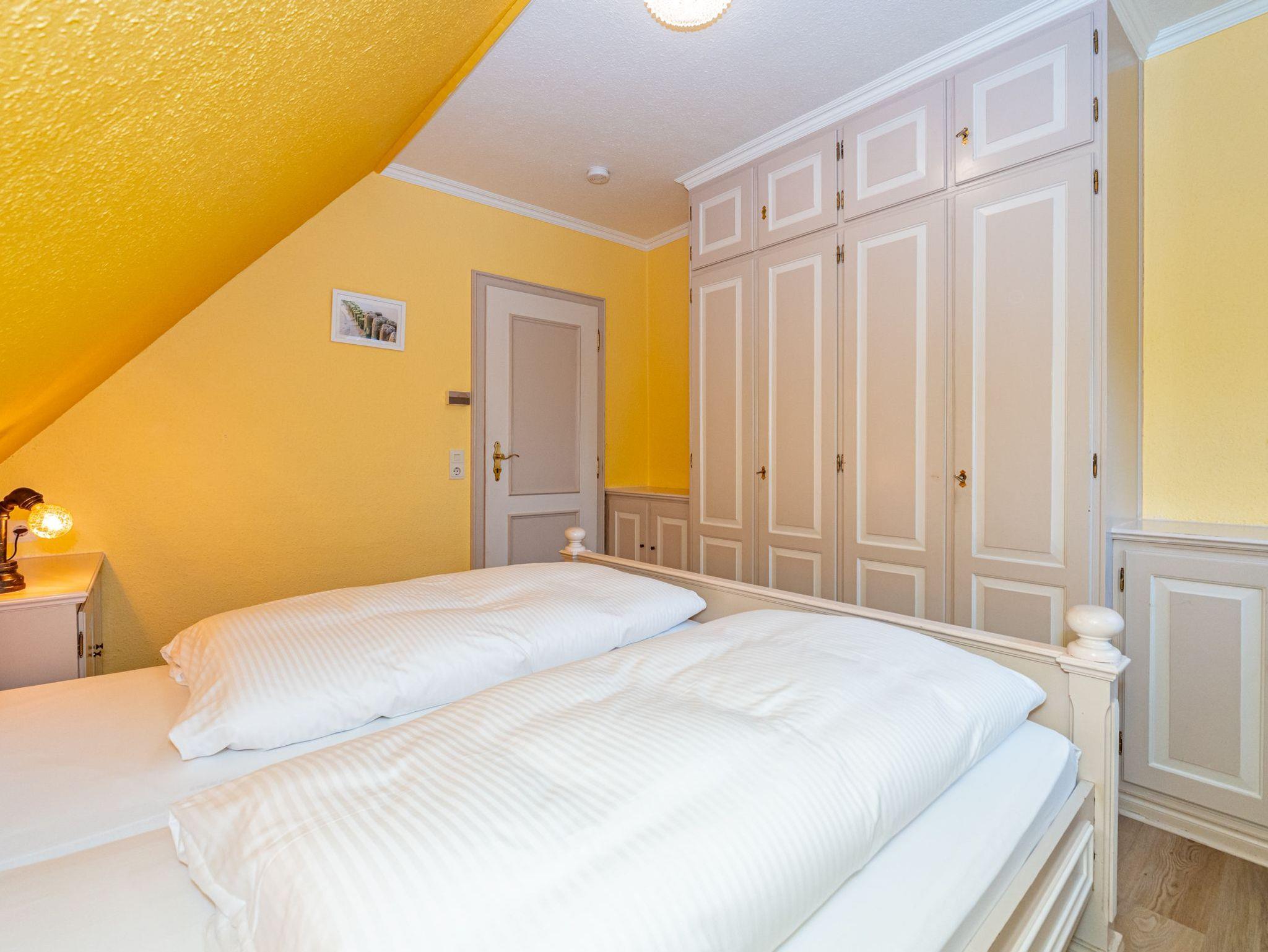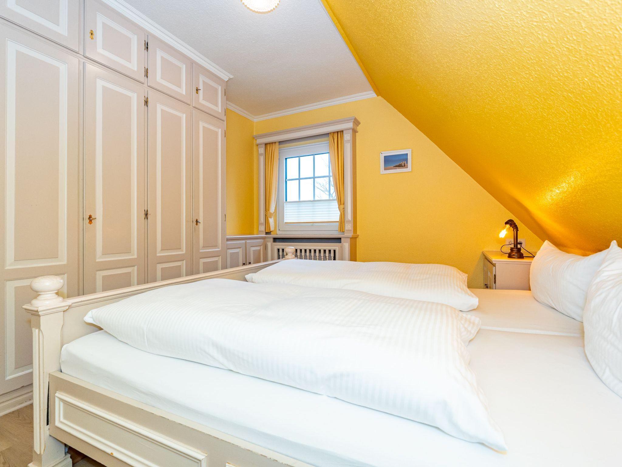 Das fünfte Apartment liegt im 1. Obergeschoss des Hauses und bietet auf 50 Quadratmeter Platz für 4 Personen. Im Wohn- und Essbereich befinden sich zwei gemütliche Alkovenbetten. Das abgetrennte Schlafzimmer verfügt über ein Doppelbett. Die separate Küche grenzt an den Wohnbereich. Bequeme Sitzmöglichkeiten runden das gemütliche Ambiente ab. Das Badezimmer ist ausgestattet mit Dusche, WC und Waschbecken.