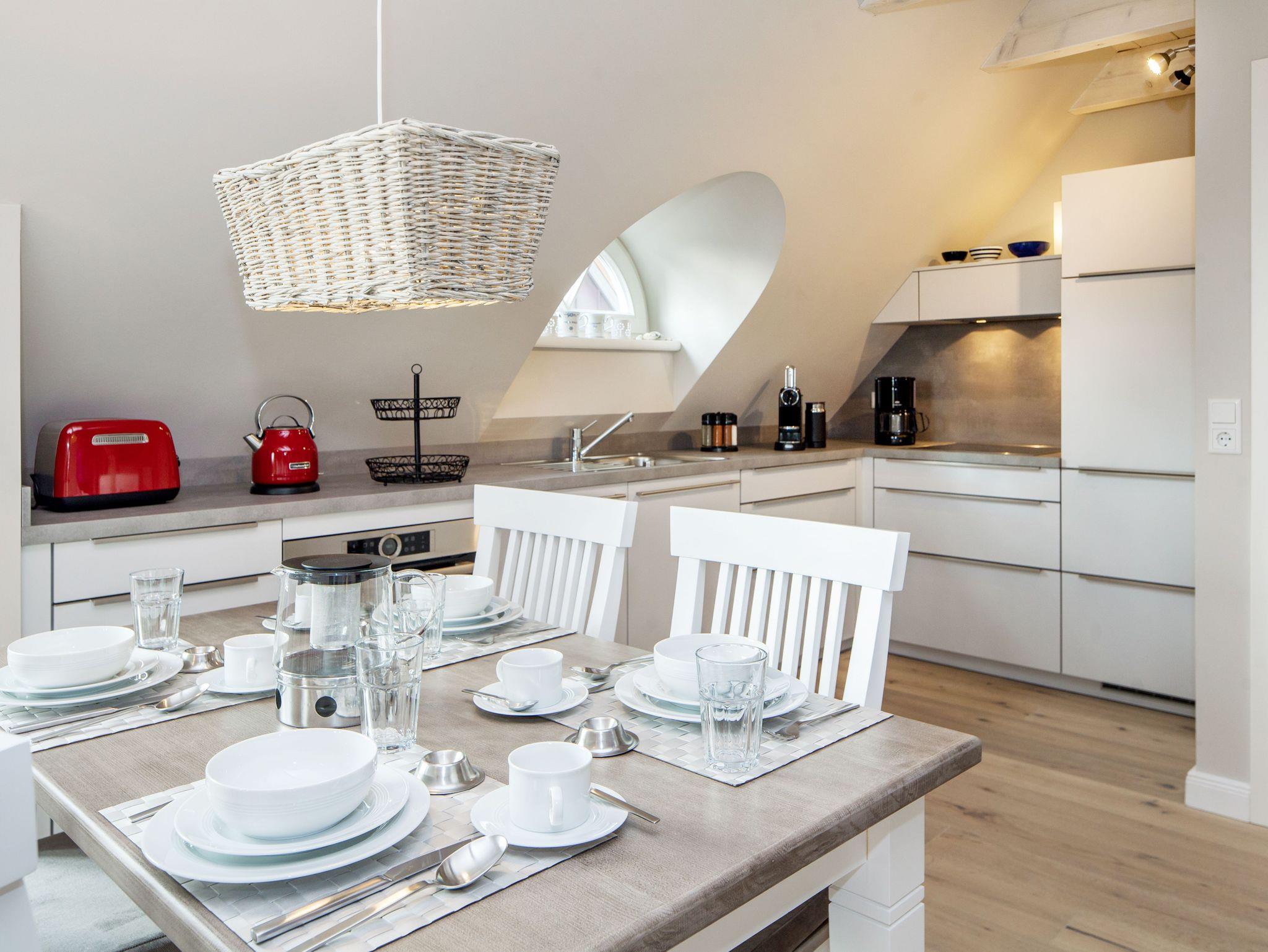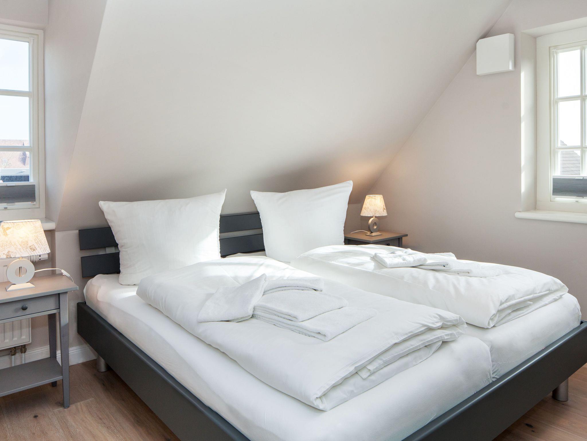 Die gesamte Unterkunft überzeugt mit ihrer ausgesuchten Innenausstattung, den gemütlichen Dachschrägen im oberen Bereich,den schönen Sprossenfenstern und dem Blick auf das Wattenmeer. Und weil das Apartment zusätzlich über einen kleinen Balkon verfügt, können Sie die nordseefrische Luft bereits „in“ den eigenen vier Wänden genießen. , Dazu gibt es einen Fahrradplatz zum anschließen und einen eigenen Parkplatz für Sie.