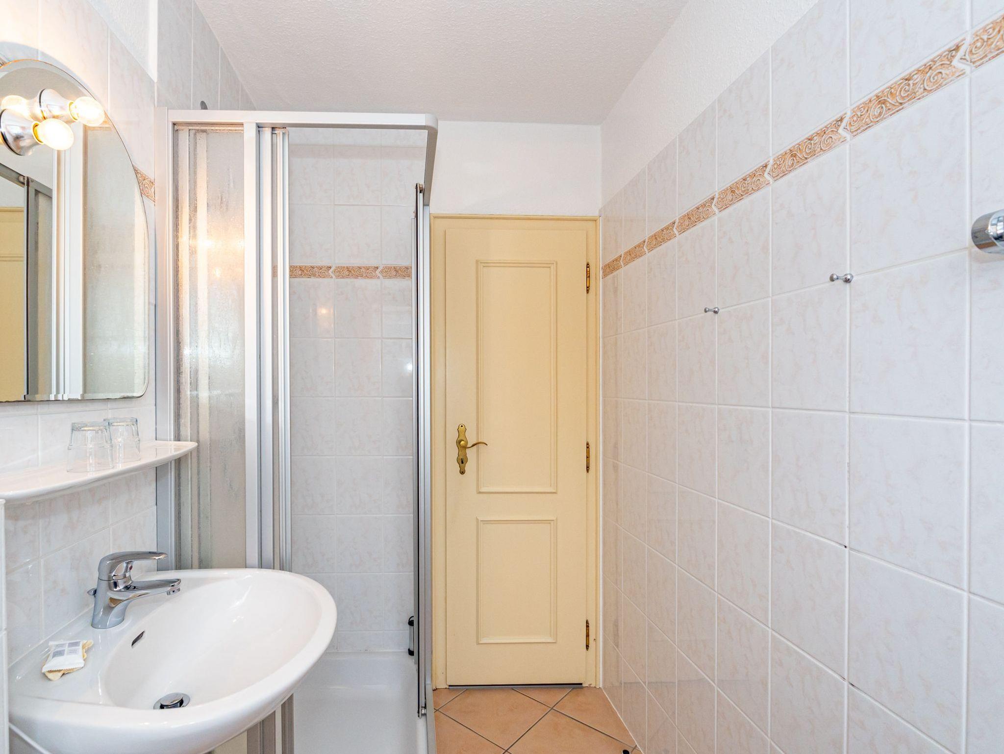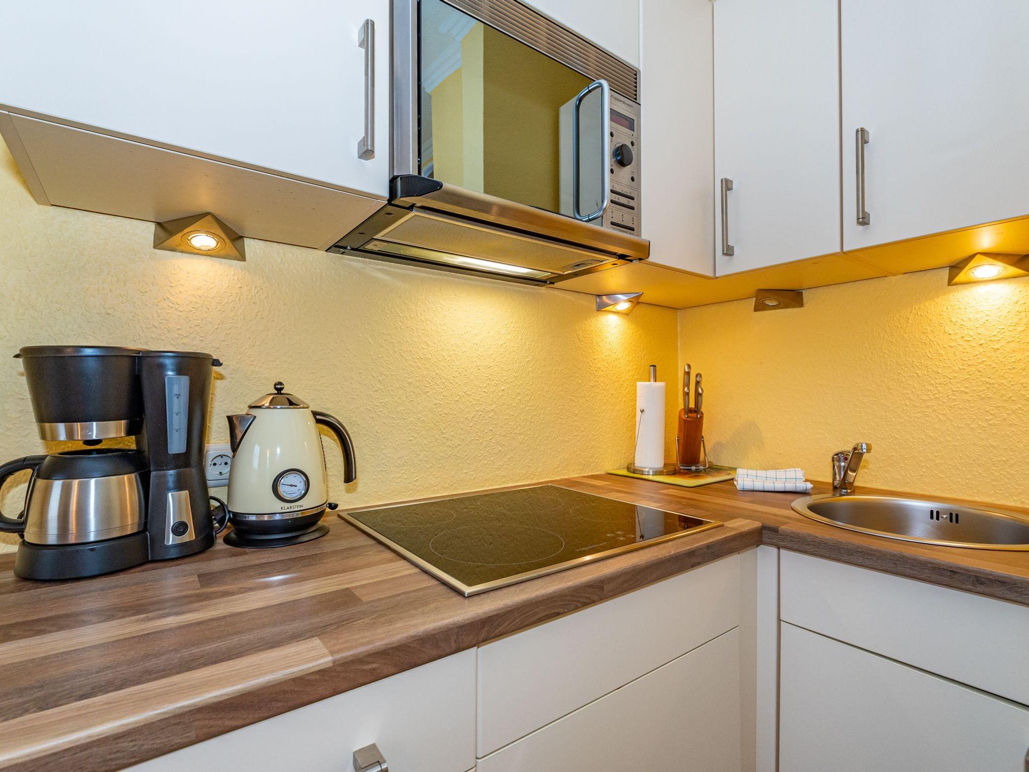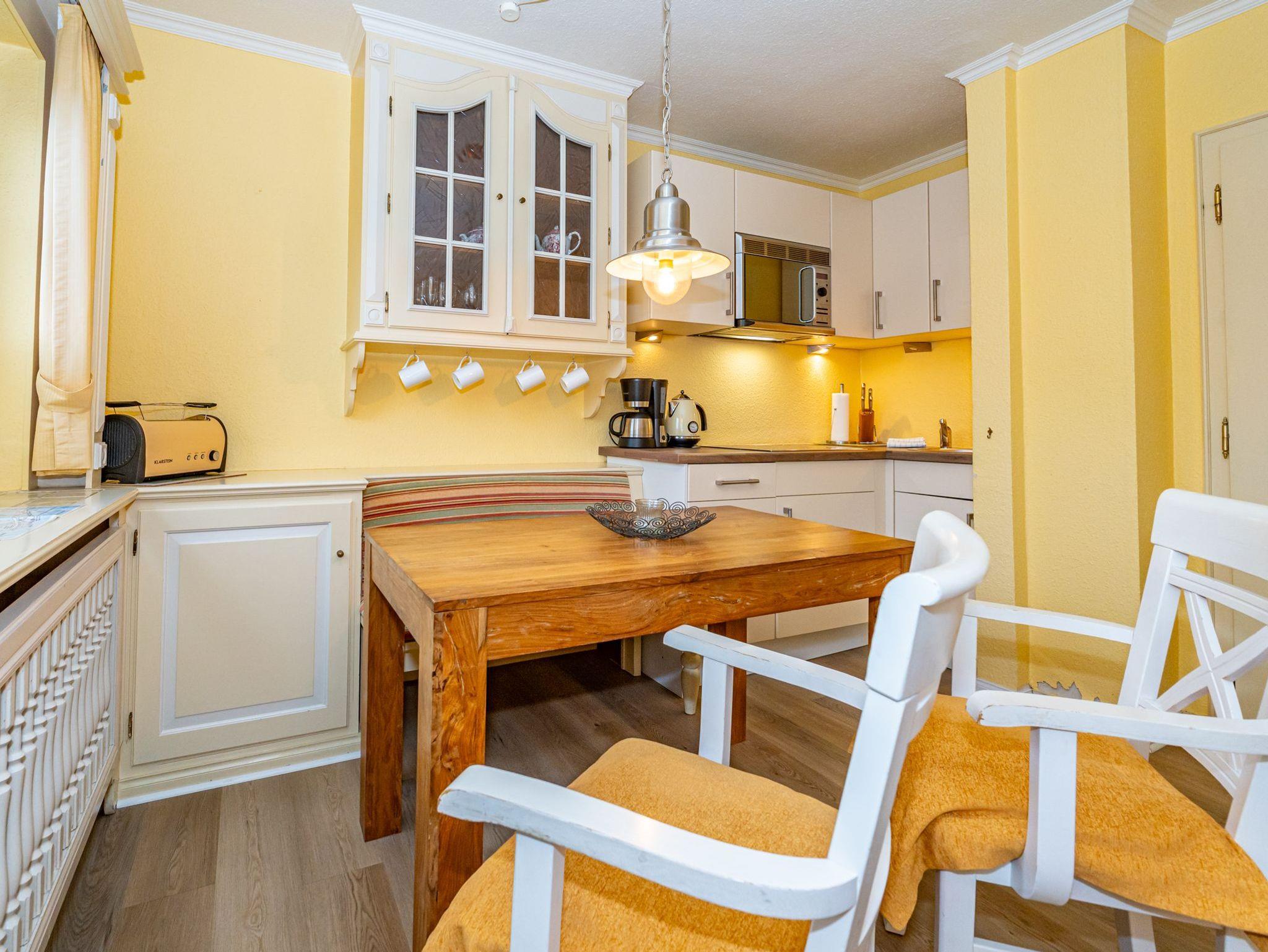 Das Apartment mit der Nummer sechs ist im 1. Obergeschoss zu finden und bietet auf 30 Quadratmeter Platz für 2 Personen. Im offen gestalteten Wohn- und Essbereich stehen 2 gemütliche Alkovenbetten. Das Bad ist ausgestattet mit Dusche, WC und Waschbecken.