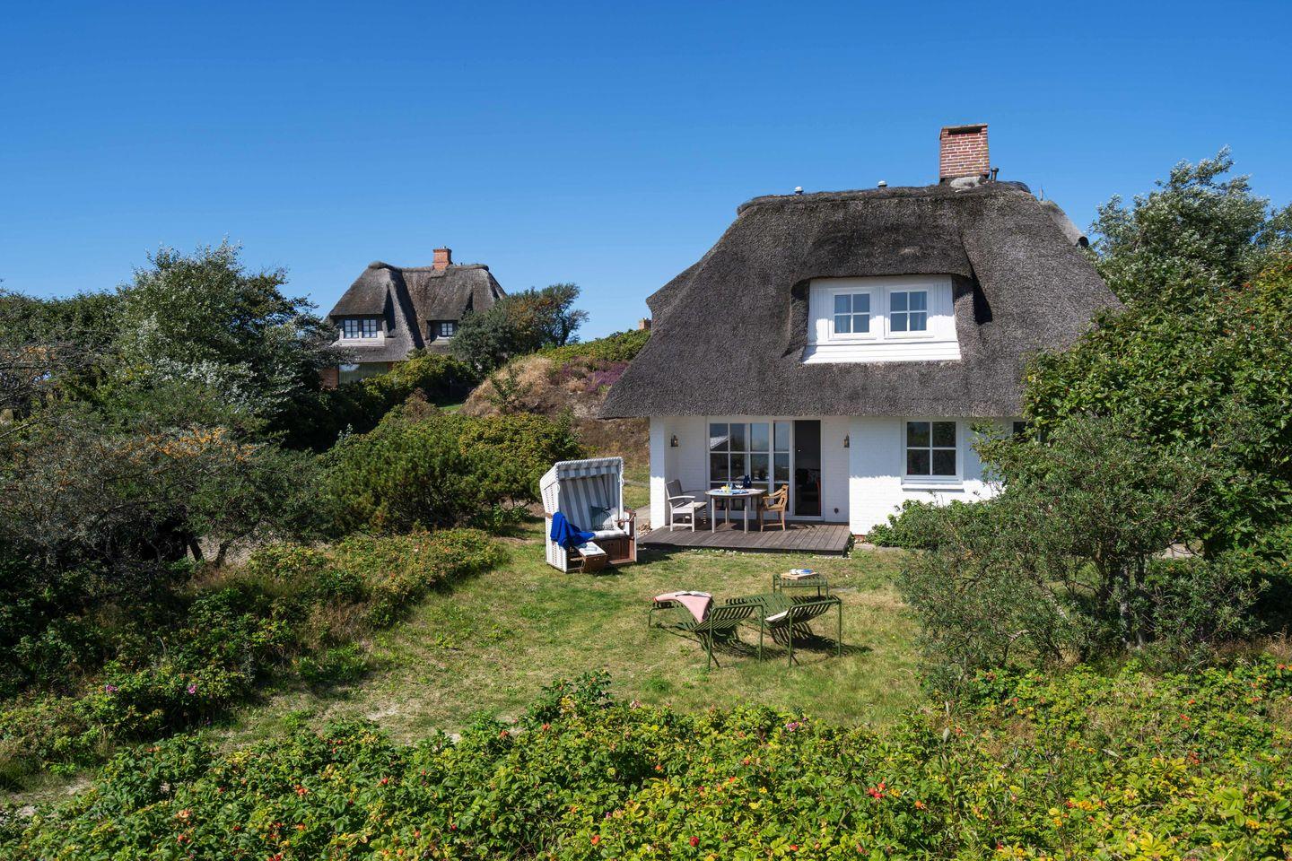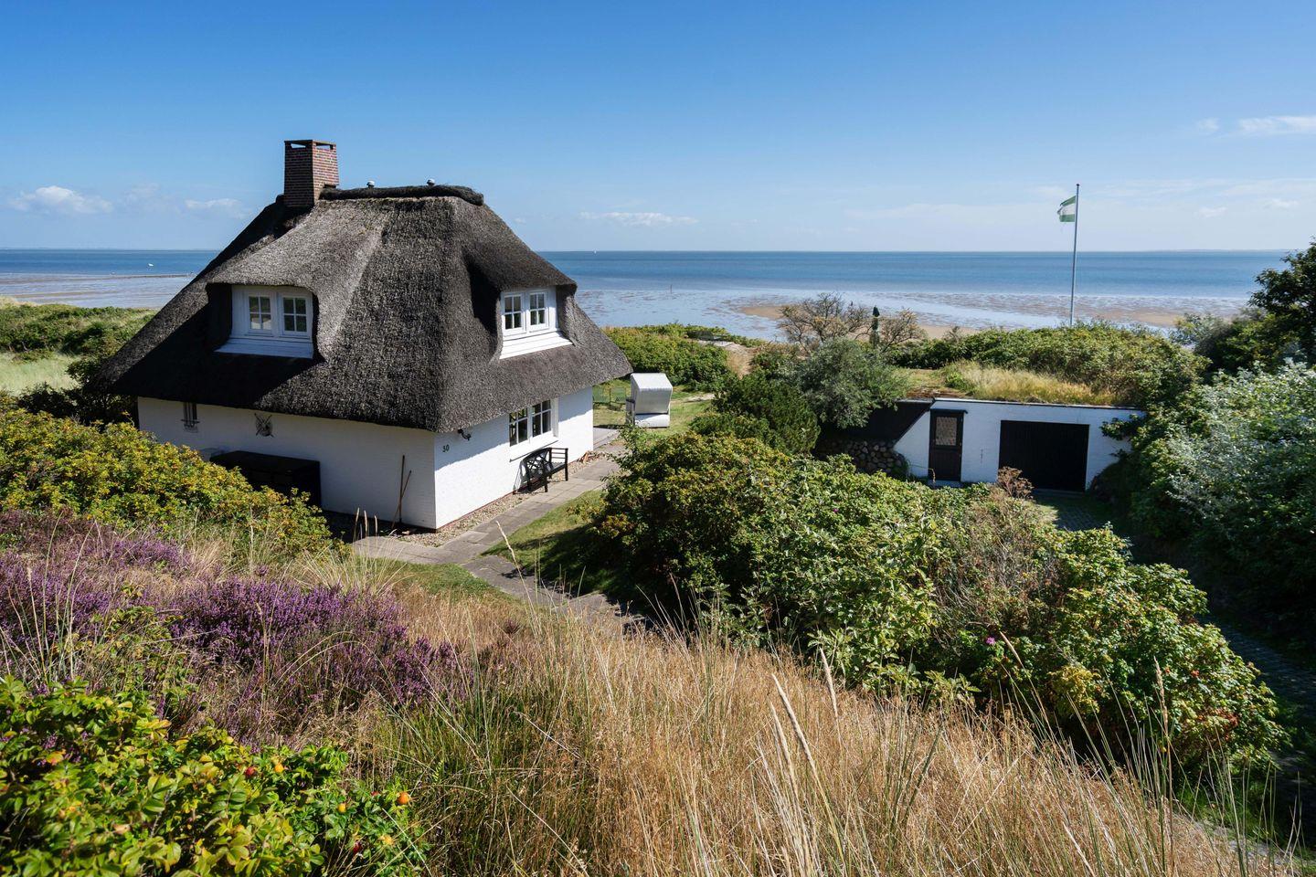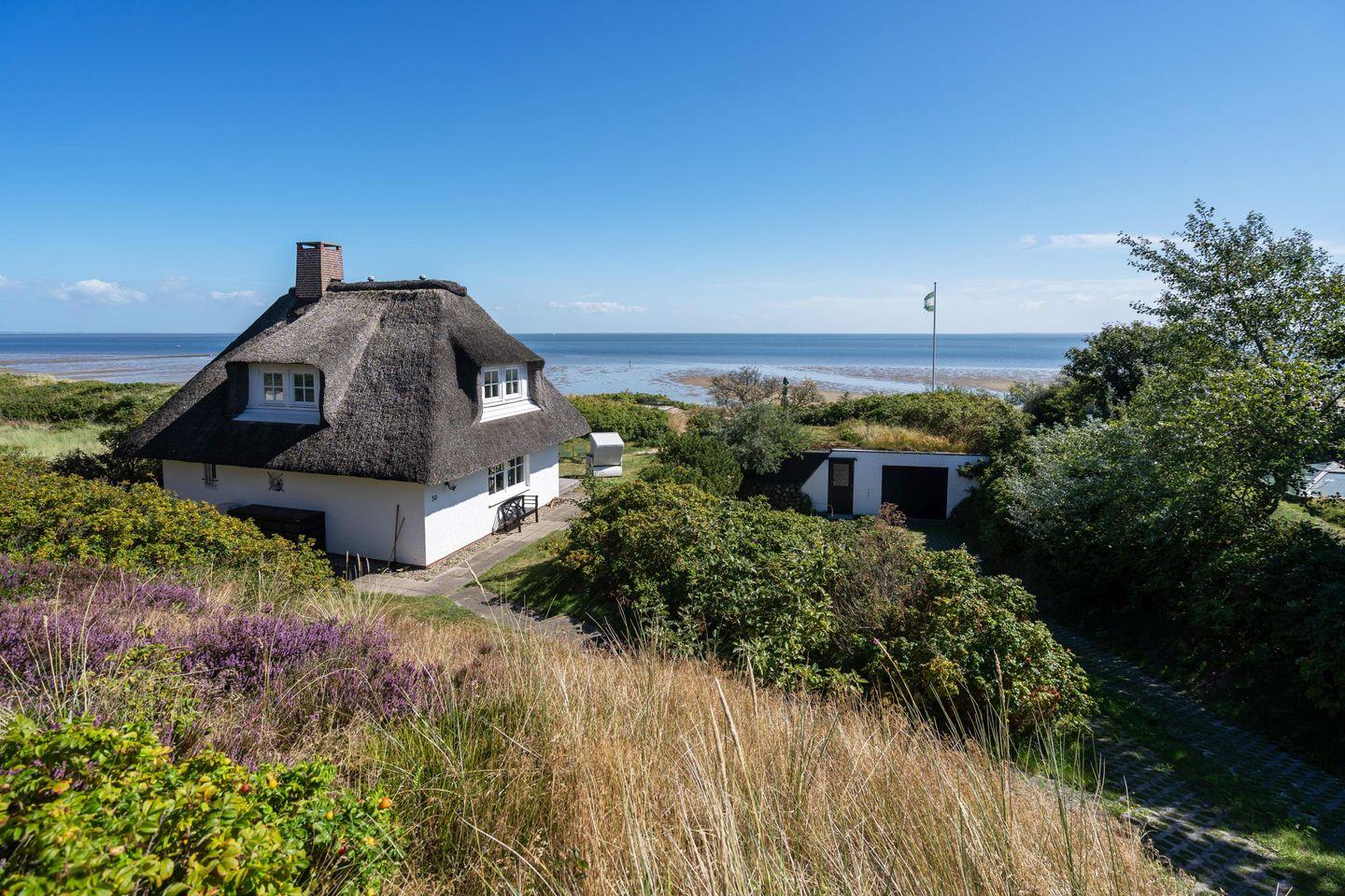 Traumhaftes Reetdachhaus samt einzigartigem Meerblick über das Lister Watt für bis zu 4 Personen mit Sauna, Kamin und wunderschönem Garten. Inkl. WLAN, PKW-Stellplatz und Gartenmöbeln. Haustiere sind willkommen.