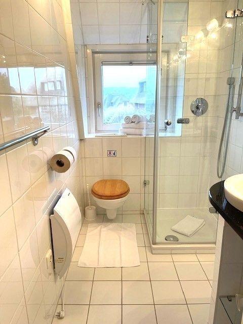 Der eigene Strandkorb ist auf der Gemeinschaftsterrasse des großen -mit Syltrosen- eingewachsenen Grundstücks. Ein PKW-Parkplatz Nr. 7 ist für Sie reserviert.