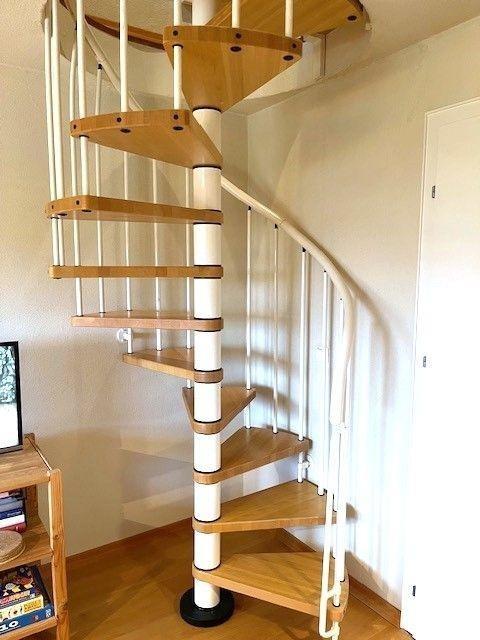 Das Appartement besteht aus zwei Etagen: Im ersten Stock befindet sich ein Schlafzimmer mit einem Schlafsofa (1,20 x 2 m ohne Fußbegrenzung), eine kleine Küche, ein Duschbad und ein großzügiger offener Wohn-Essbereich mit breiter Fensterfront mit Blick auf das Wattenmeer, der Fußboden ist ein Buche-Parkett. Die Wendeltreppe vom Wohn-Esszimmer führt in das Dachgeschoss-Schlafzimmer mit Doppelbett (1,80 x 2 m ohne Fußbegrenzung).