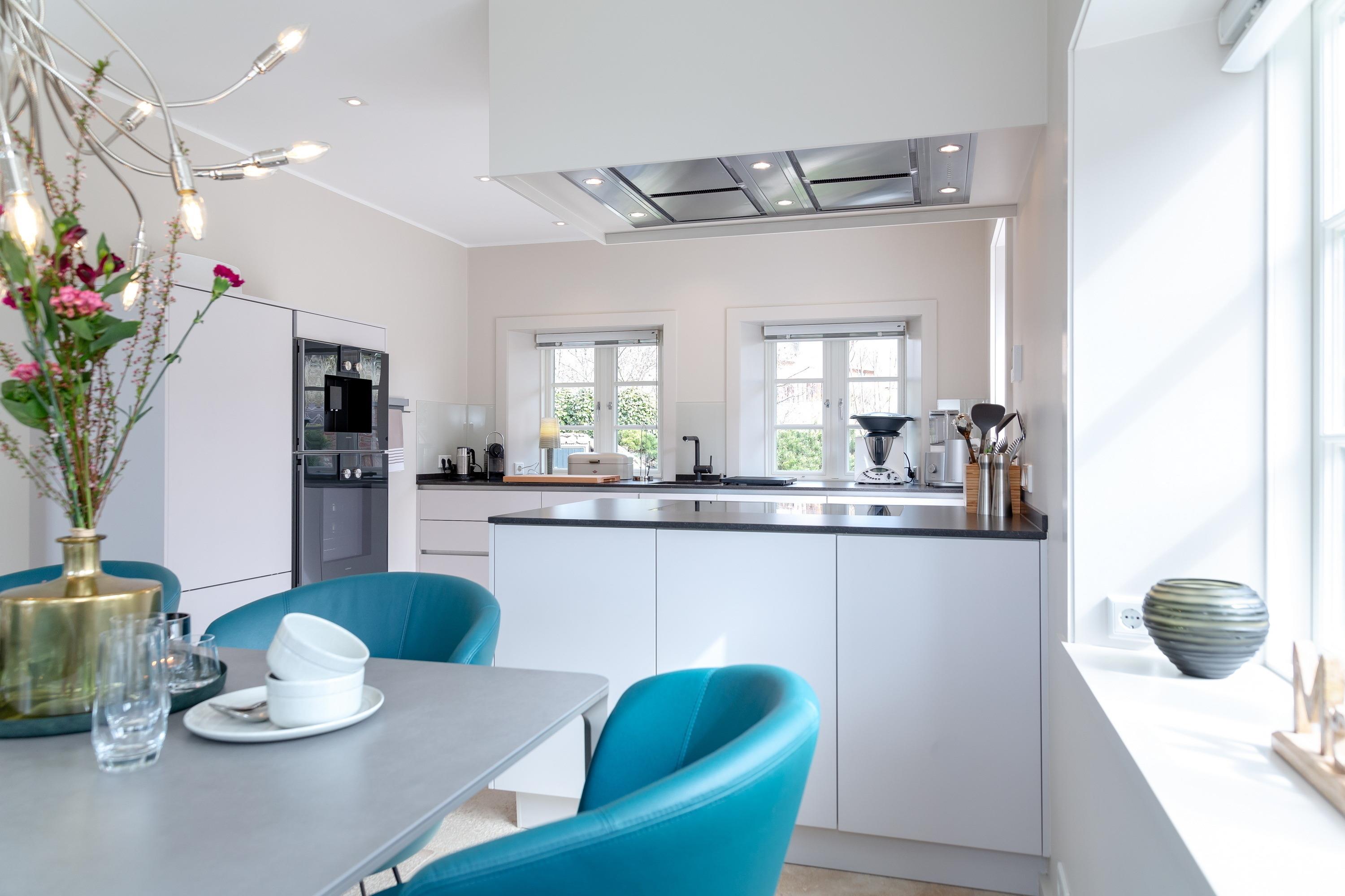 Exklusives Ferienhaus unter Reet in ruhiger Lage eingebettet in die Mellhörner Dünenlandschaft für bis zu 8 Personen. Das Haus besticht durch seine hochwertige Ausstattung und lichtdurchfluteten Räume. Das Erdgeschoss überzeugt mit einem wundervollen Wohn-Essbereich mit einer bestens ausgestatteten Küche sowie ein separates Gäste WC ist ebenfalls vorhanden. Im Obergeschoss befinden sich zwei großzügige Doppelschlafzimmer jeweils mit Fernseher, sowie ein geräumiges Duschbad . Zwei weitere Doppelschlafzimmer finden Sie im Untergeschoss jeweils mit Bad en Suite. Ein Hauswirtschaftsraum mit Waschmaschine und Trockner ist ebenfalls vorhanden. Genießen Sie die Ruhe auf den beiden dazugehörigen Terrassen.[nbsp] Pkw - Stellplatz und Garage steht am Haus den Gästen zur Verfügung.