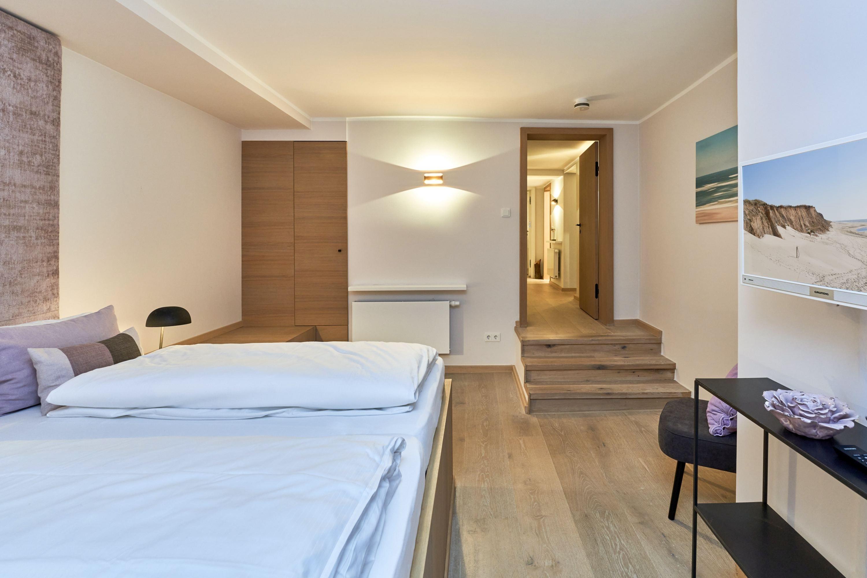 Das Haus Silbermöwe unter Reet liegt in ruhiger Lage von List und lässt keine Wünsche offen. Im Erdgeschoss befindet sich der großzügige Wohn und Essbereich mit Kamin sowie eine gemütliche Sitzecke zum chillen. Die moderne Küche mit allen technischen Geräten sowie ein separates Gäste - WC befinden sich ebenfalls auf dieser Ebene. Das Obergeschoss verfügt über ein Masterschlafzimmer mit Schrankeinbauten und angrenzenden Wannenduschbad mit WC, ein weiteres Schlafzimmer mit Doppelbett und Duschbad mit WC sind ebenfalls vorhanden. Im Dachgeschoss befindet sich ein schönes Spielzimmer für Kids mit Fernseher und separaten Duschbad mit WC. Im Untergeschoss befindet sich ein weiteres Schlafzimmer mit Doppelbett und Fernseher sowie der Saunabereich mit Dusche und WC . Ein weiterer Ruheraum mit Fitnessgerät steht den Gästen ebenfalls zur Verfügung. Ein erholsamer Wohlfühlurlaub ist Ihnen garantiert. Das Haus verfügt ab dem 01.01.2024 über eine E- Auto- Ladestation am dazugehörigen Parkplatz am Haus.