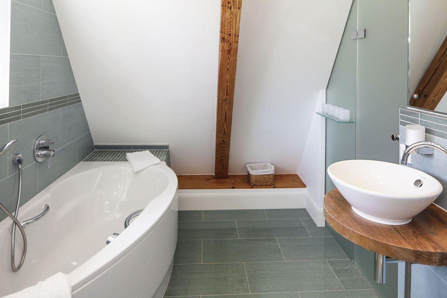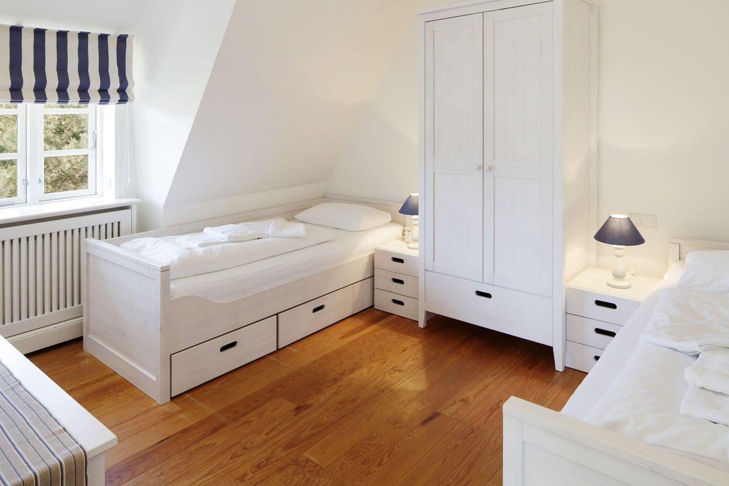 In den oberen Etagen befinden sich drei Schlafräume. Ein mit Doppelbetten, eines mit zwei Einzelbetten. Im DG befindet sich noch ein Doppelbett.