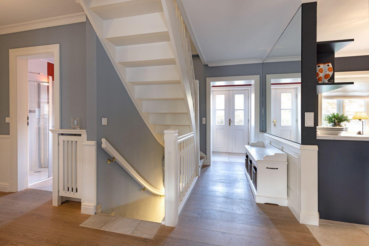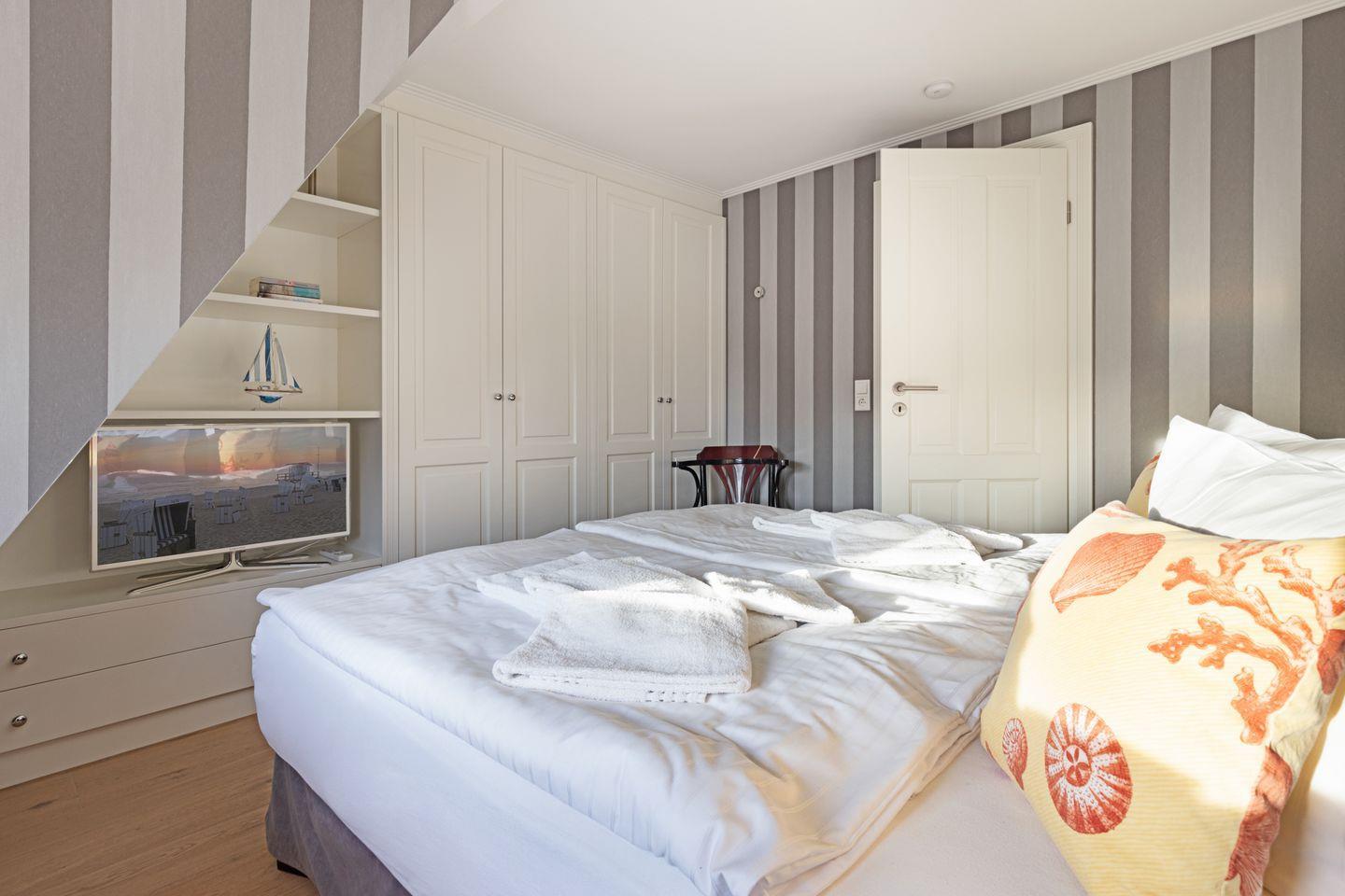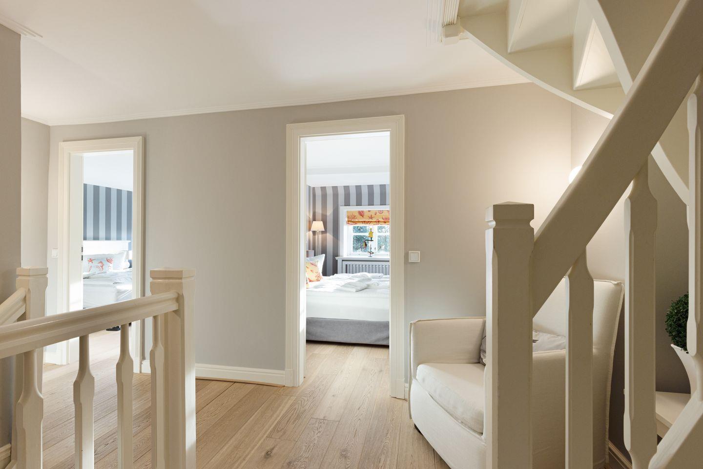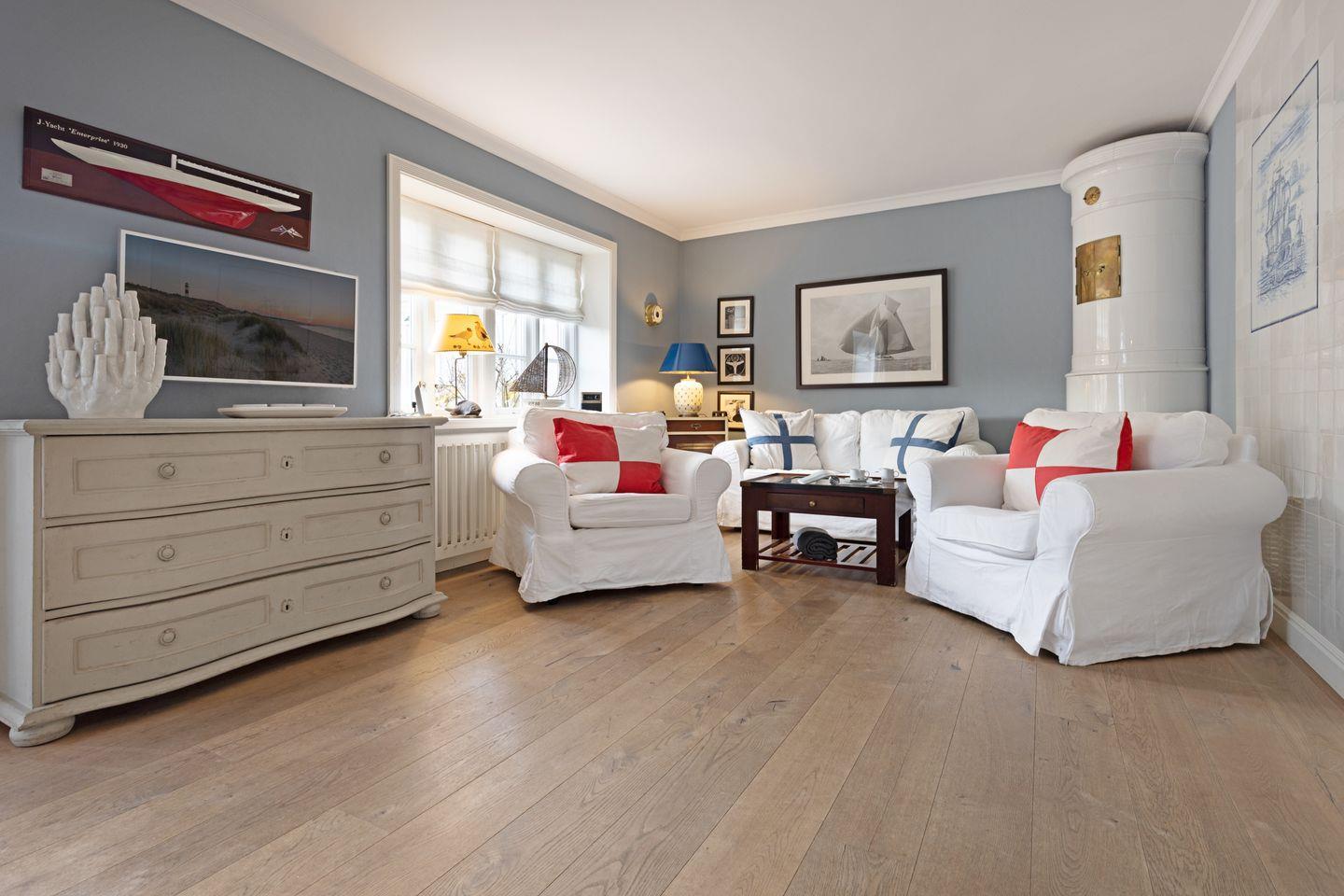 Ihr Haus "Kapitänshaus" verfügt auf 160 m² über zwei Badezimmer und im 1. Stock über zwei Schlafzimmer mit Doppelbetten.