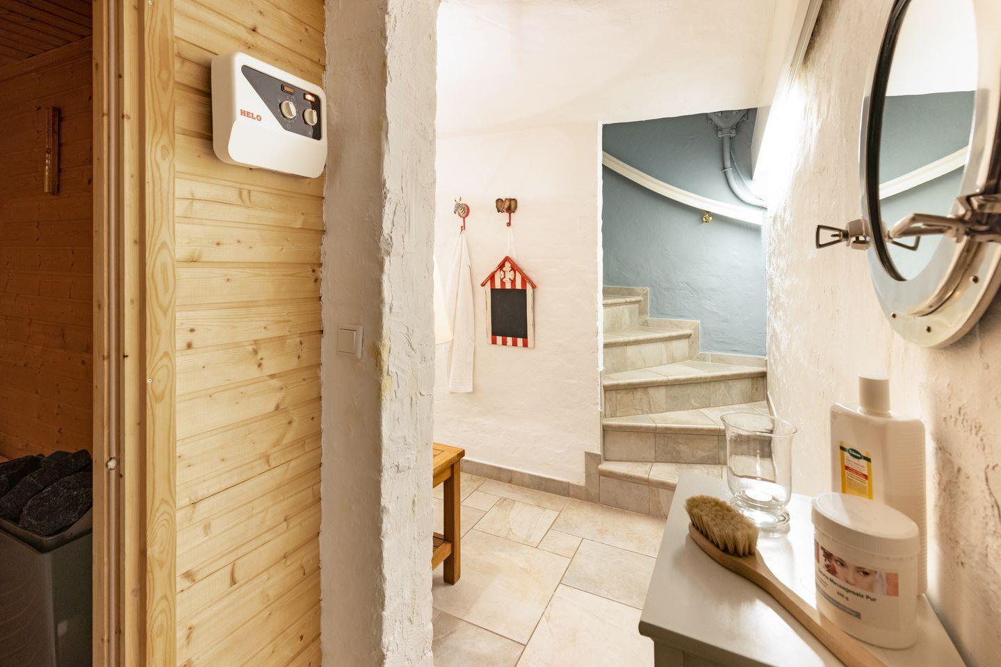 In jedem Schlafzimmer befindet sich ein Fernseher. Darüber hinaus hat das Haus eine eigene große Sauna im Keller.