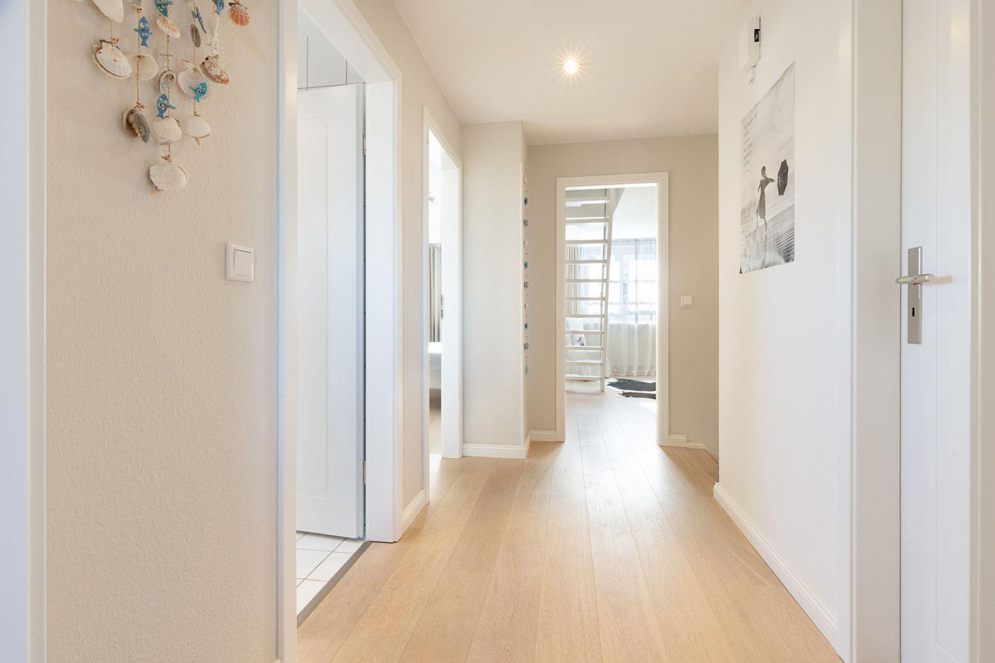drei Bädern und einer atemberaubenden Aussicht über das Wattenmeer bis nach Dänemark (aus dem Doppelbett-Schlafzimmer und Bad).