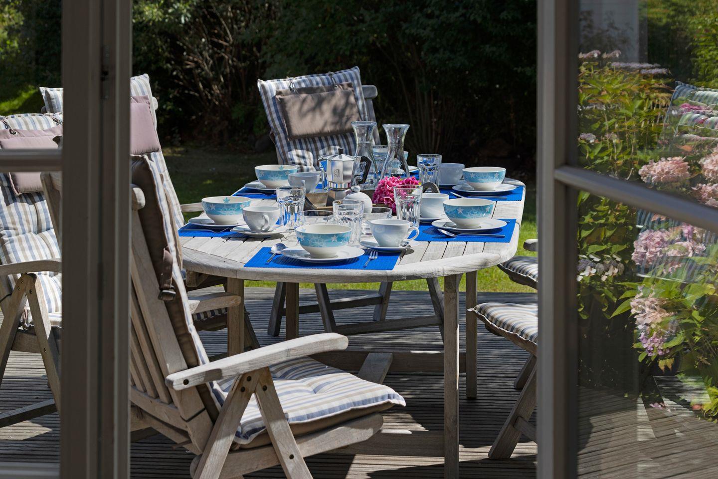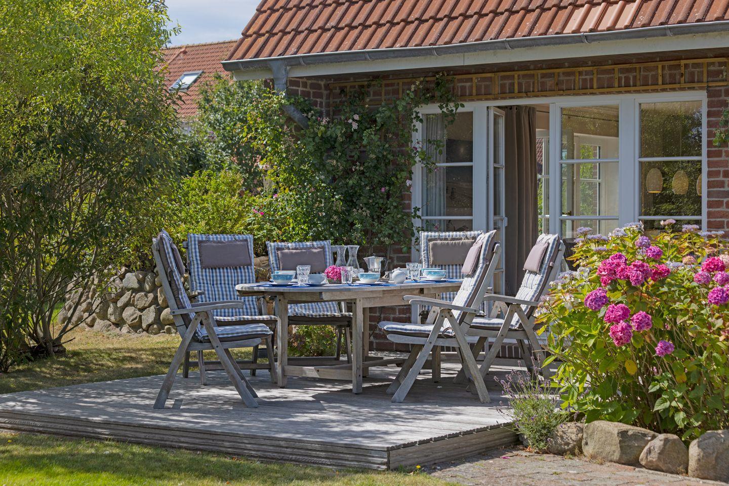 Gartenmöbel und ein Strandkorb stehen Ihnen saisonal begrenzt zur Verfügung.