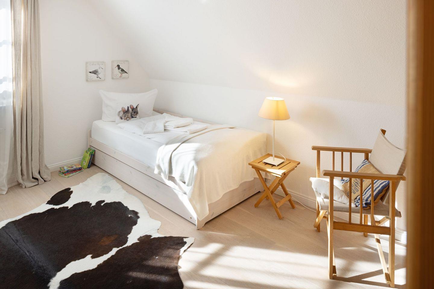 Zwei davon jeweils mit Doppelbett (ein davon mit direkt angrenzendem Bad.) und ein Schlafzimmer mit Einzelbett welches ausklappbar auch für zwei Personen geeignet ist.