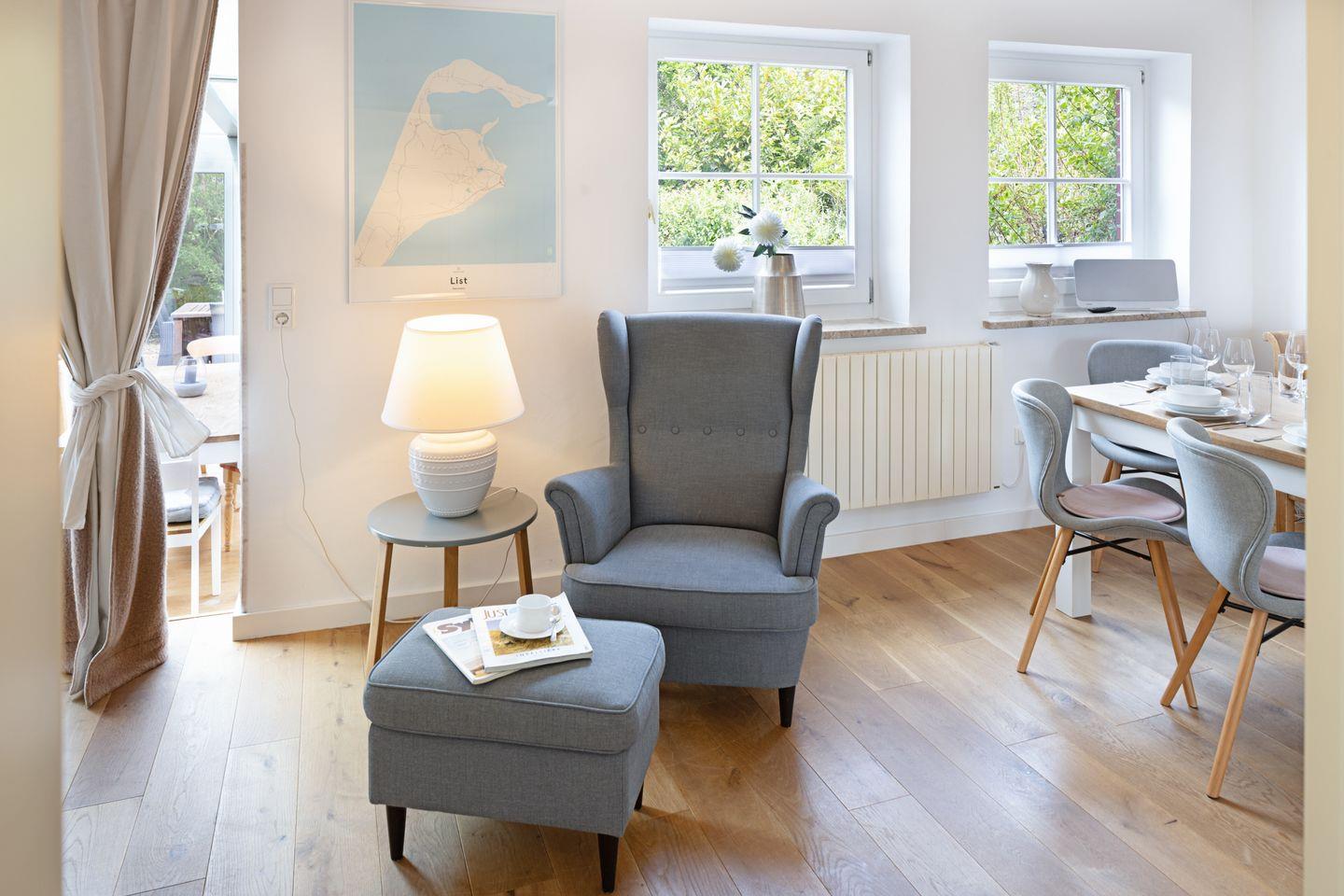Zentral gelegenes familienfreundliches Ferienmittelhaus für bis zu sechs Personen mit Wintergarten und Garten mit Strandkorb.