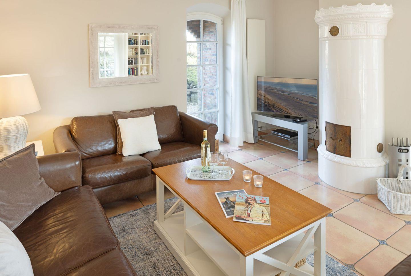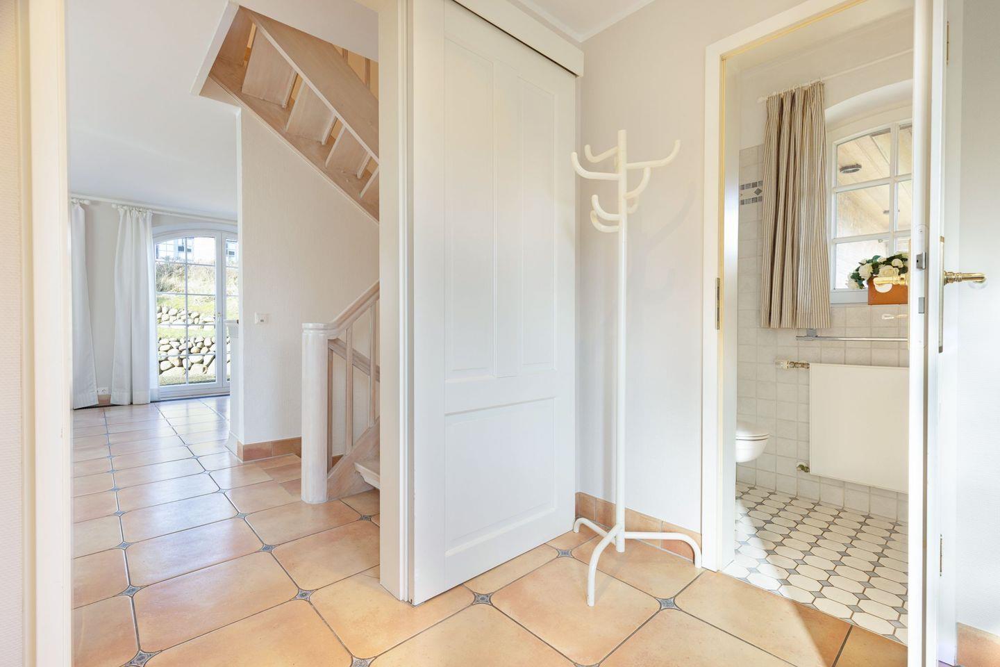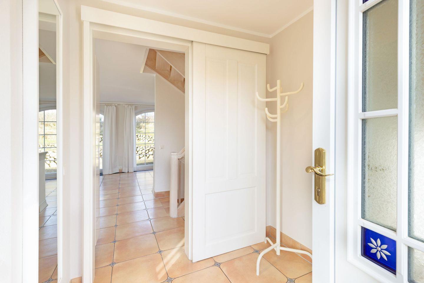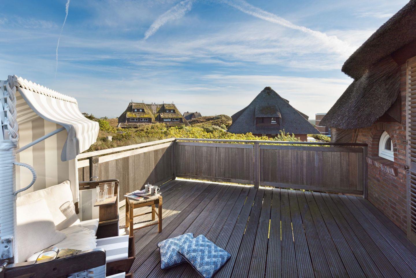 Exklusives freistehendes Haus unter Reet für bis zu sechs Personen mit Doppelgarage in sonnenverwöhnter Lage mit Meerblick 180m vom Strand entfernt.