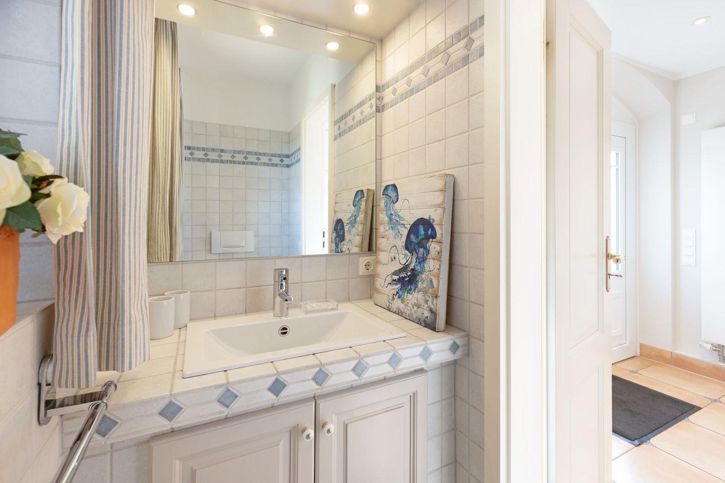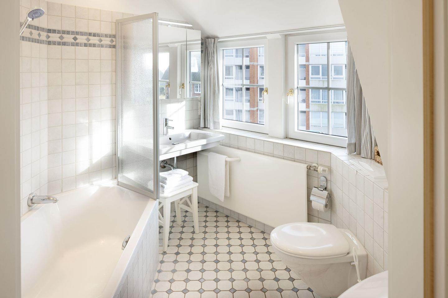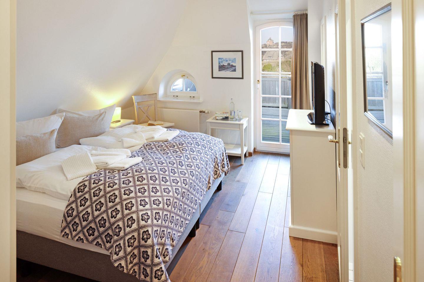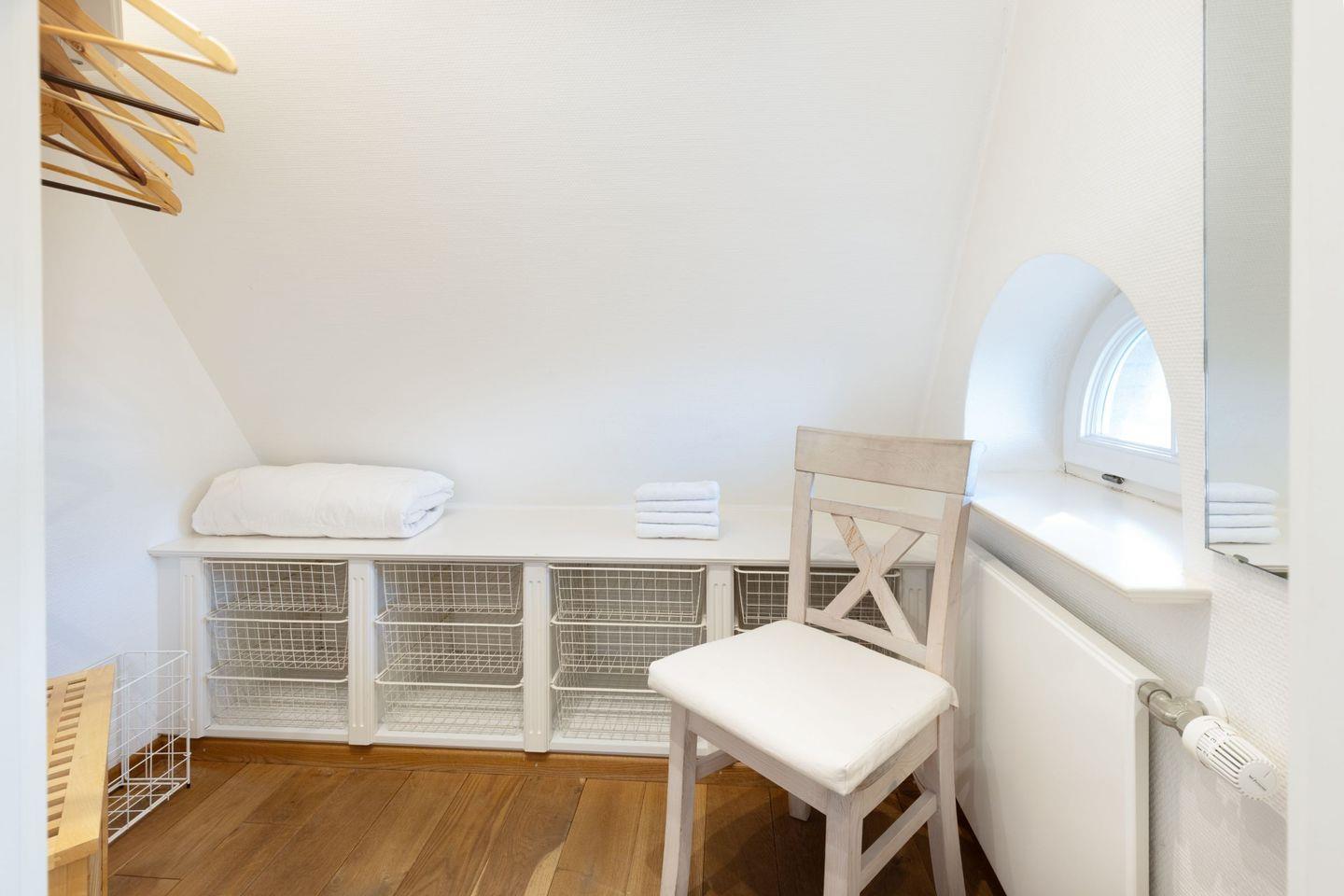 Im Obergeschoss befinden sich Ihre Schlafzimmer. Alle Schlafzimmer sind mit Bad en Suite. Das große Schlafzimmer im ersten Stock hat eine zusätzliche Sonnenterrasse mit Strandkorb.