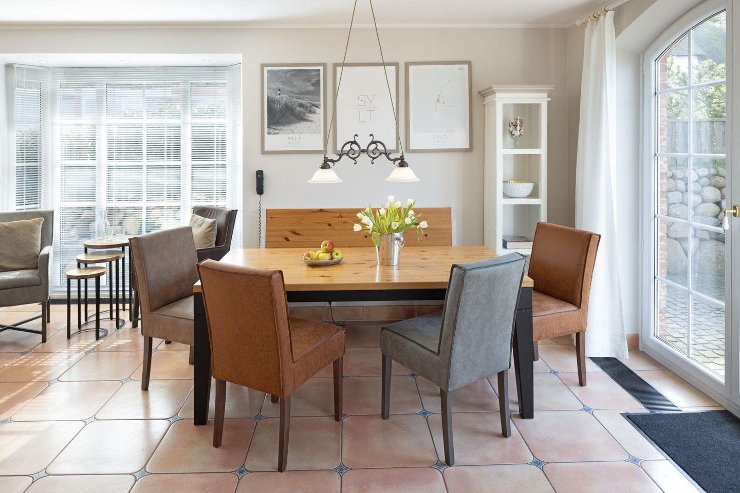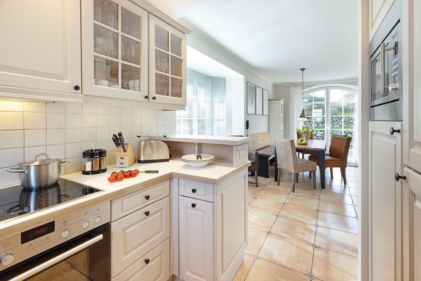 Ein exklusives, reetgedecktes Haus mit Doppelgarage in sonnenverwöhnter Lage erwartet sie. Sie haben ein großes Wohnzimmer mit Übergang zum Esszimmer mit angeschlossener Küche.