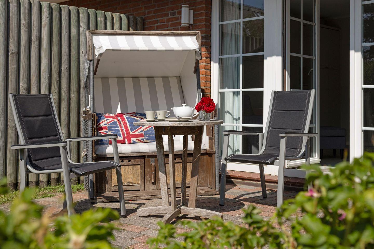 Gartenmöbel und Strandkorb stehen Ihnen saisonal begrenzt zur Verfügung.