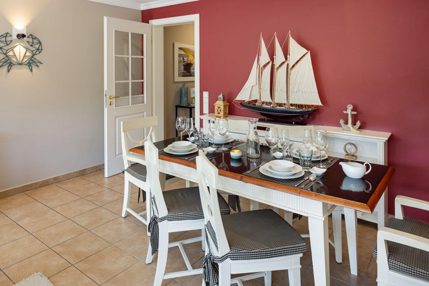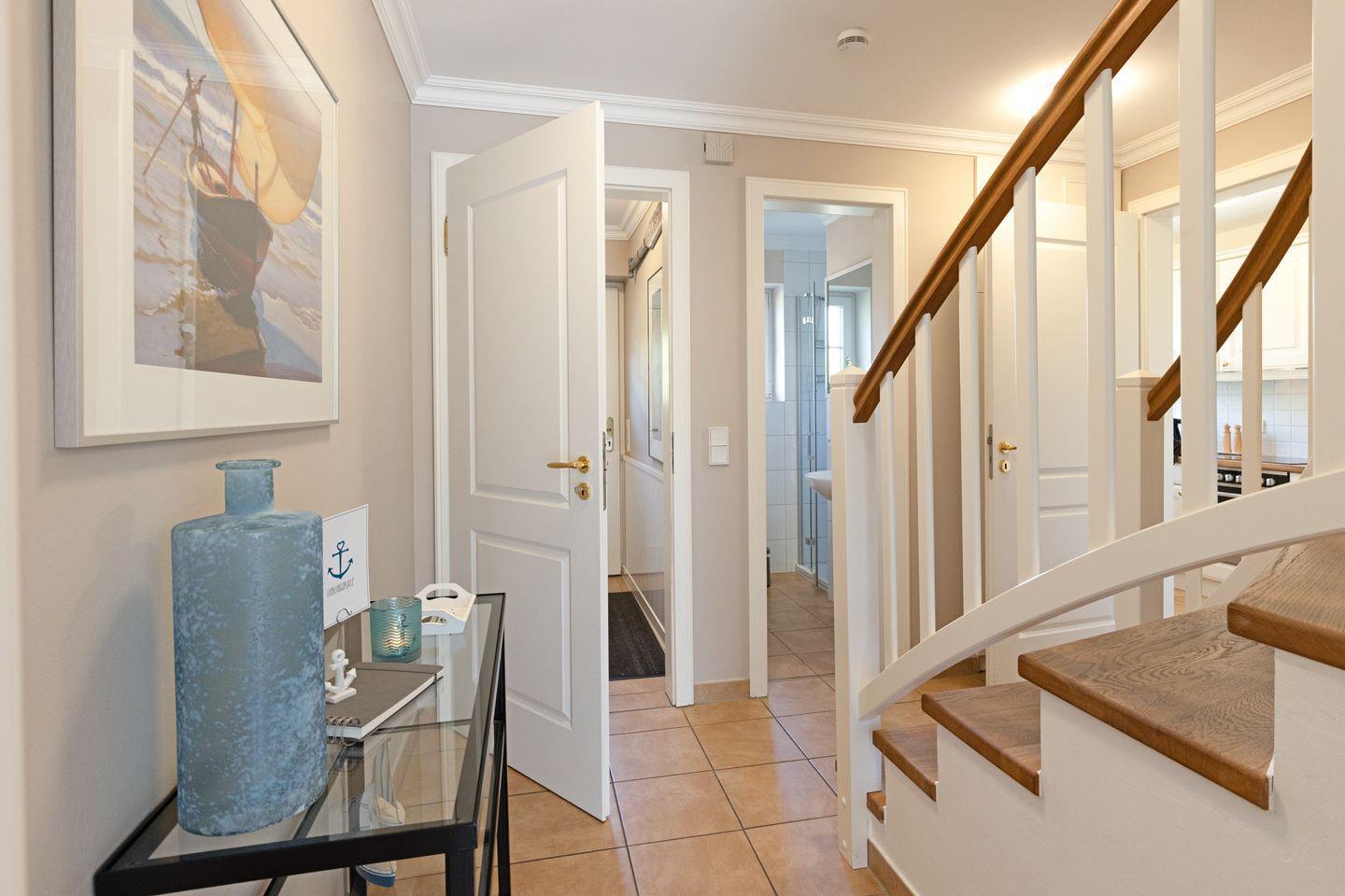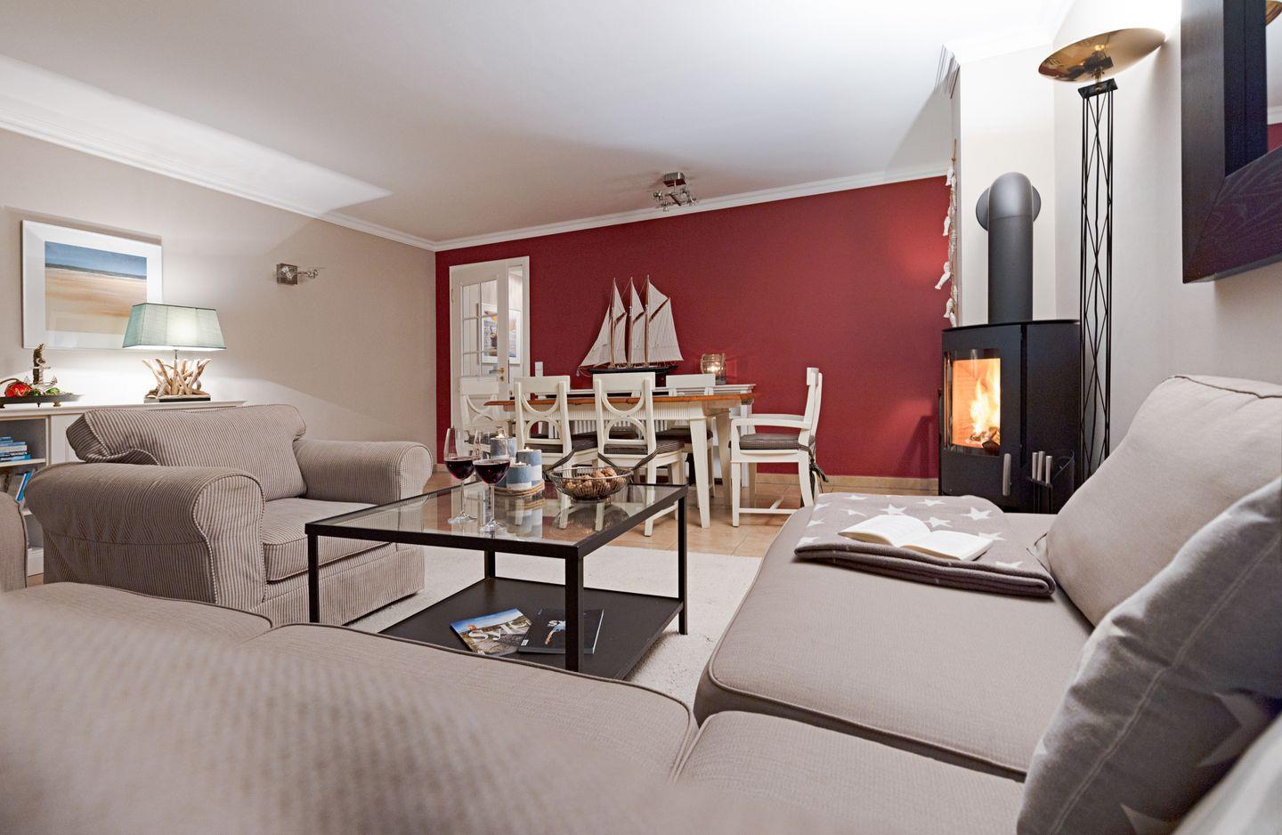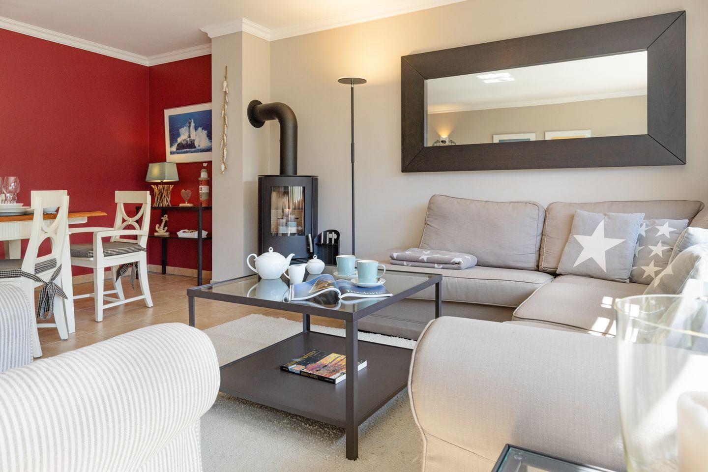 Alle Wohn- und Schlafräume verfügen über einen Fernseher. Die moderne und geschmackvoll aufeinander abgestimmte Einrichtung lädt Sie und Ihre Familie zum Erholen, Genießen und Verweilen ein. Das große Wohnzimmer mit Essbereich hat einen Terrassenzugang über die gesamte Breite Ihres Ferienhauses nach Süden.