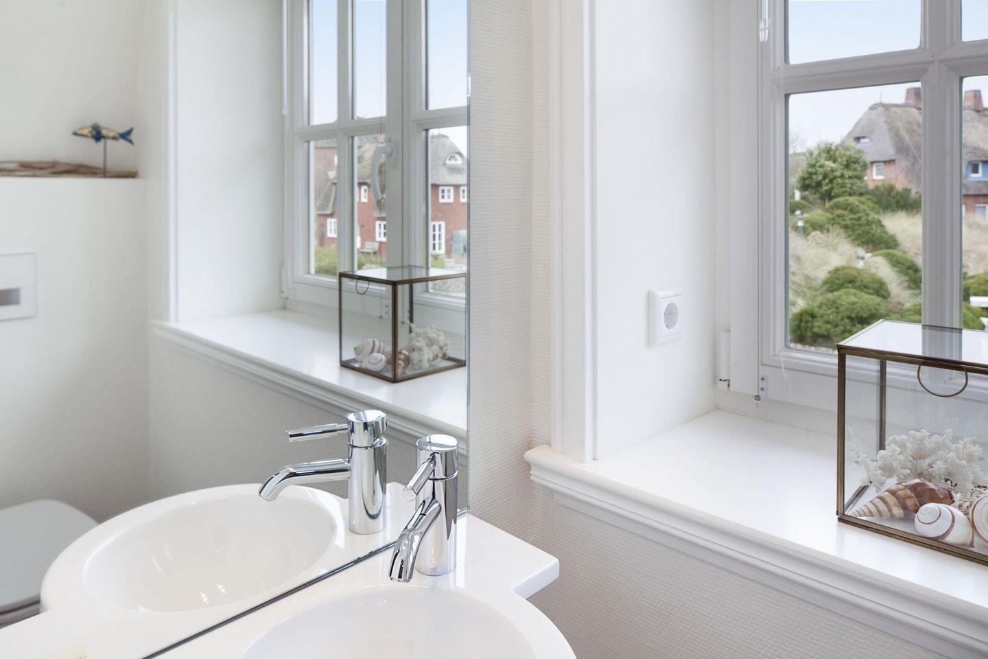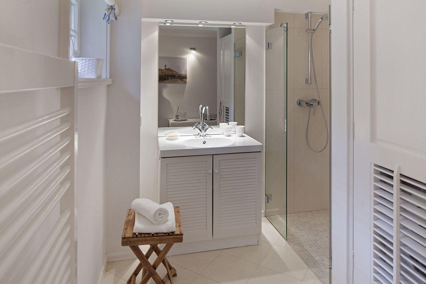 Im 1 Obergeschoss angekommen, unterteilt sich dies in zwei komfortable Schlafzimmer mit Doppelbetten sowie ein Badezimmer mit Dusche.