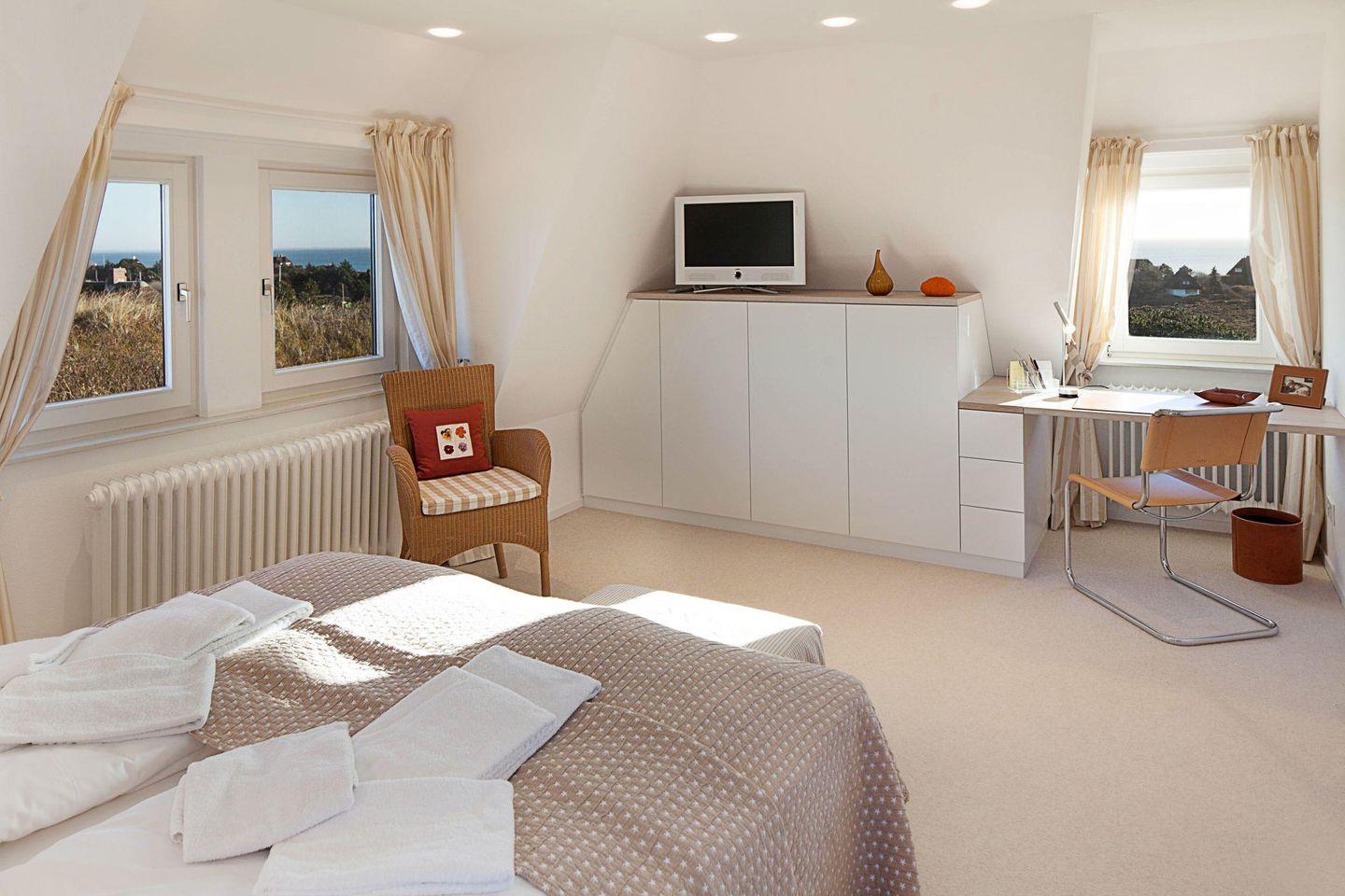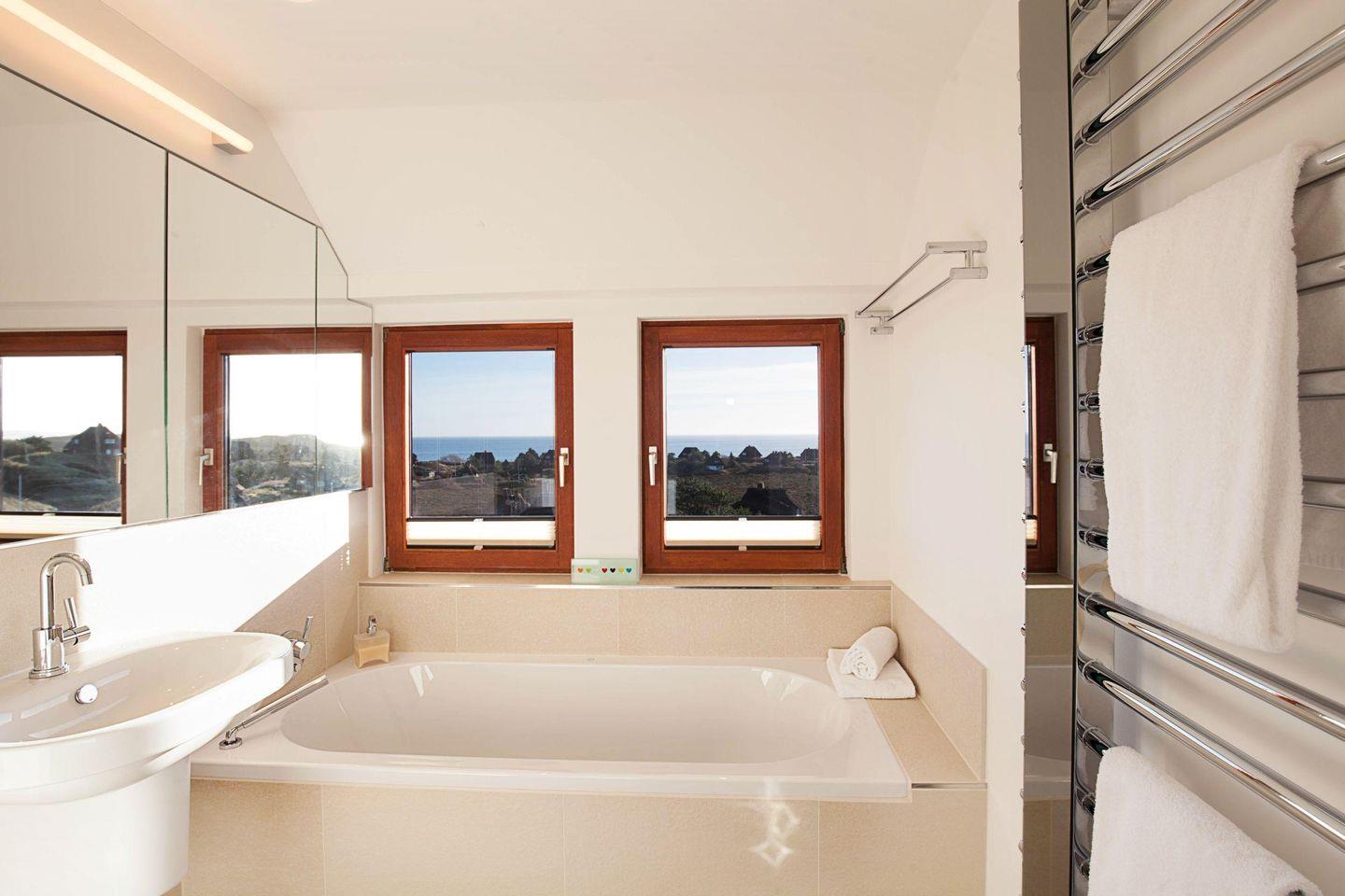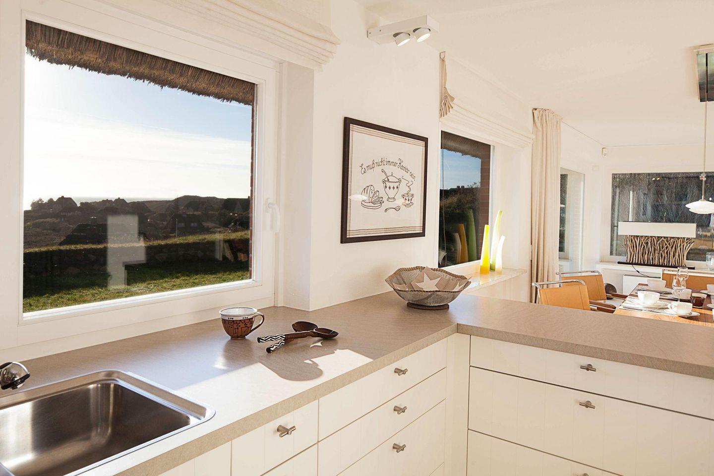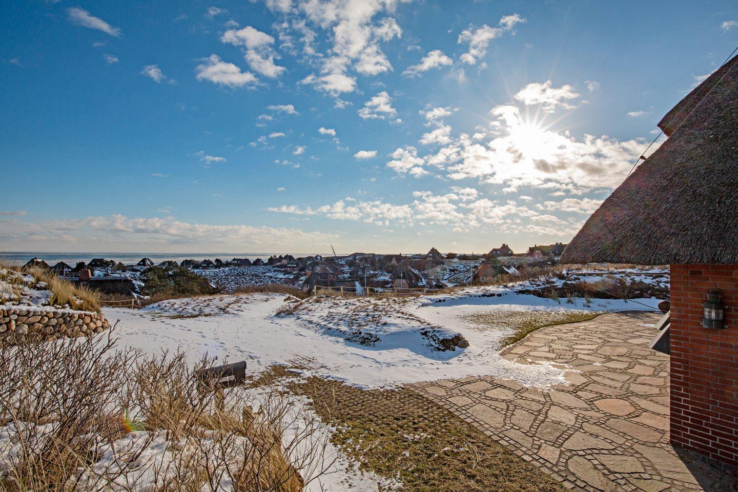 Der Name Ihres Feriendomizils ist wörtlich zu nehmen: Es steht erhöht in der Westerheide und bietet einen fantastischen Seeblick und Rundumblick über die Lister Dünen- und Heidelandschaft. Weite Horizonte, Dünen und Entspannung unter Reet. Genießen Sie den Meerblick von der herrlichen Terrasse aus.