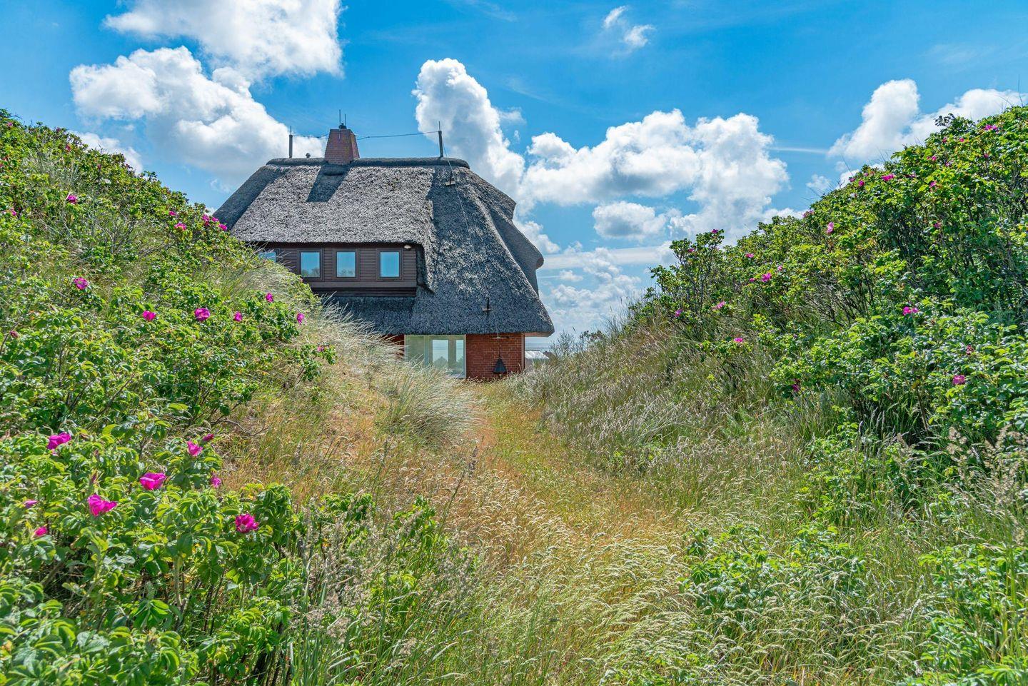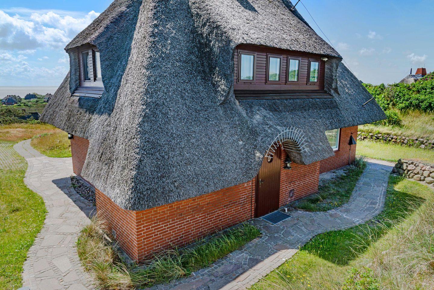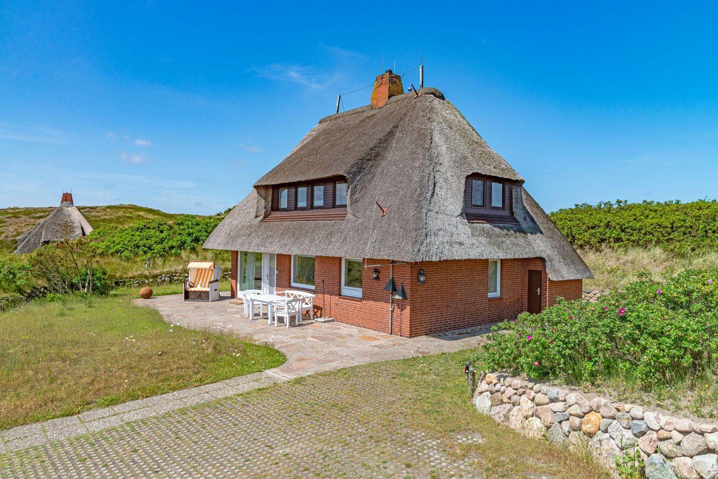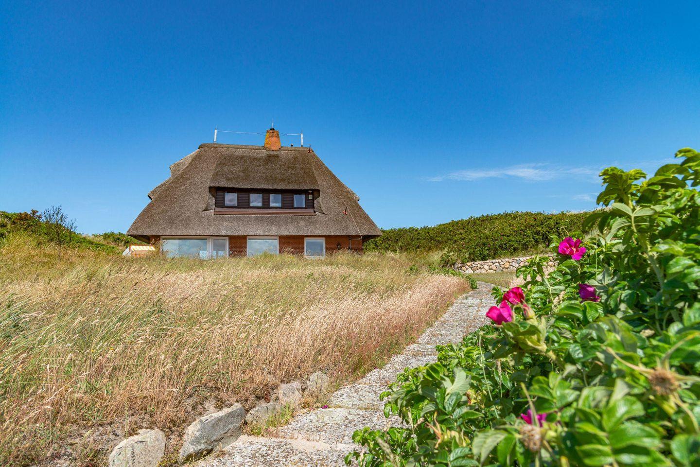 Ferienhaus unter Reet für bis zu vier Personen mit fantastischem Blick auf Wattenmeer sowie Nordsee und Rundumblick weit über die Lister Dünen- und Heidelandschaft.