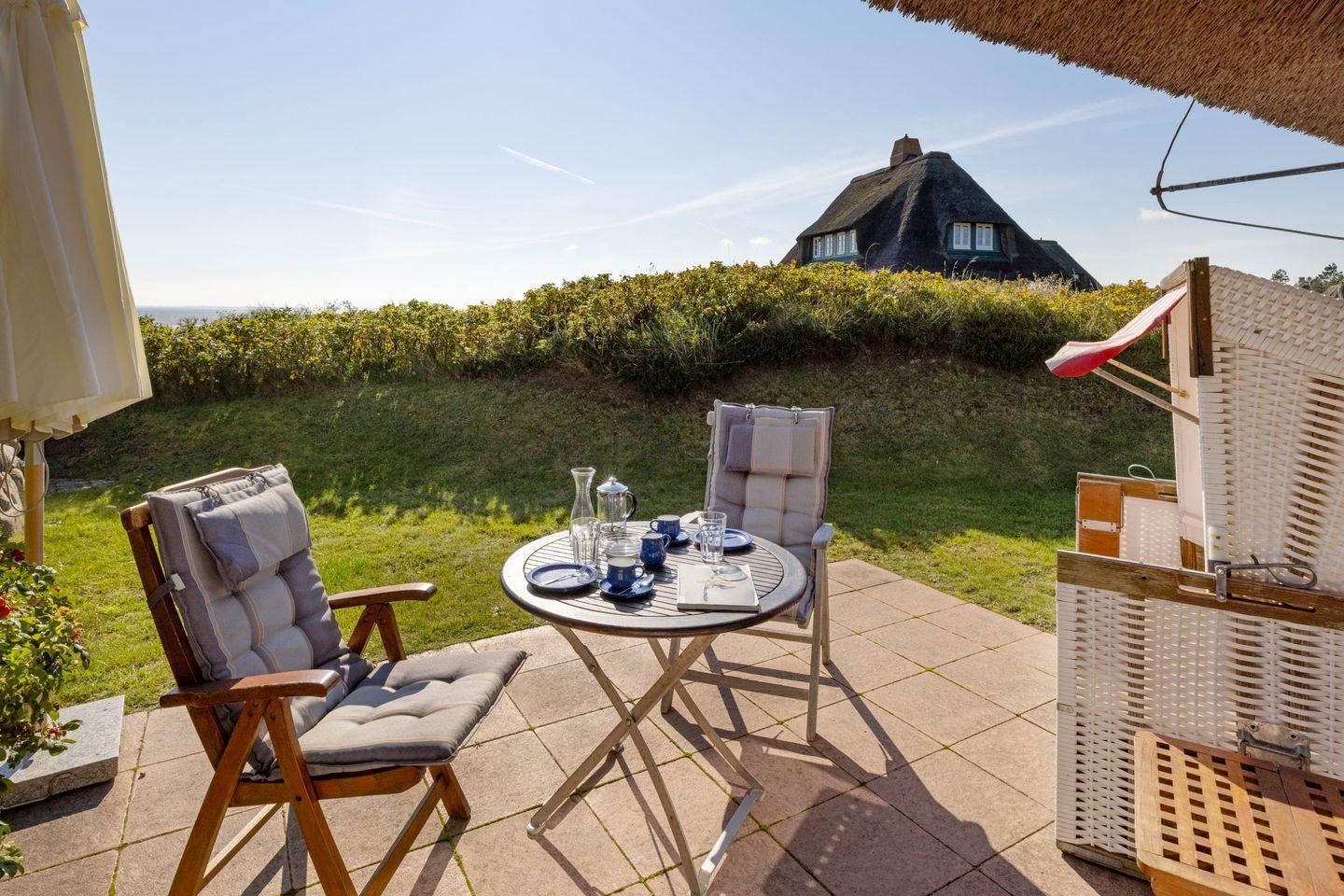 Schönes Feriendoppelhaus unter Reet mit Garten und wunderschönen Meerblick für bis zu vier Personen.