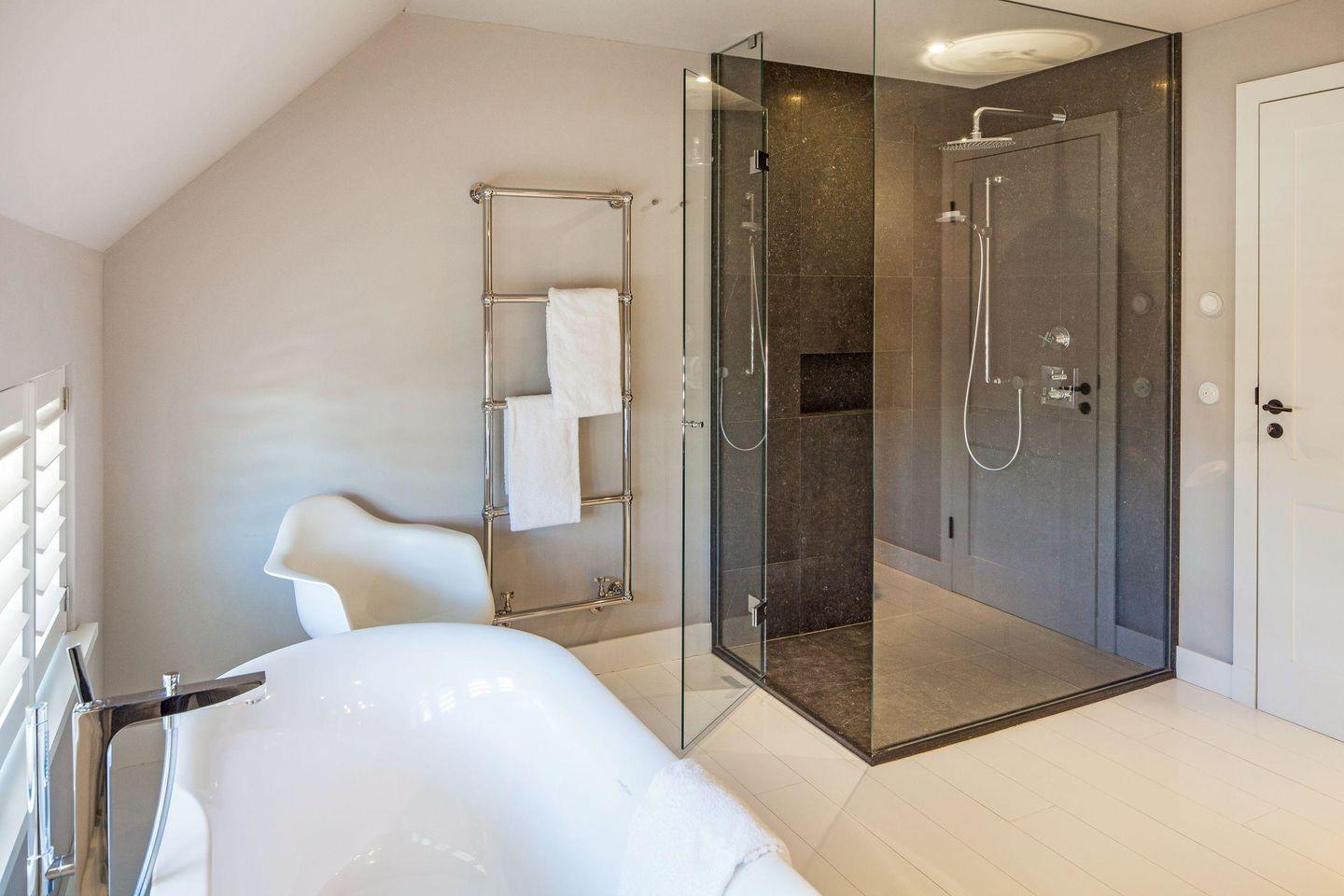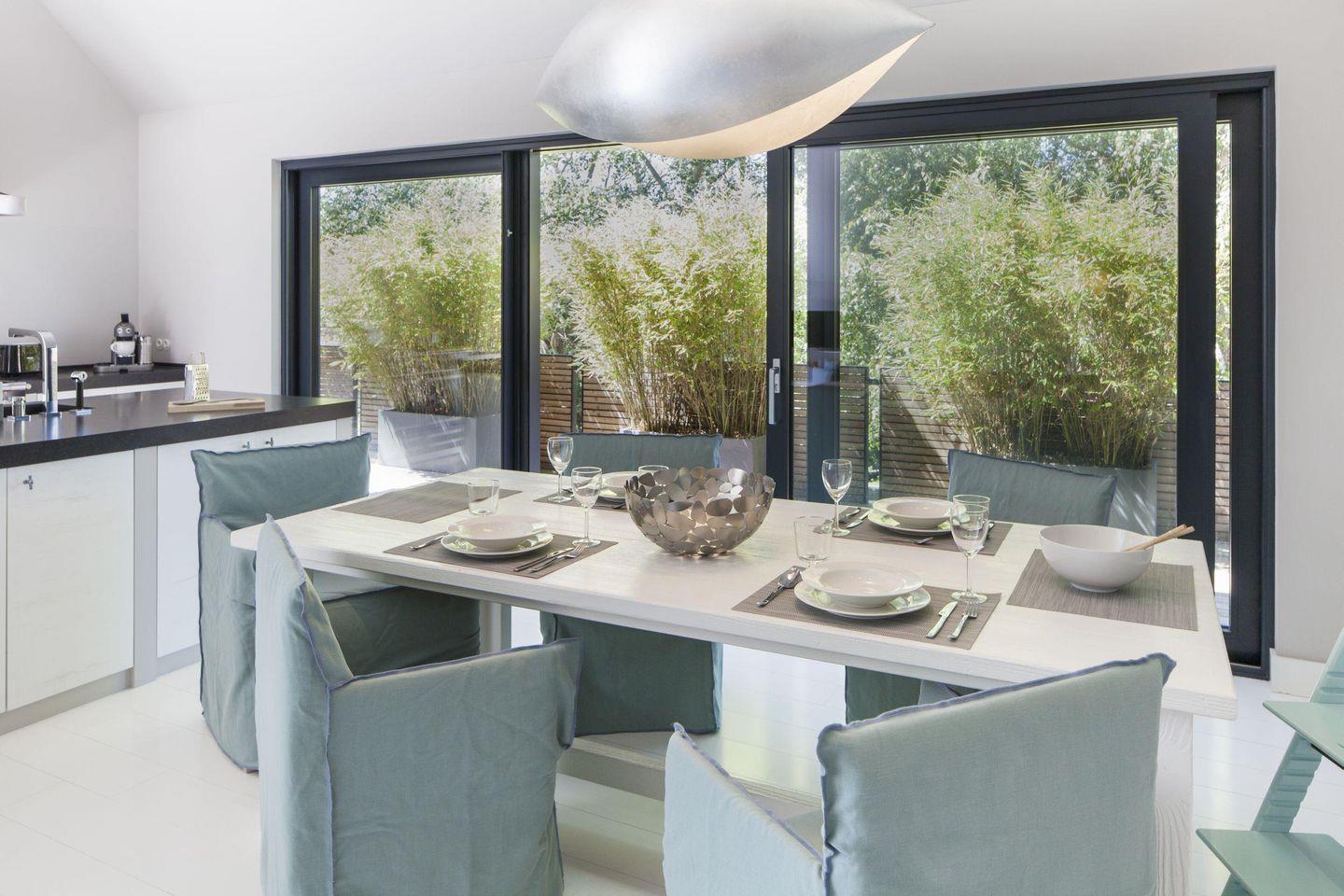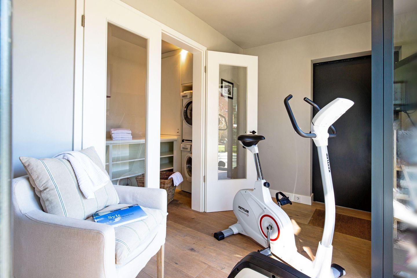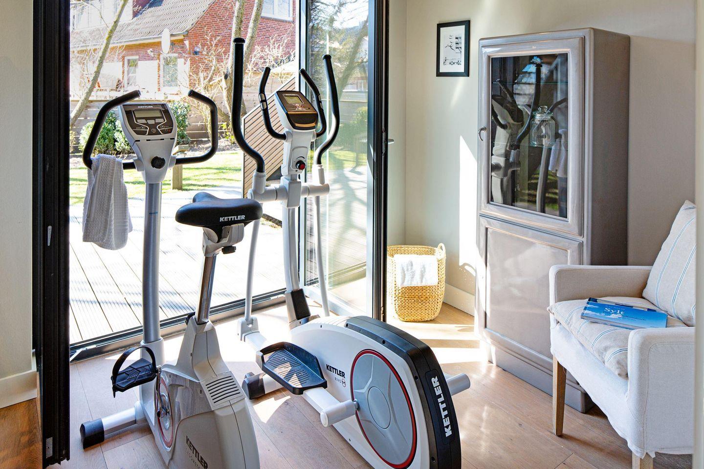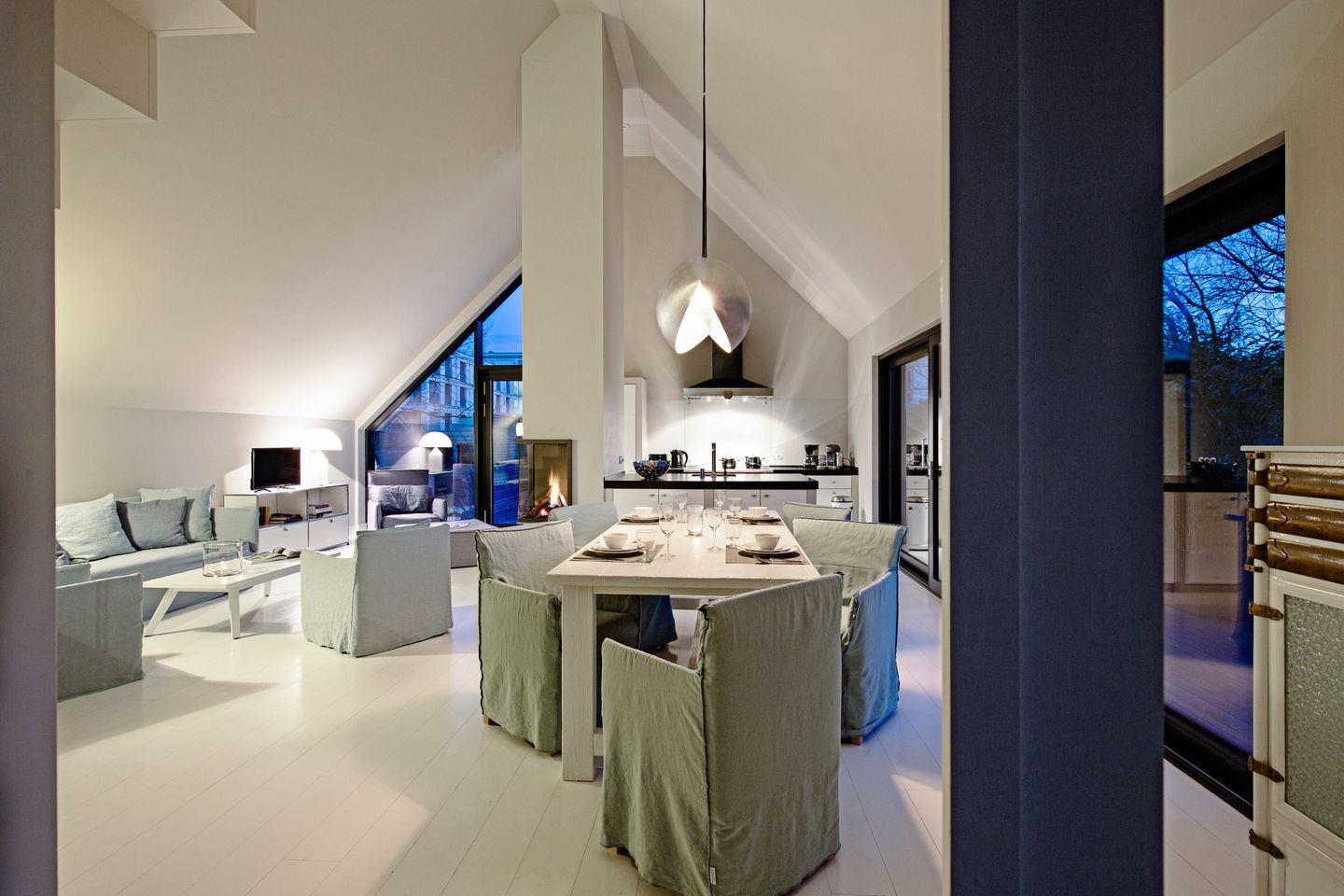 Eine Schlafcouch ist zusätzlich im Wohnzimmer vorhanden. Zwei Bäder, ebenfalls in der 1. Etage - eines mit freistehender Wanne - und Dusche, die nicht einsehbare Terrasse, sowie ein umfangreicher Fitnessbereich ergänzen dieses außergewöhnliche Feriendomizil.