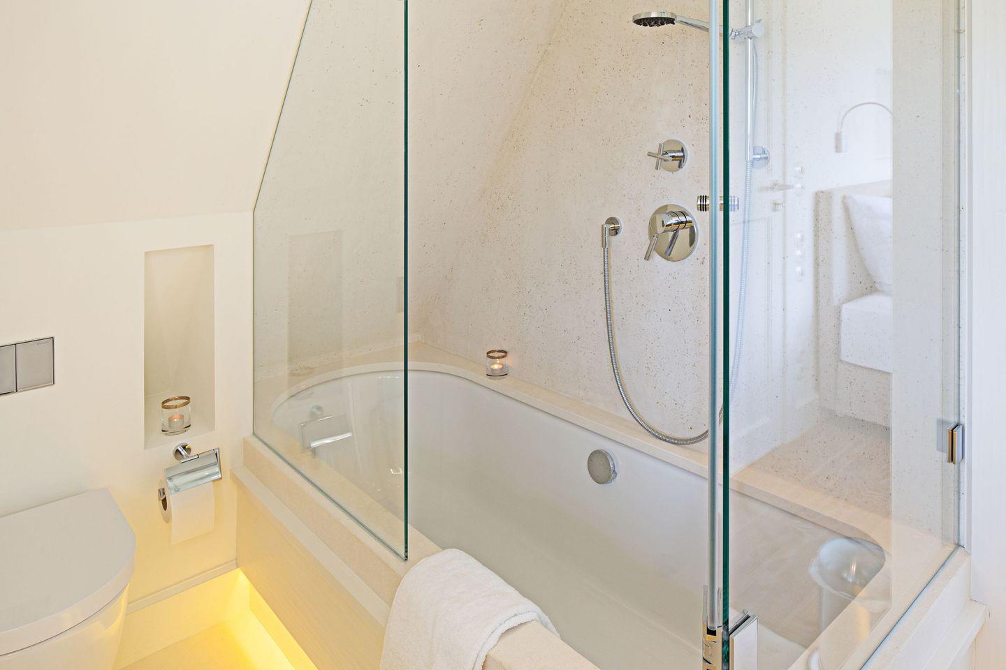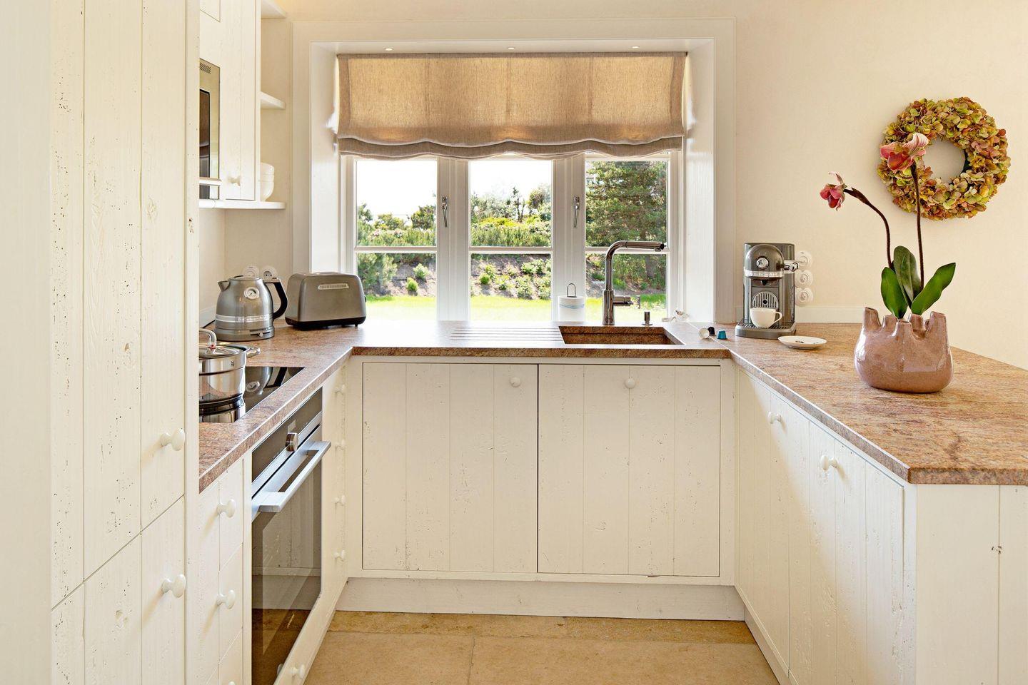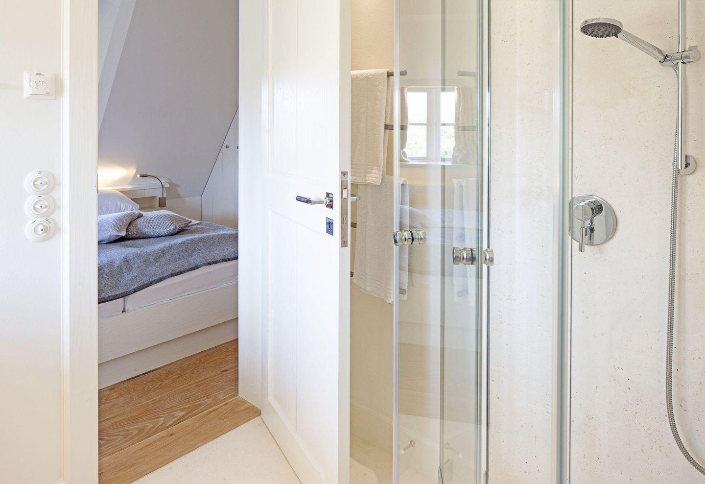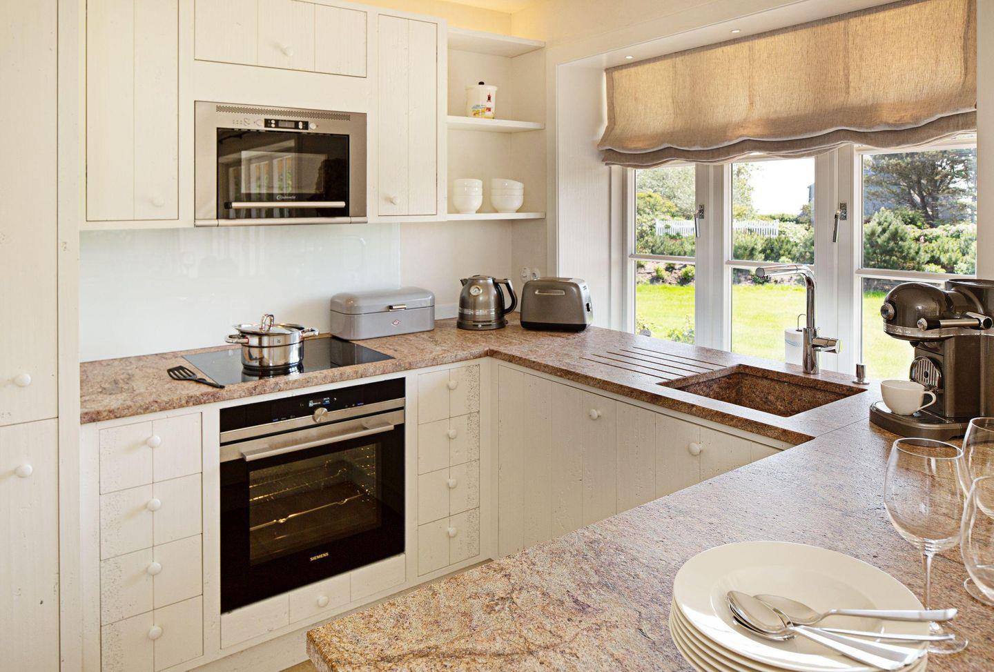Das EG, im Beachflair gestaltet, bietet mit Gaskamin, offener Landhausküche und dem gemütlichen Fernseh- und Lesezimmer ausreichend Möglichkeiten zur individuellen Nutzung. In der ersten Etage befinden sich drei vollklimatisierte Schlafzimmer mit Doppelbetten und zwei Badezimmer. Ein zusätzliches Bad steht Ihnen im EG zur Verfügung. Vom Essbereich aus gelangen Sie auf die große Sonnenterrasse mit Meerblick. Der Garten geht nahtlos in den Heide-Naturpark über. Großzügig und kuschelig zugleich – ein Objekt, einfach unverwechselbar! Der Oststrand ist 100 m entfernt. Einzelgarage mit Ladestation für Elektrofahrzeuge (Wallbox) sowie Waschmaschine und Trockner sind vorhanden.