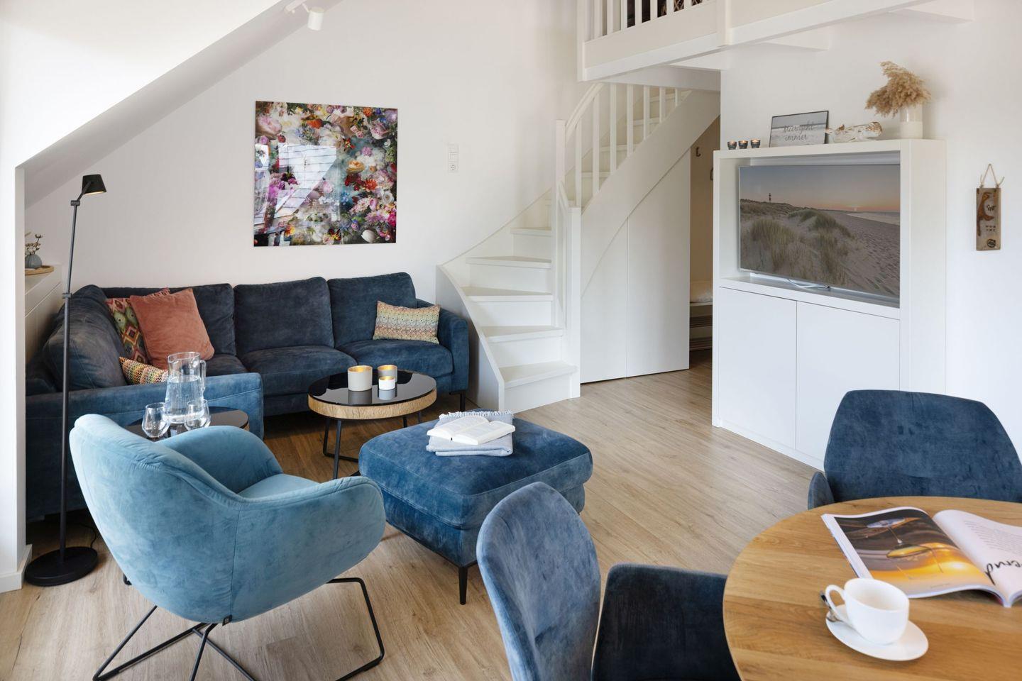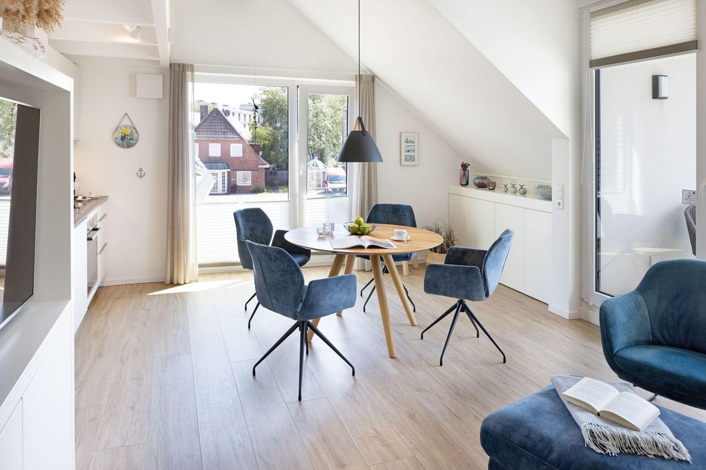 Es liegt nur etwa 200m vom Oststrand entfernt. Der Lister Markt mit Gastronomie, Läden, Konditorei sowie einem EDEKA liegt um die Ecke. Auch der Lister Hafen mit Shoppingmöglichkeiten und Gastronomie lässt sich mit einem kurzen Spaziergang über den Deich in 15 Minuten zu Fuß erreichen. Das Appartement bietet für 4 Personen Platz auf 80m2. Mit dem Wohnraum, einer offenen Küche und großer Schlafgalerie stehen gemütlichen Abenden oder Tagen bei „Schietwetter“ nichts im Weg.