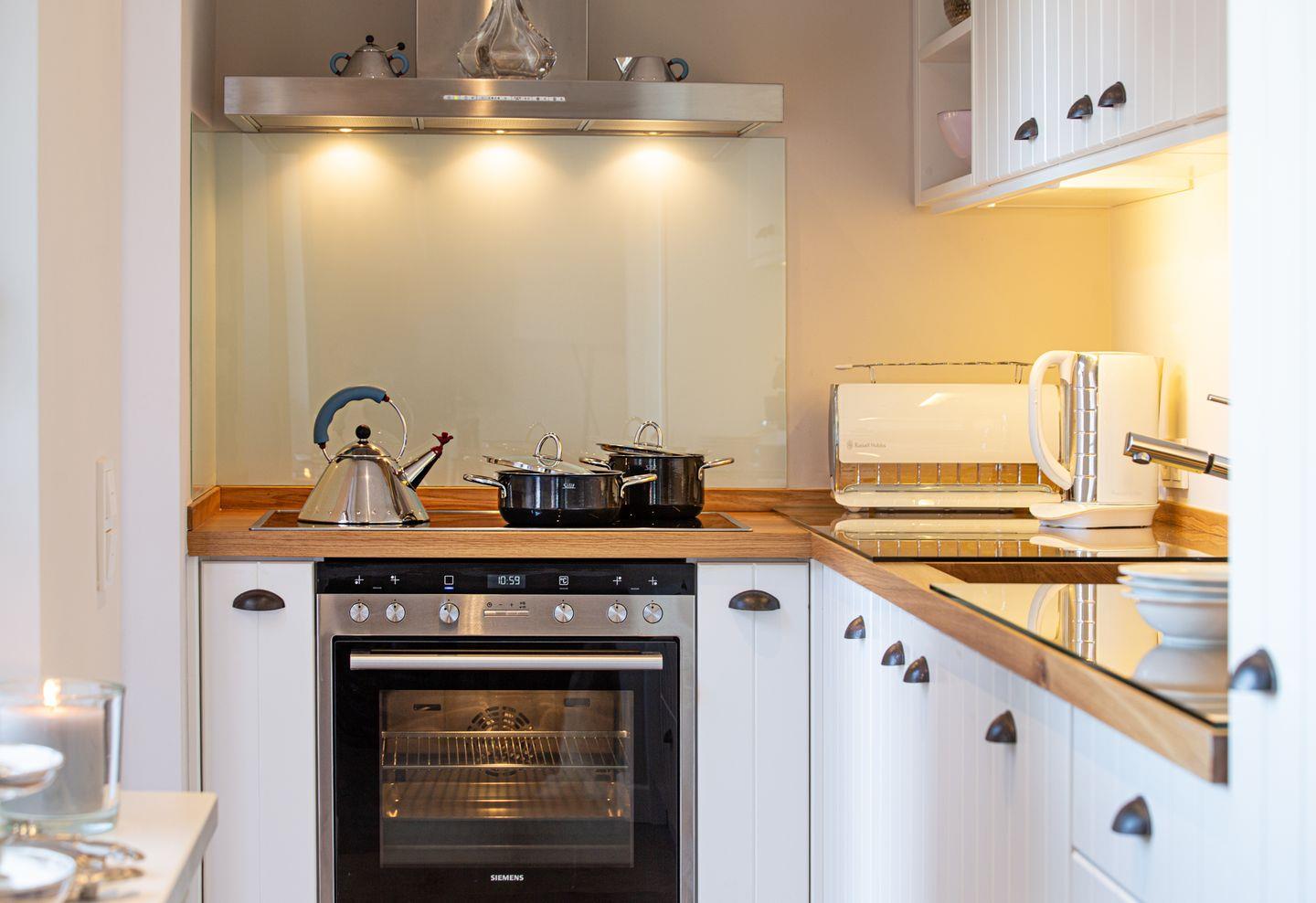 Erleben Sie den farbenfrohen Sonnenuntergang von der windgeschützten Holzterrasse. Sie können Ihr Auto an der hauseigenen Wallbox laden.