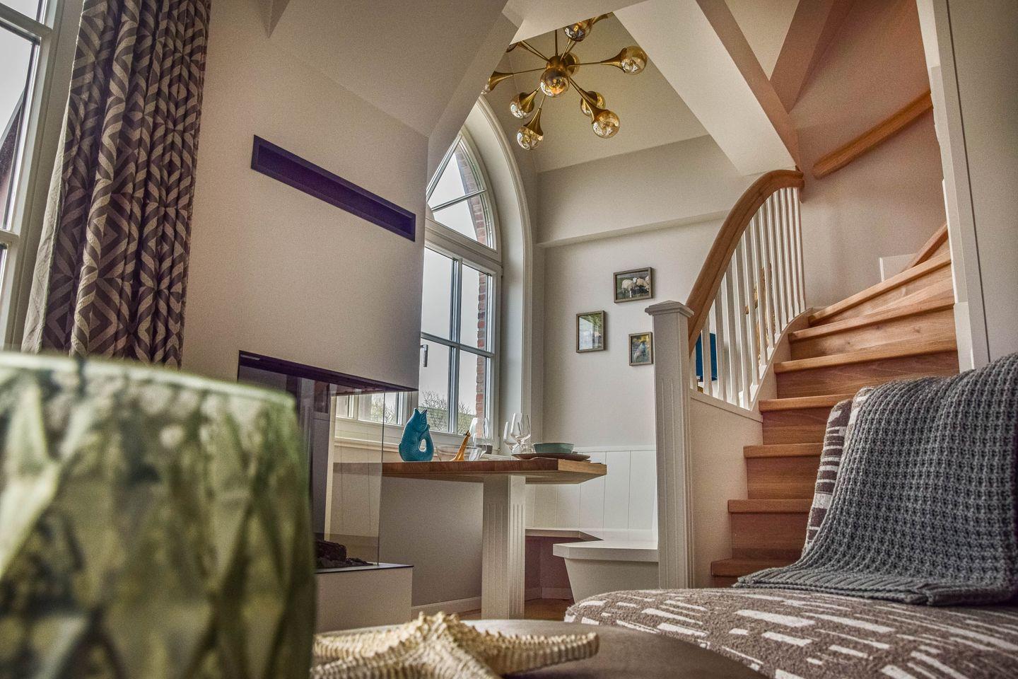 Diese exklusive Maisonette-Ferienwohnung für vier Personen ist nur einen Steinwurf vom Strand des Lister Beckens entfernt: Mit zwei Schlafzimmern und zwei Bädern bietet sie den idealen Rahmen für Ihren rundum relaxten Familienurlaub. Natürlich gibt es schnelles WLAN und TV in jedem Raum, aber – wetten? – die meiste Zeit werden Sie fasziniert nach draußen blicken. Das große Panoramafenster im Kapitänsgiebel legt Ihnen die See vor List zu Füßen. Selbst ins himmlisch bequeme Bett begleiten Sie das Meer und die Gezeiten; von einem der Schlafzimmer können Sie sogar aufs Ellenbogenbecken schauen. Und natürlich genießen Sie auch auf Ihrer privaten Sonnenloggia zum Soundtrack von Möwen und Wellenrauschen diese hinreißende Aussicht.