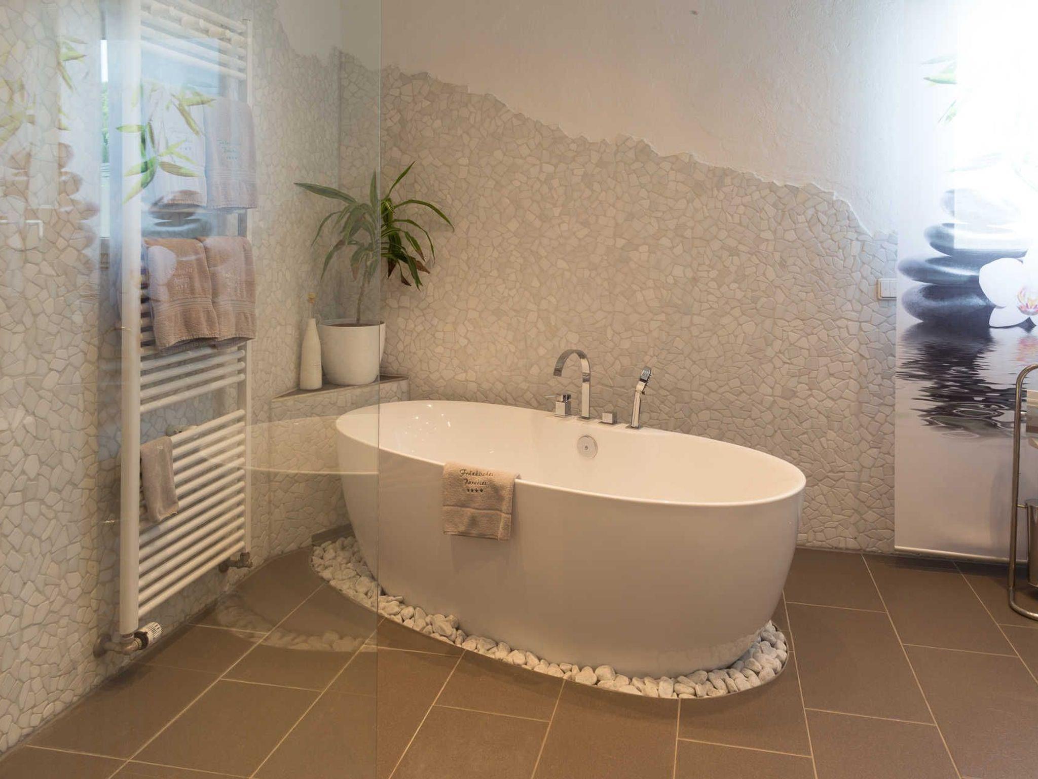Im neuen Badzimmer finden Sie alles, was Sie zum frisch machen benötigen: Zwei Waschbecken, WC, freistehende Badewanne, Walk-in-Dusche und Handtücher stehen dort für Sie bereit. Gerade bei einer Belegung mit mehreren Personen ist mit Sicherheit das separate Gäste-WC ein kleiner Luxus.