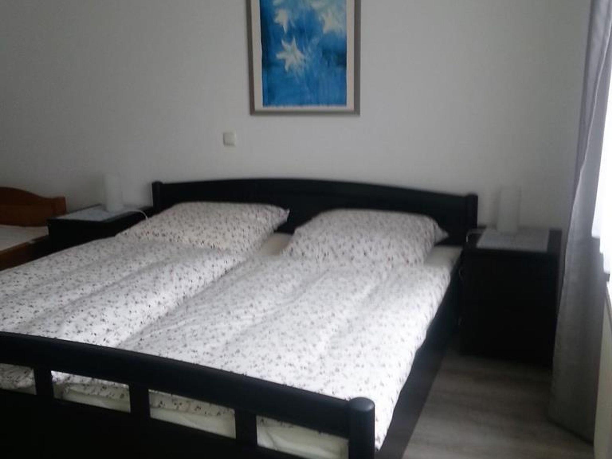 Ferienwohnung mit ebenerdigem Eingang, einem 3-Bettschlafzimmer, Wohnzimmer, Kücher mit Essplatz, Bad sowie Flur mit großem Einbauschrank.