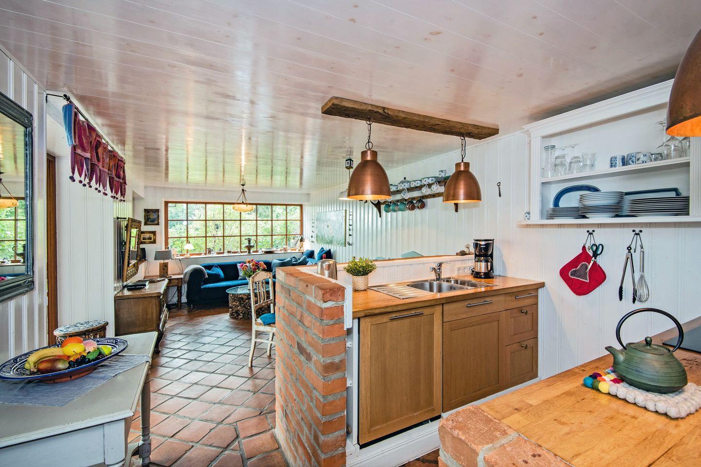 Ideal für Familien! Südexponiert mit Blick auf den Kölpinsee liegt verborgen und phantasieumwoben ein ganz eigenes Ferienhaus. Es sind die tanzenden Farben und die Geschichten erzählenden Details, die das Drinnen und Draußen so lebendig machen und die Besucher so frei für viele neue Gedanken auf dem Weg der Erholung. Im Herzen wärmt ein Lehmofen, dessen Feuer den kältesten Oststürmen trotzt. Es gibt die Wahl: Einschlafen unter dem Wagenhimmel oder Aufwachen mit Blick auf den See. Eine Wohltat bei Hitze oder Sommerregen: eine große überdachte Holzterrasse mit mehreren Sitznischen. Ein wilder‚ Waldgarten’ empfängt den, der sich mit Buch und Gartenstuhl darin bewegt.