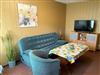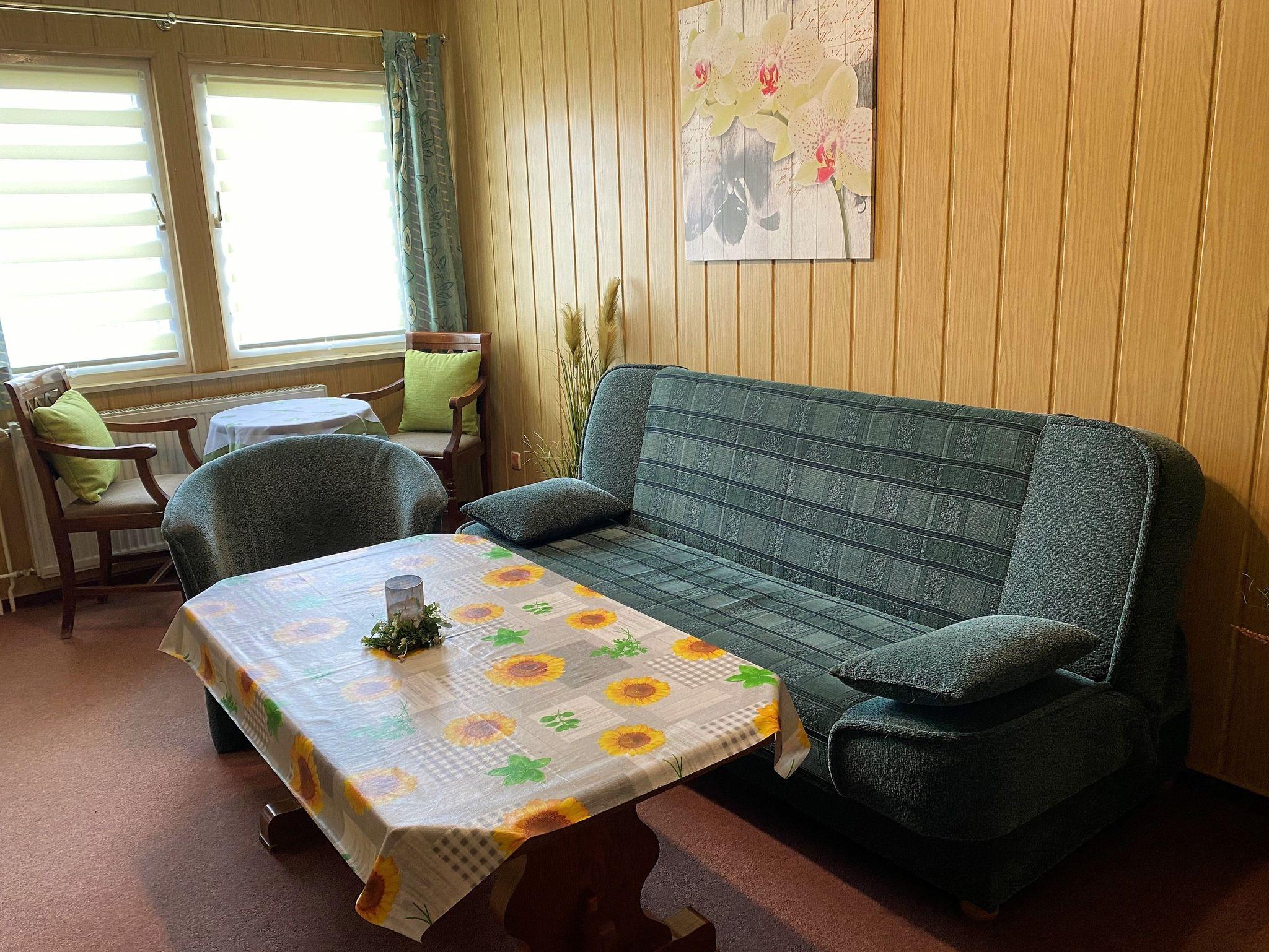 - Wohnraum mit Couch, Sessel, Sideboard, TV, Radio