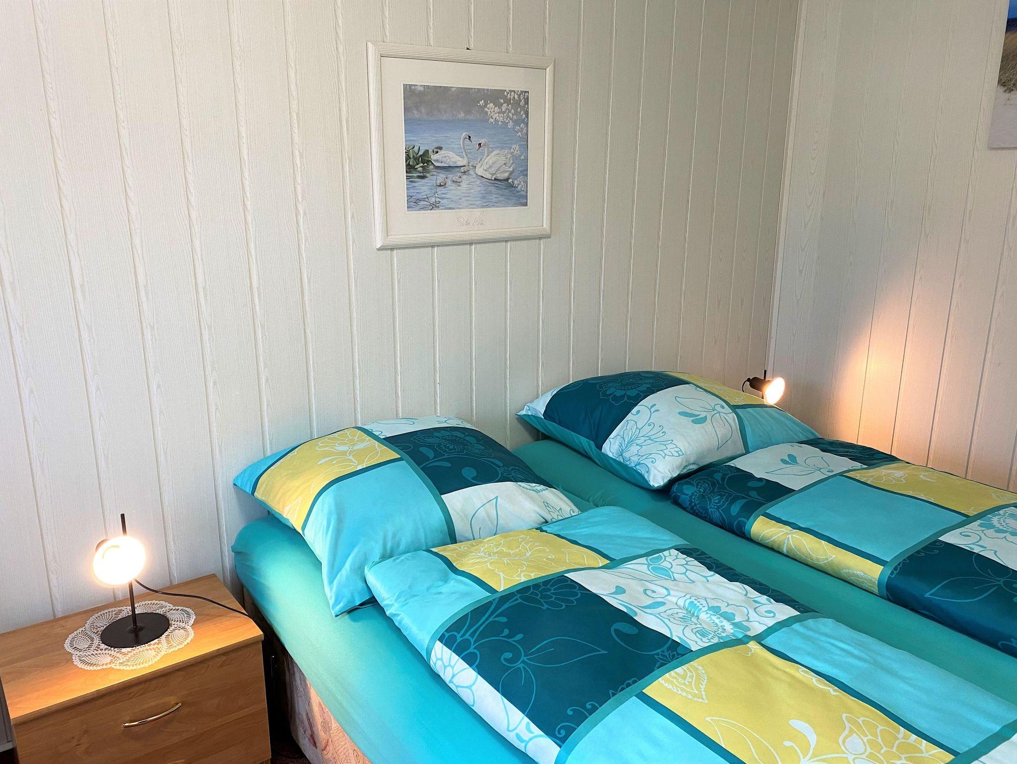 - Schlafraum mit Doppelbett, Kleiderschrank und Nachtkonsolen