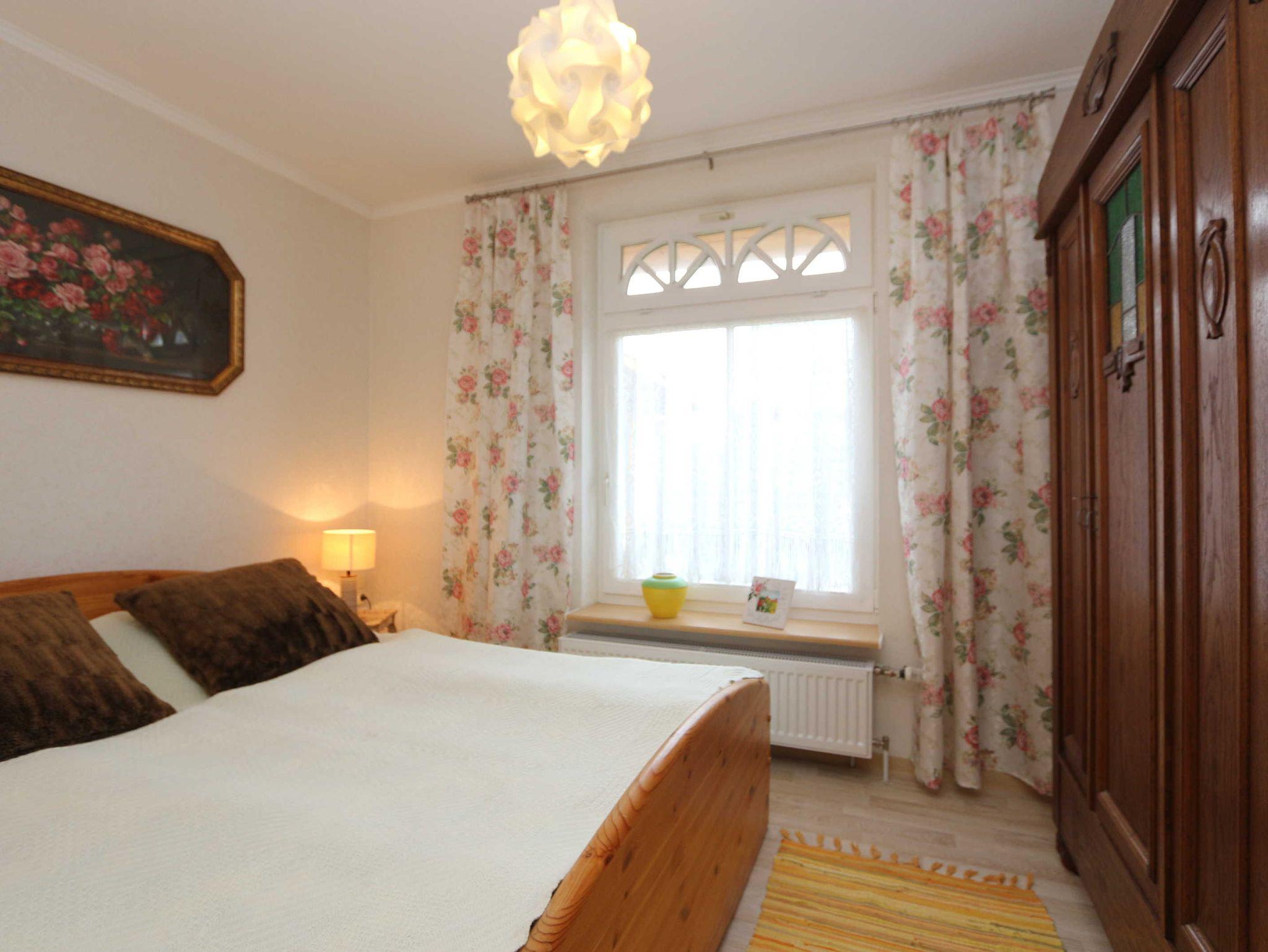 • Das Schlafzimmer verfügt über ein Doppelbett (1,80 x 2,00m) und einen großen Kleiderschrank.