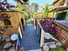 • Der Garten wurde mit einer Sitzgruppe aus deutscher Eiche erweitert, wo ca. 16 Personen Platz finden. Der Tisch hat ein Gewicht von ca. 600 kg. Je eine lange Bank hat ein Gewicht von ca. 300 kg.