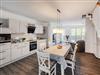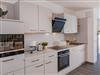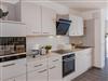 Im Erdgeschoss befindet sich eine offene, helle Küche mit Komplettausstattung (Backofen, Cerankochfeld, Mikrowelle, Wasserkocher, Kaffeemaschine, Toaster, Spülmaschine, Kühlschrank mit separatem Gefrierabteil) sowie einem großen Esstisch mit sechs Stühlen. Von dort gelangen Sie in den gemütlichen Wohnbereich, der eine Couch, Sessel, einen Tisch und einen QLED-TV beherbergt. Ebenfalls im Erdgeschoss finden Sie ein Badezimmer mit ebenerdiger Dusche und WC.