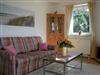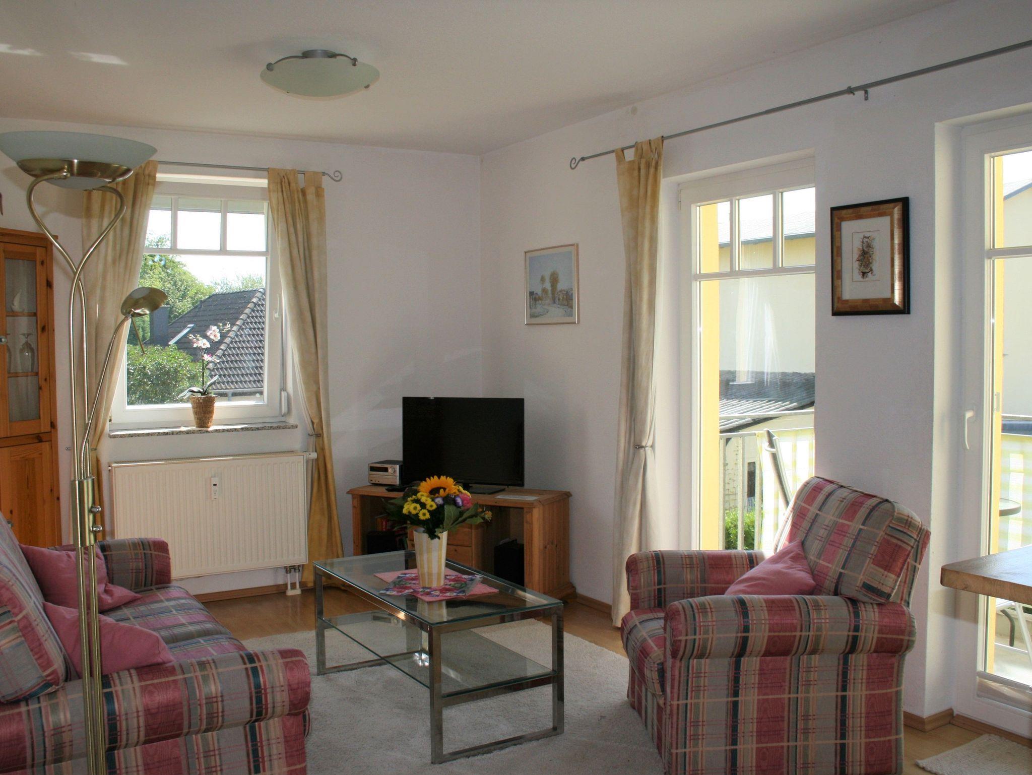 Im großzügigen Wohnzimmer mit einem gemütlichen Sofa und einem Sessel ist neben einer Essecke, einem Netflix-fähigem Sat-Flachbild-TV und einer Stereoanlage auch eine gut eingerichtete Einbauküche integriert. Sie ist mit Kühl-/Gefrierkombination, Geschirrspüler, Herd mit Cerankochfeld, Backofen und Mikrowelle ausgestattet. Alle üblichen Geschirr- und Küchenutensilien sind vorhanden. Der Balkon ist nach Süden ausgerichtet und lädt zum Sonnenbaden und Frühstücken ein.
