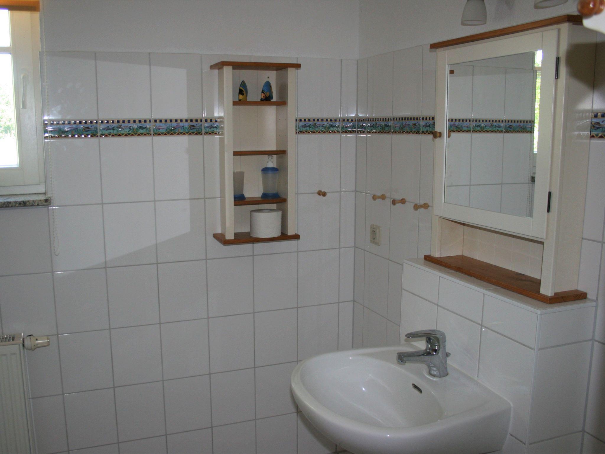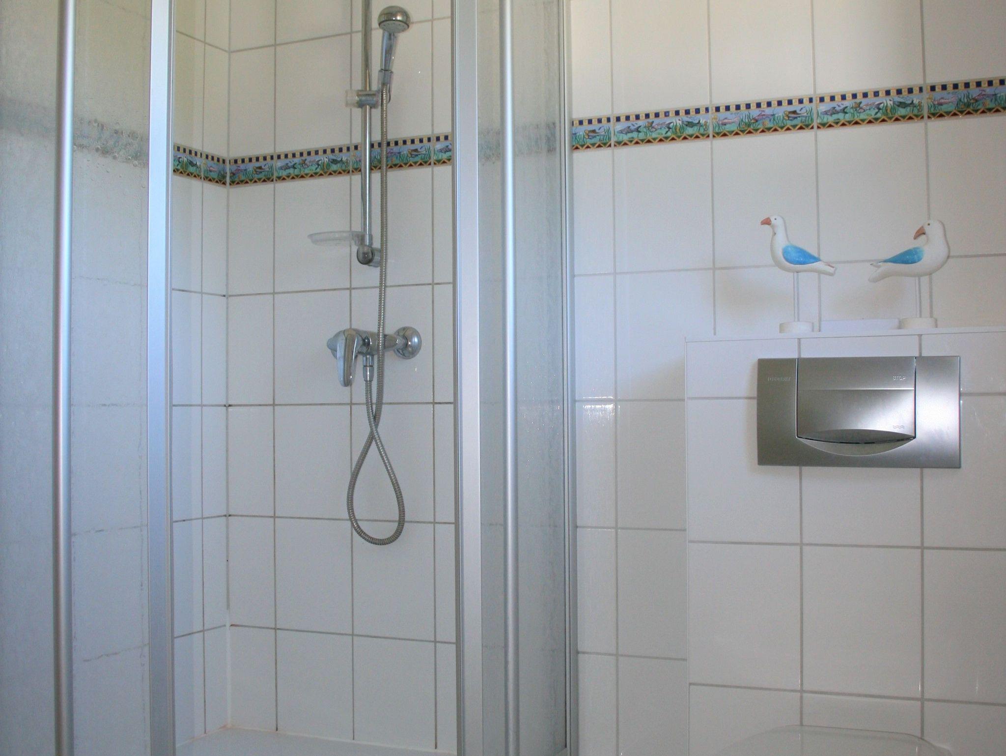 Von den beiden Schlafzimmern verfügt eines über ein großes Doppelbett, das zweite über zwei Einzelbetten. Rollläden zur Verdunkelung sind vorhanden. Das geräumige Duschbad ist maritim eingerichtet. Das Haus verfügt über kostenloses, schnelles Internet und einen schönen Garten mit Obstbäumen, Wäschespinne und Grillmöglichkeit, der von den Gästen genutzt werden kann. Auch ein kostenloser Pkw-Stellplatz und ein abschließbarer Fahrradschuppen sind vorhanden.