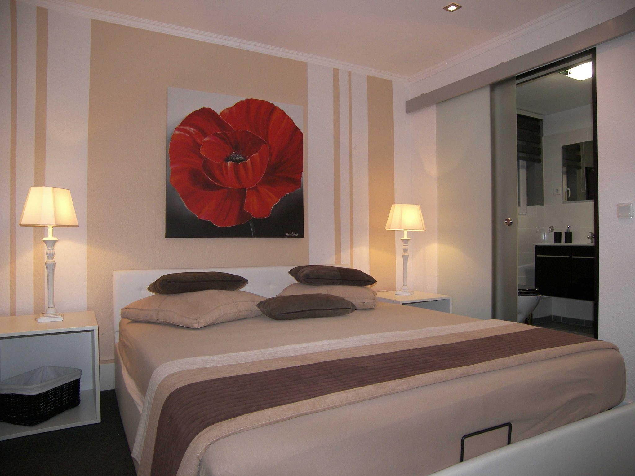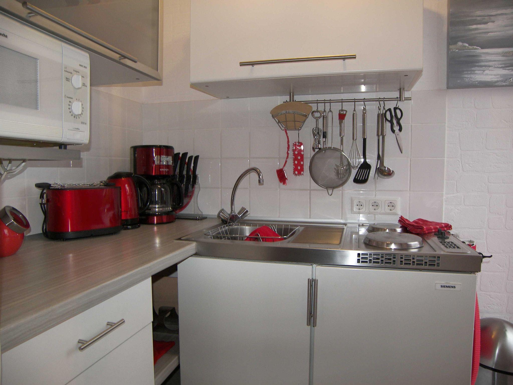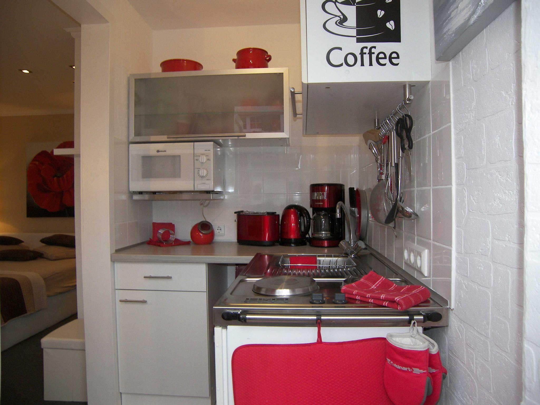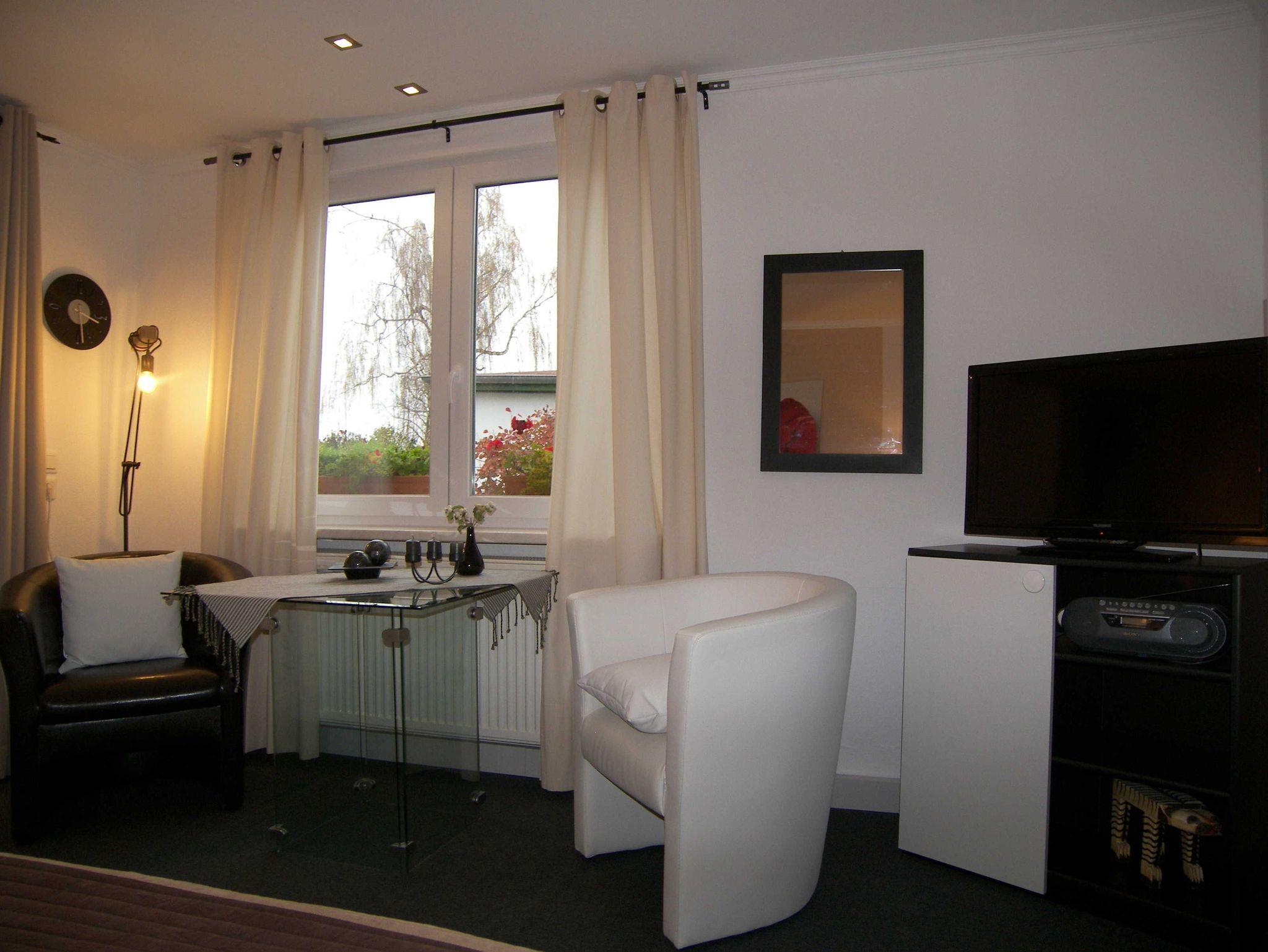Das stilvolle 1-Raum-Appartement im Bungalowstil bietet Ihnen auf einer Fläche von ca. 25qm einen kombinierten Wohn-Schlafbereich mit gemütlichem Doppelbett, Flat-TV und einem Esstisch für 2 Personen. Angrenzend befindet sich die kleine Küche mit 2-Plattenherd, Kühlschrank, Mikrowelle, Wasserkocher,Toaster & Kaffeemaschine.