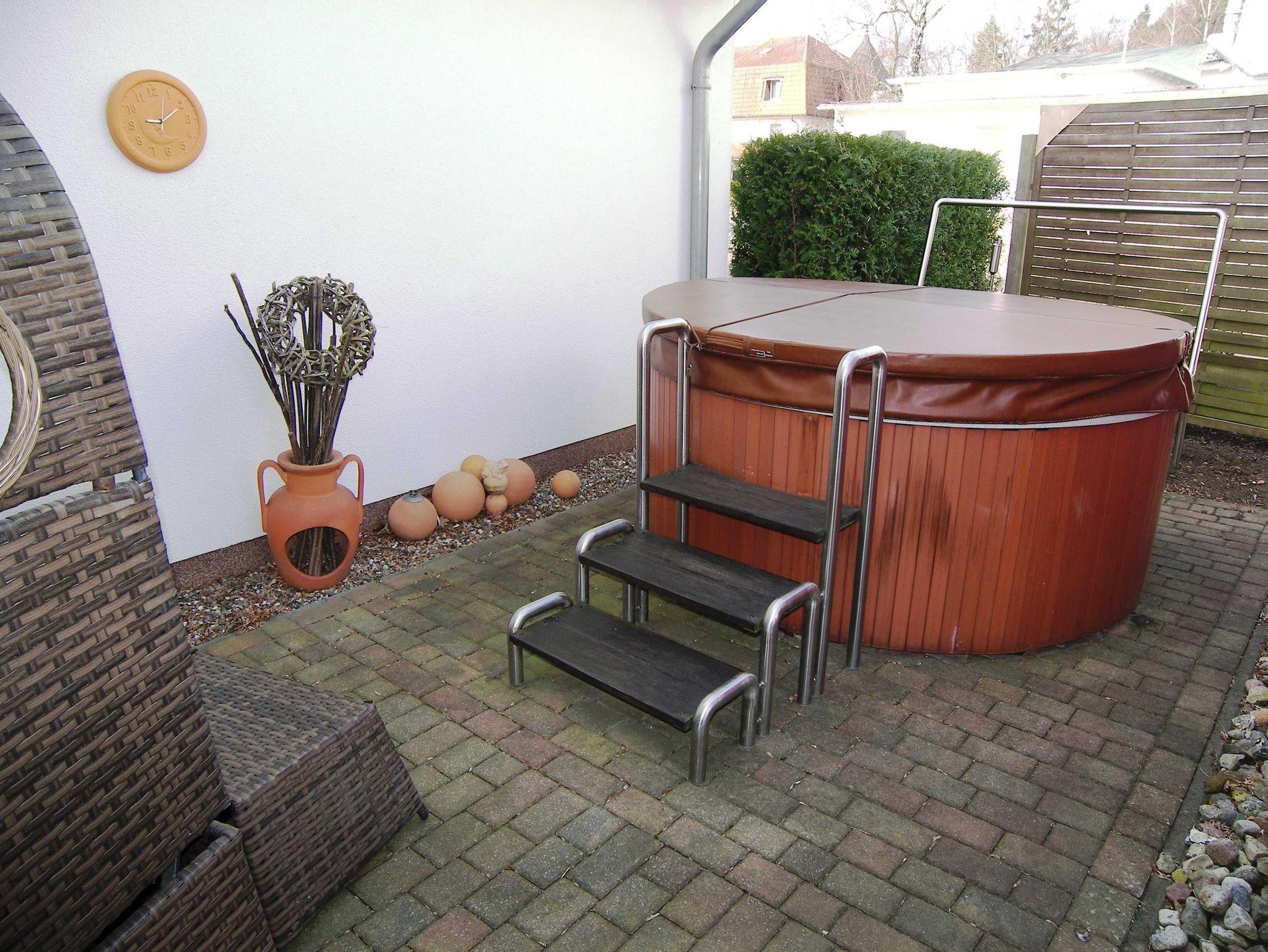 Auf der schönen, möbliertenTerrasse steht Ihnen ein Grill sowie ein Strandkorb im Garten zur Verfügung. Ein Parkplatz sowie W-LAN sind kostenfrei vorhanden. Die Sauna und der kleine Whirpool im Garten können auf Anfrage gegen Gebühr genutzt werden.