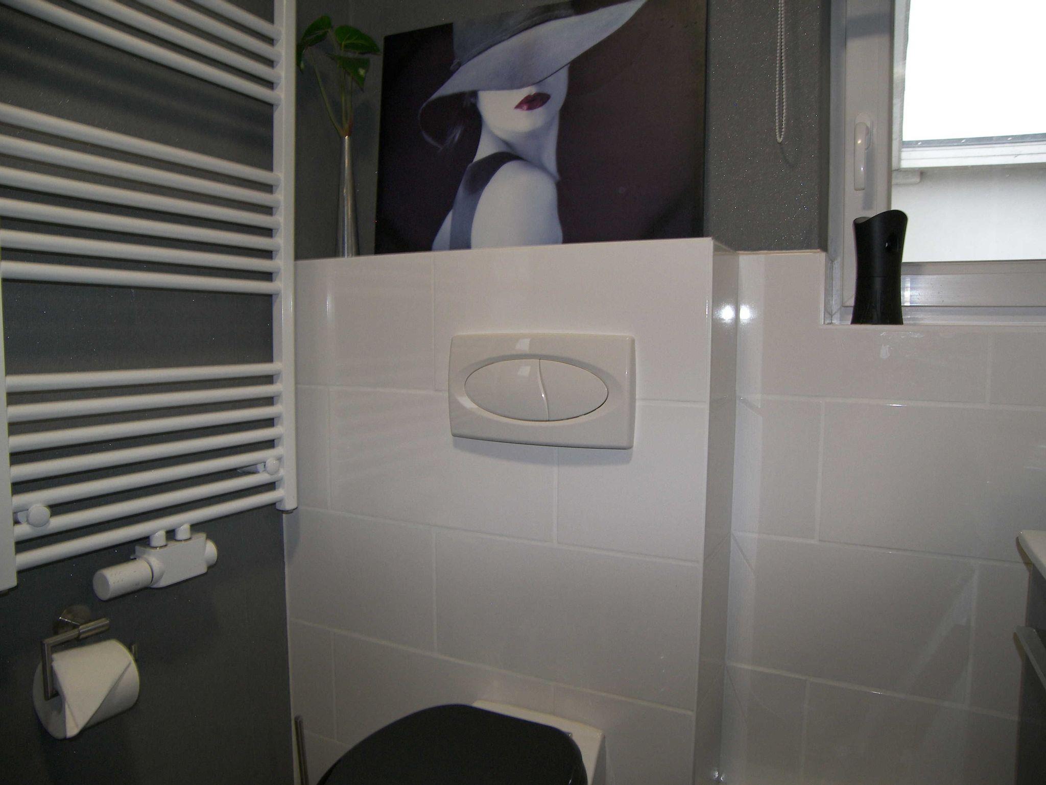 Das hochwertige Tageslichtbad bietet Ihnen eine Regendusche mit Duschpaneel, Handtuchheizung, WC sowie einen Waschtisch und Haartrockner.