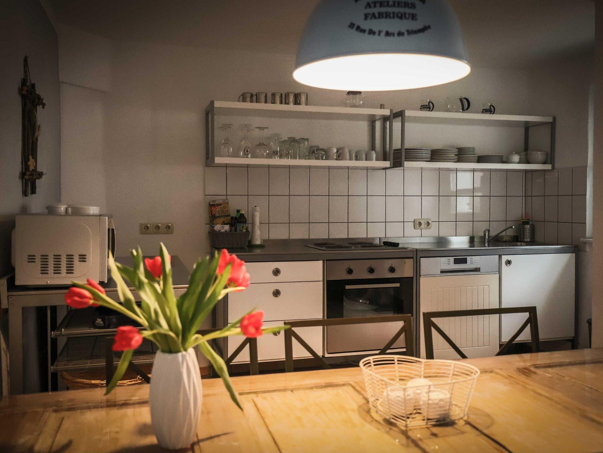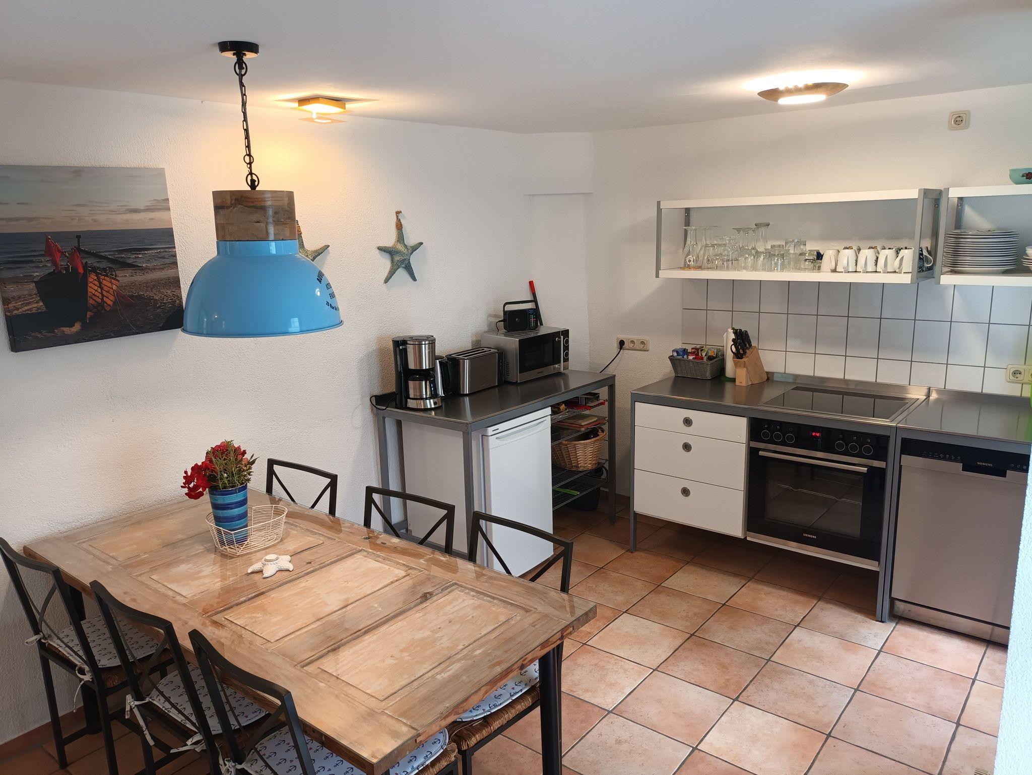 Das Ferienhaus verfügt im Erdgeschoss über eine großzüge Wohnküche und viel Platz zum gemütlichen Beisammensein. Von hieraus erreichen Sie auch die große Terrasse und einen kleinen Garten, die mit Gartenmöbeln und Grill ausgestattet ist.