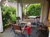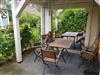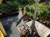 • Der Garten wurde mit einer Sitzgruppe aus deutscher Eiche erweitert, wo ca. 16 Personen Platz finden. Der Tisch hat ein Gewicht von ca. 600 kg. Je eine lange Bank hat ein Gewicht von ca. 300 kg.