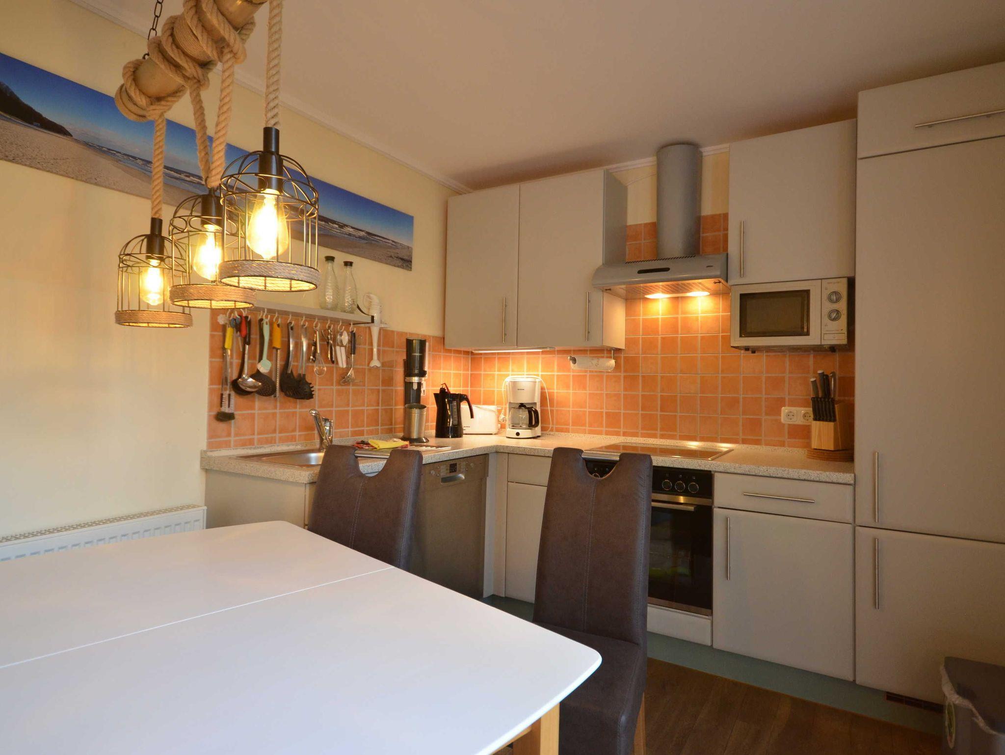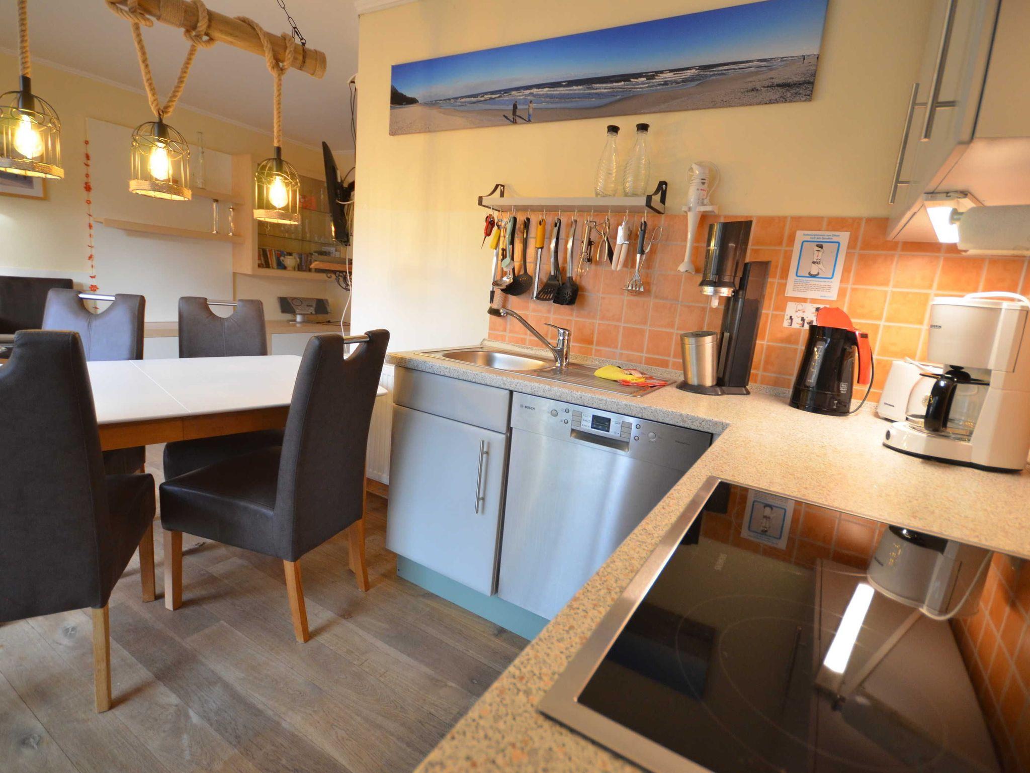 • Küche inkl. Spülmaschine, Herd mit Ceranfeld, Dampfabzugshaube, Kühlschrank mit Eisfach, Wasserkocher, Kaffeemaschine, Toaster, Esstischgarnitur mit Stühlen