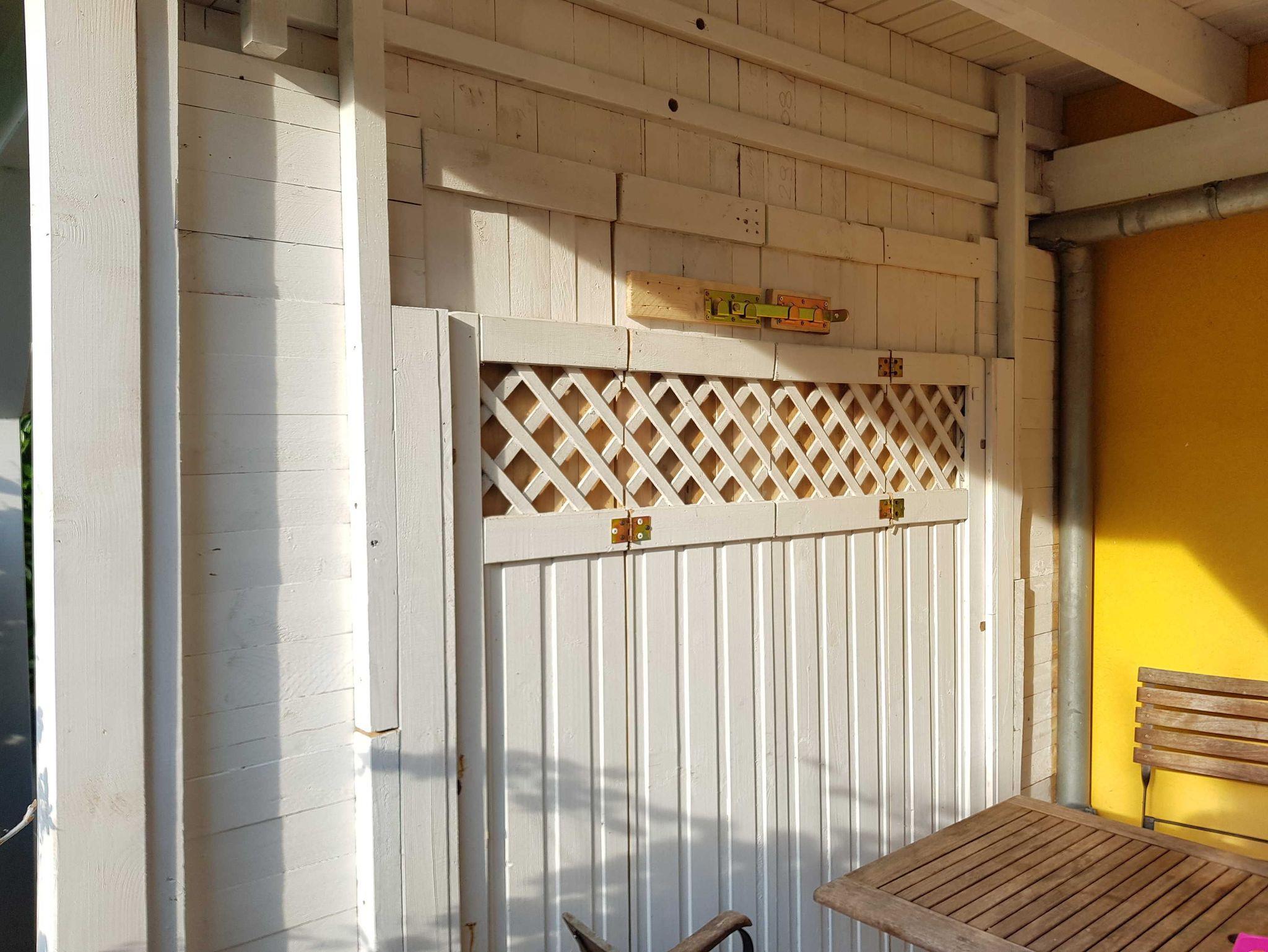 • Die Terrassenabtrennung der beiden Erdgeschosswohnungen Fewo 1 und Fewo 2 wurde komplett neu gebaut mit der Möglichkeit zum Öffnen, wenn die Gäste der nebenanliegenden Ferienwohnung dies ebenfalls wünschen und somit eine gemeinsame Terrasse nutzen möchten. Für Familien oder Freunde, die gerne zusammen reisen und die beiden Erdgeschosswohnungen FEWO 1 und FEWO 2 zusammen mieten.